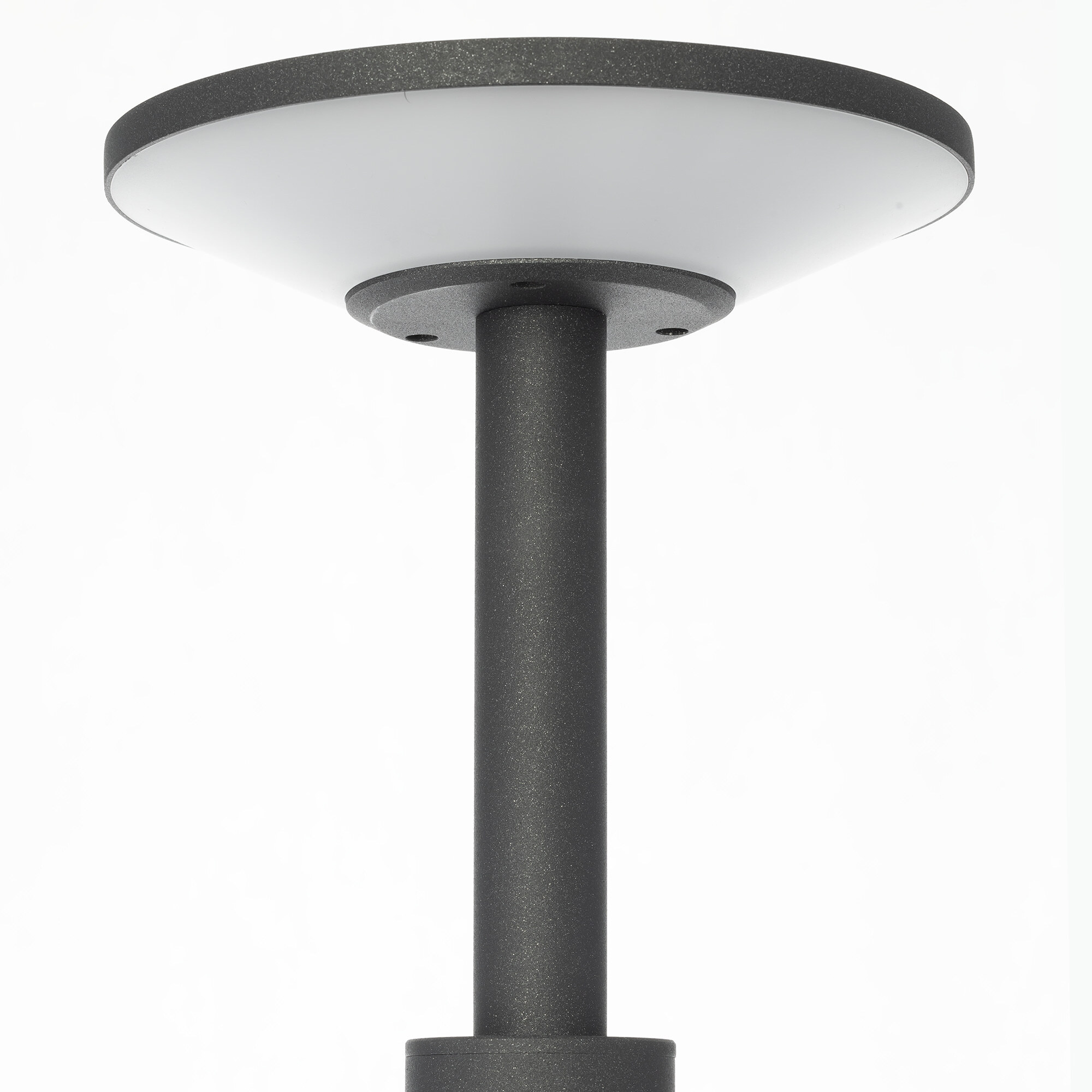 Уличный светодиодный светильник Citilux Dorn CLU05B выполнен в современном стиле. Корпус металлический, цвет графит. Рассеиватель матовый из оптического полимера. Стойка светильника цилиндрической формы. В верхней части стойки установлен светодиодный модуль оригинального дизайна.