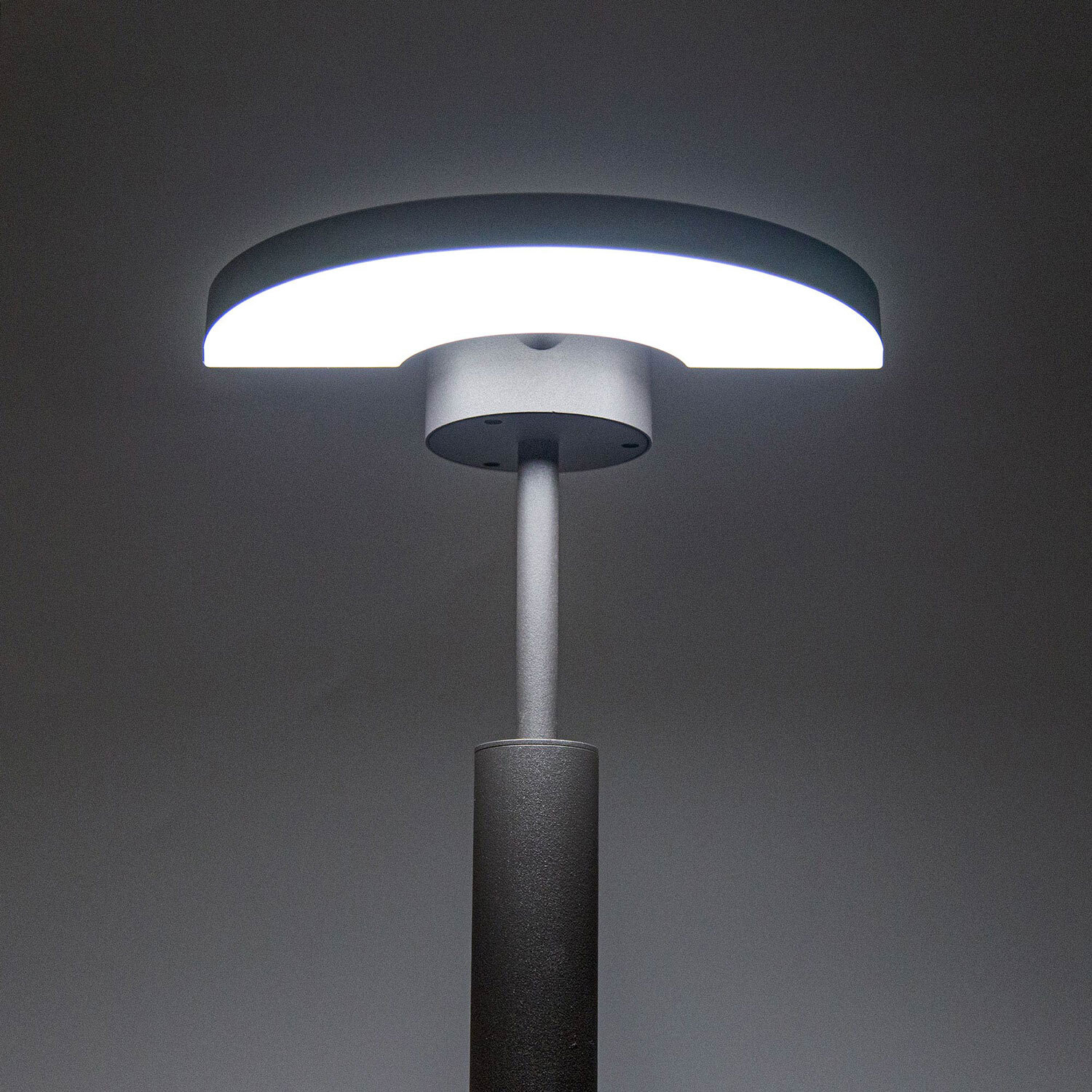 Мощность 6Вт, световой поток 450Лм, цветовая температура 4000К - нейтральный белый свет, класс защиты IP54. Свет безопасный для глаз, без мерцания и пульсаций. Модель высотой 80-91см, диаметр плафона 26см.