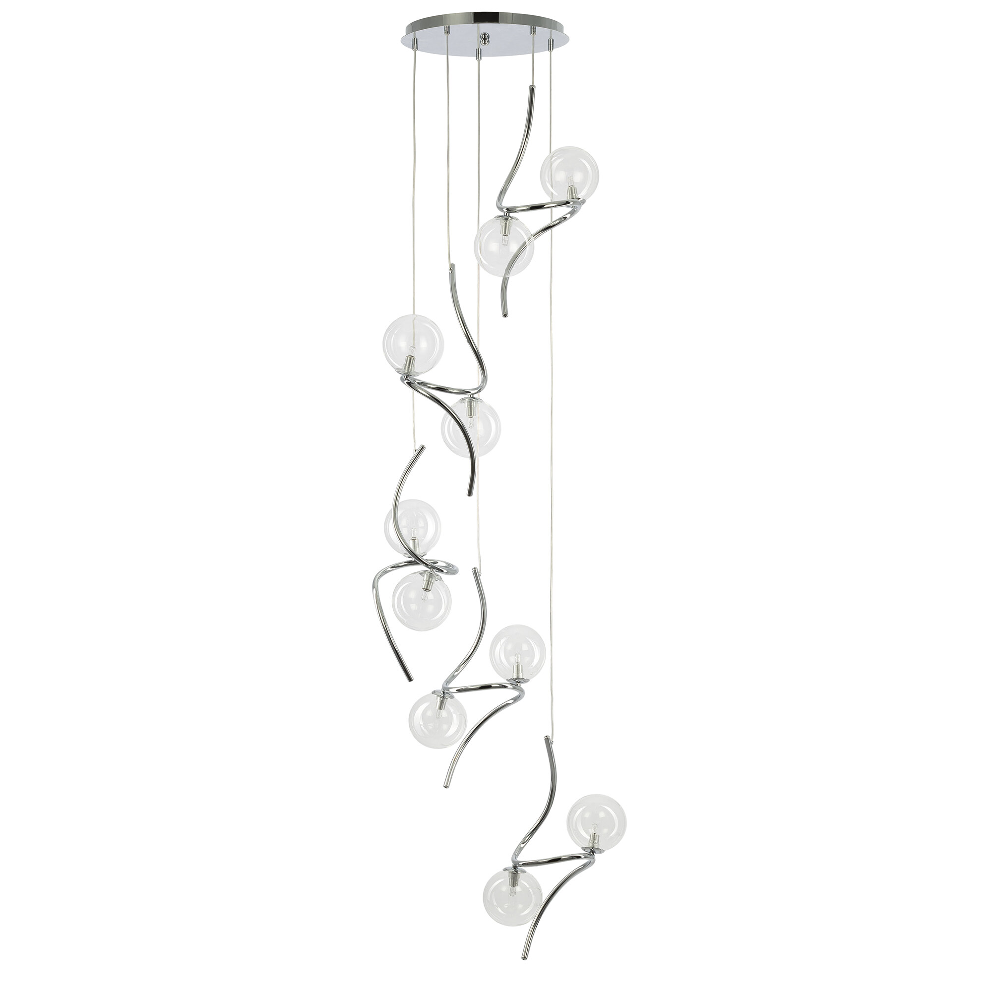 Каскадная дизайнерская люстра в современном стиле Citilux Vansa CL206091 – это идеальное дополнение для вашего интерьера. Металлический корпус в глянцевом хроме придает ей стильный и элегантный вид. Основание светильника круглой формы, подвесы с изящно изогнутой центральной частью создают впечатление легкости и гармонии. Плафоны-шары из кристально прозрачного стекла придадут вашему пространству неповторимый шарм и прекрасно рассеют свет.