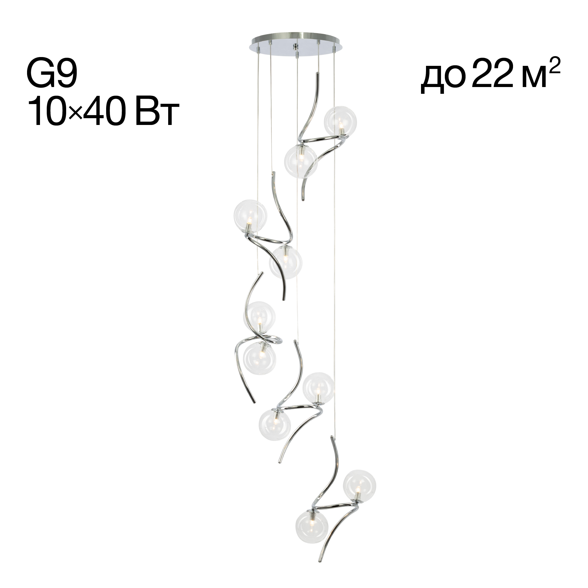 В изделии 10 ламп с цоколем G9 максимальной мощностью для галогенных ламп 40 Вт, светодиодные лампы можно устанавливать более яркие.