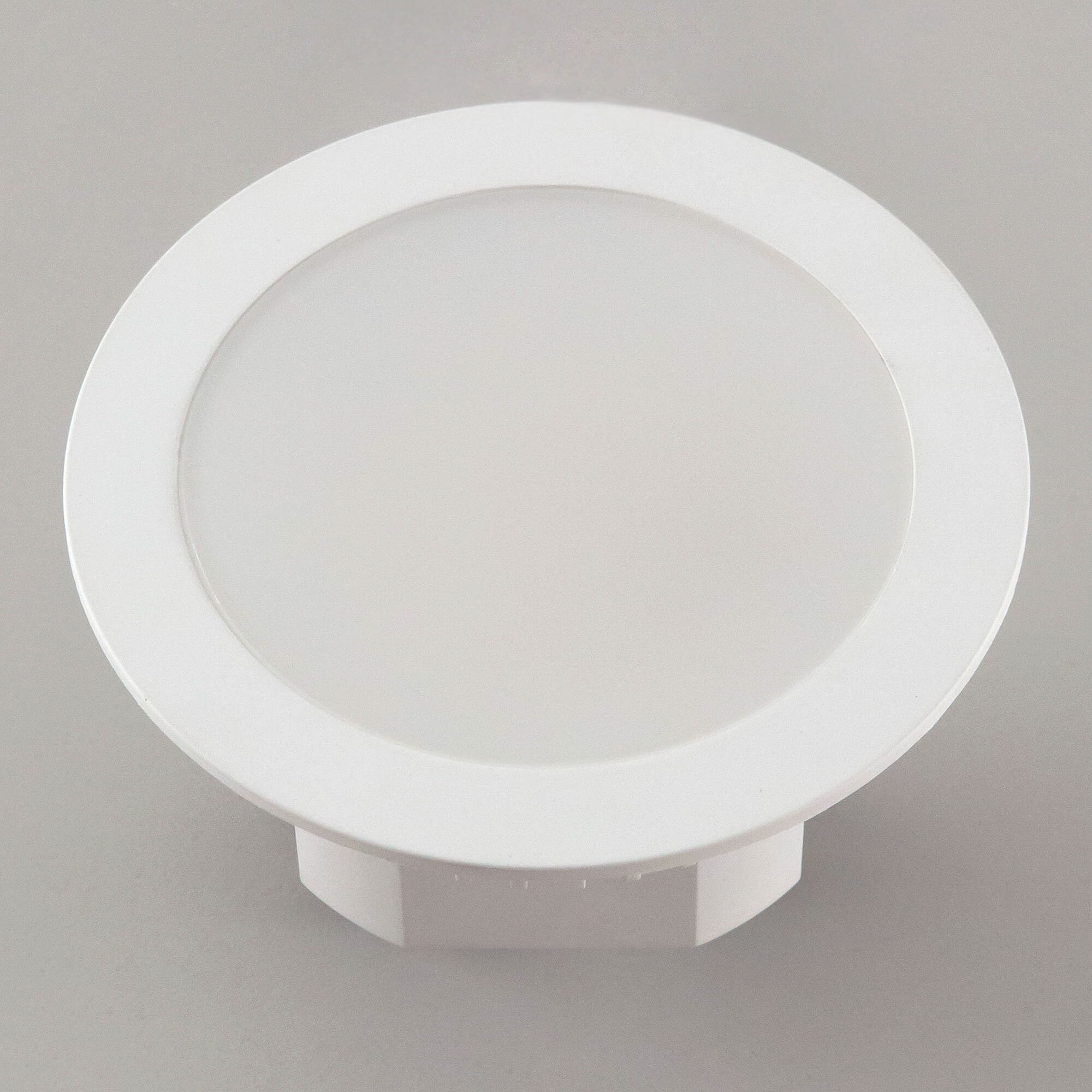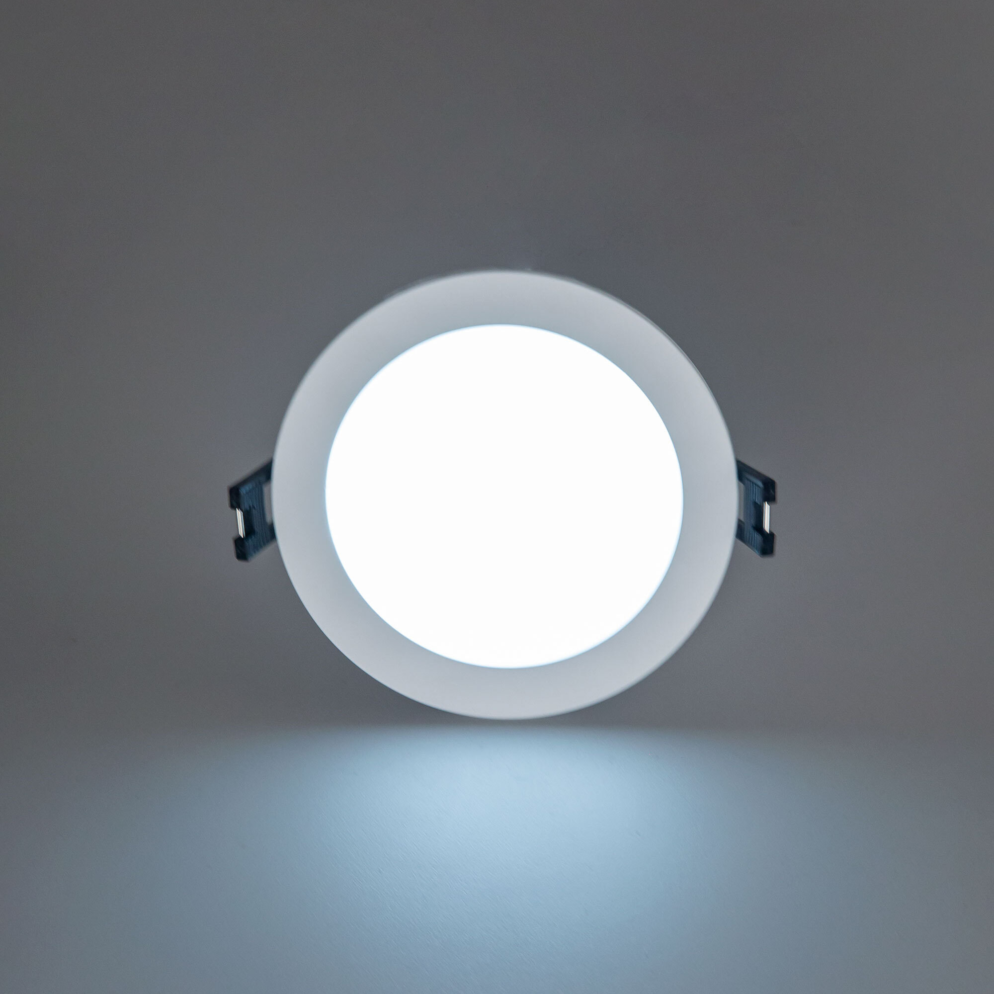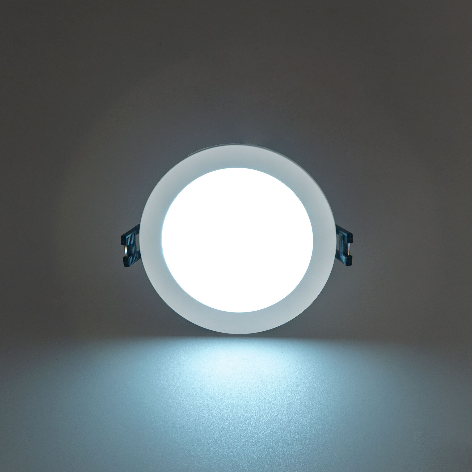 Мощность изделия 7Вт, световой поток 600Лм, угол рассеивания 120°, класс защиты IP44. Переключатель цветовой температуры (находится с тыльной стороны светильника) позволяет при монтаже установить режим свечения - тёплый, нейтральный или холодный свет 3000-4000-5500К. Модель оснащена ступенчатым диммером, доступно три уровня яркости - 100-40-15%, управление - обычным настенным выключателем. Свет безопасный для глаз, без мерцания и пульсаций, во всех режимах работы.