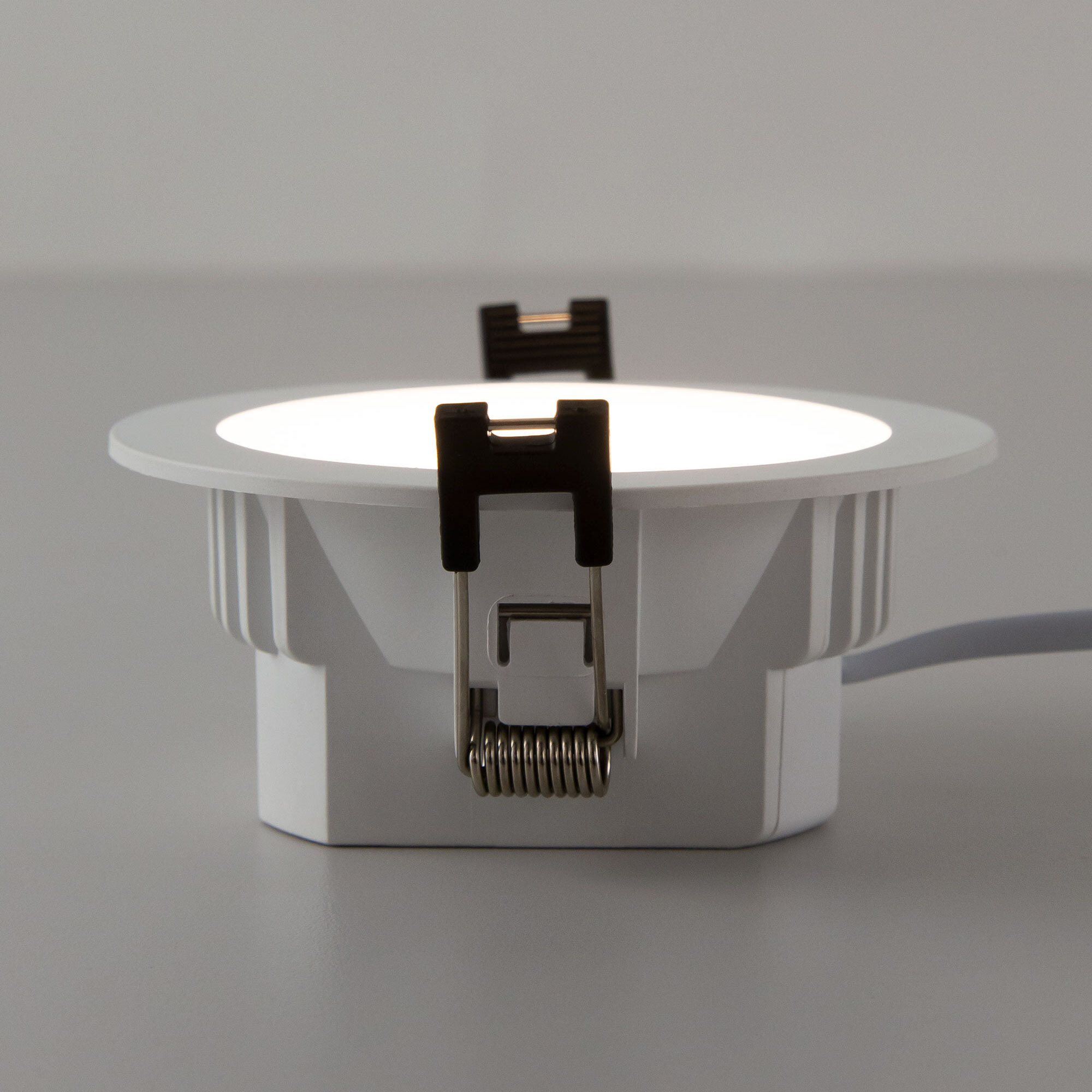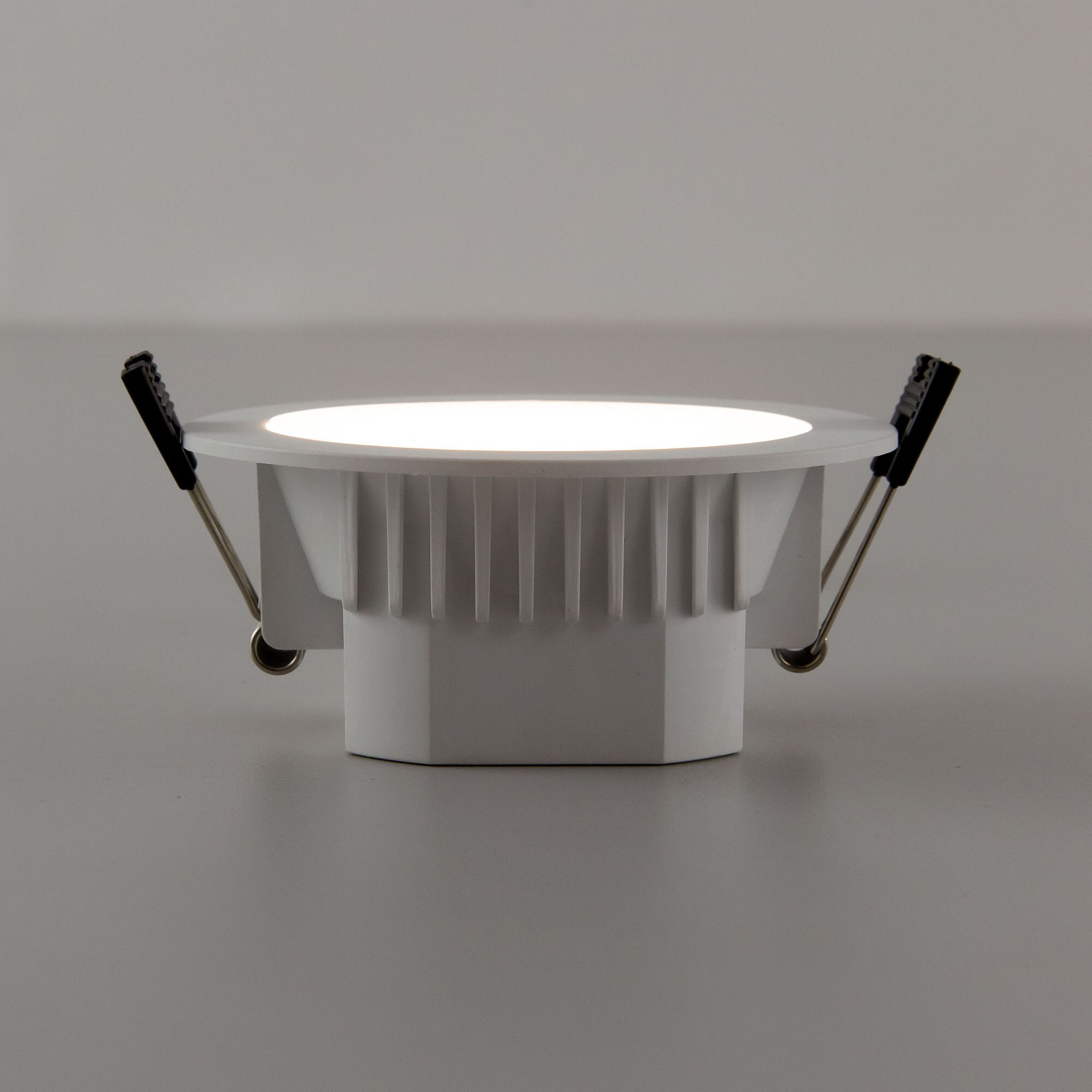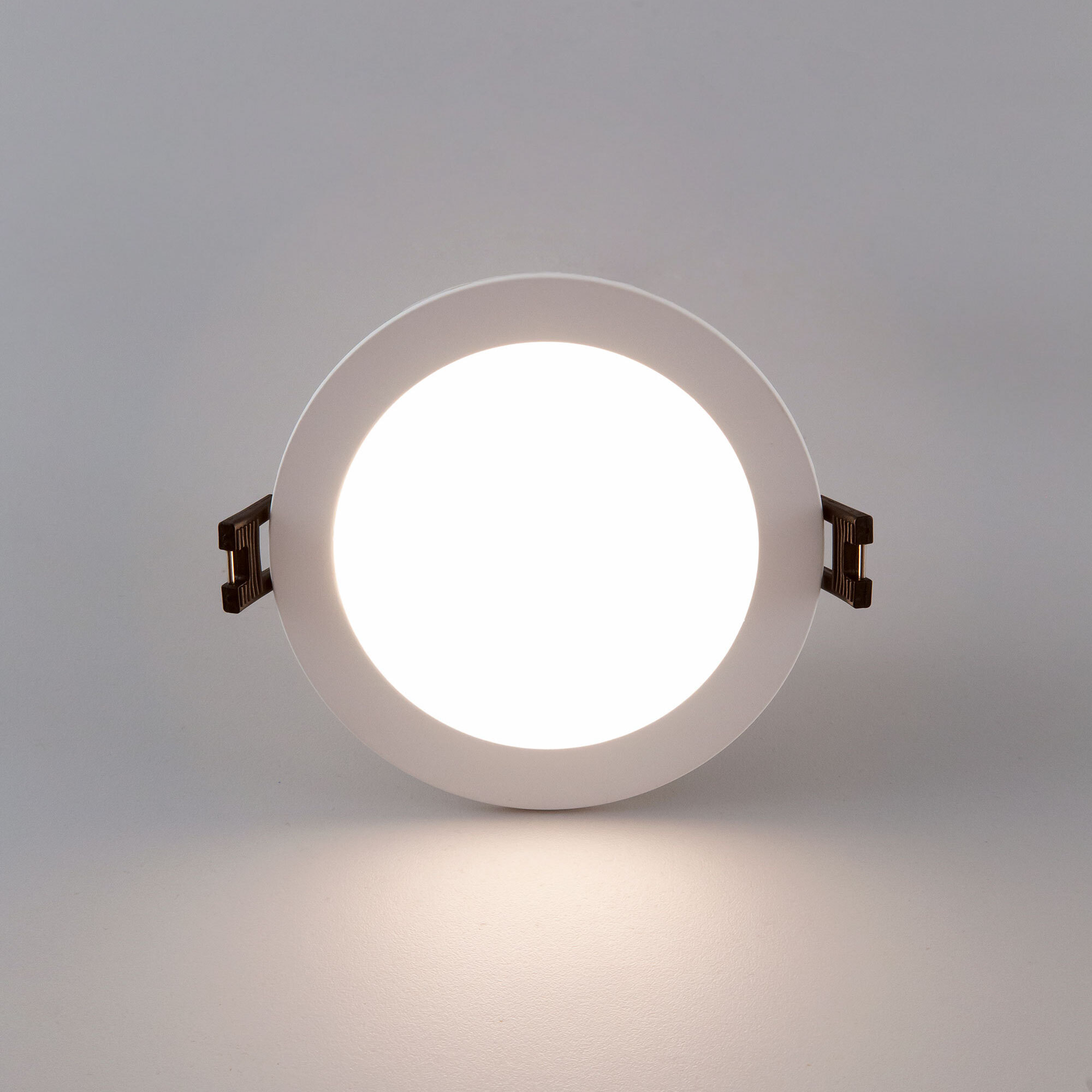 Мощность изделия 7Вт, световой поток 600Лм, угол рассеивания 120°, класс защиты IP44. Переключатель цветовой температуры (находится с тыльной стороны светильника) позволяет при монтаже установить режим свечения - тёплый, нейтральный или холодный свет 3000-4000-5500К. Модель оснащена ступенчатым диммером, доступно три уровня яркости - 100-40-15%, управление - обычным настенным выключателем. Свет безопасный для глаз, без мерцания и пульсаций, во всех режимах работы.