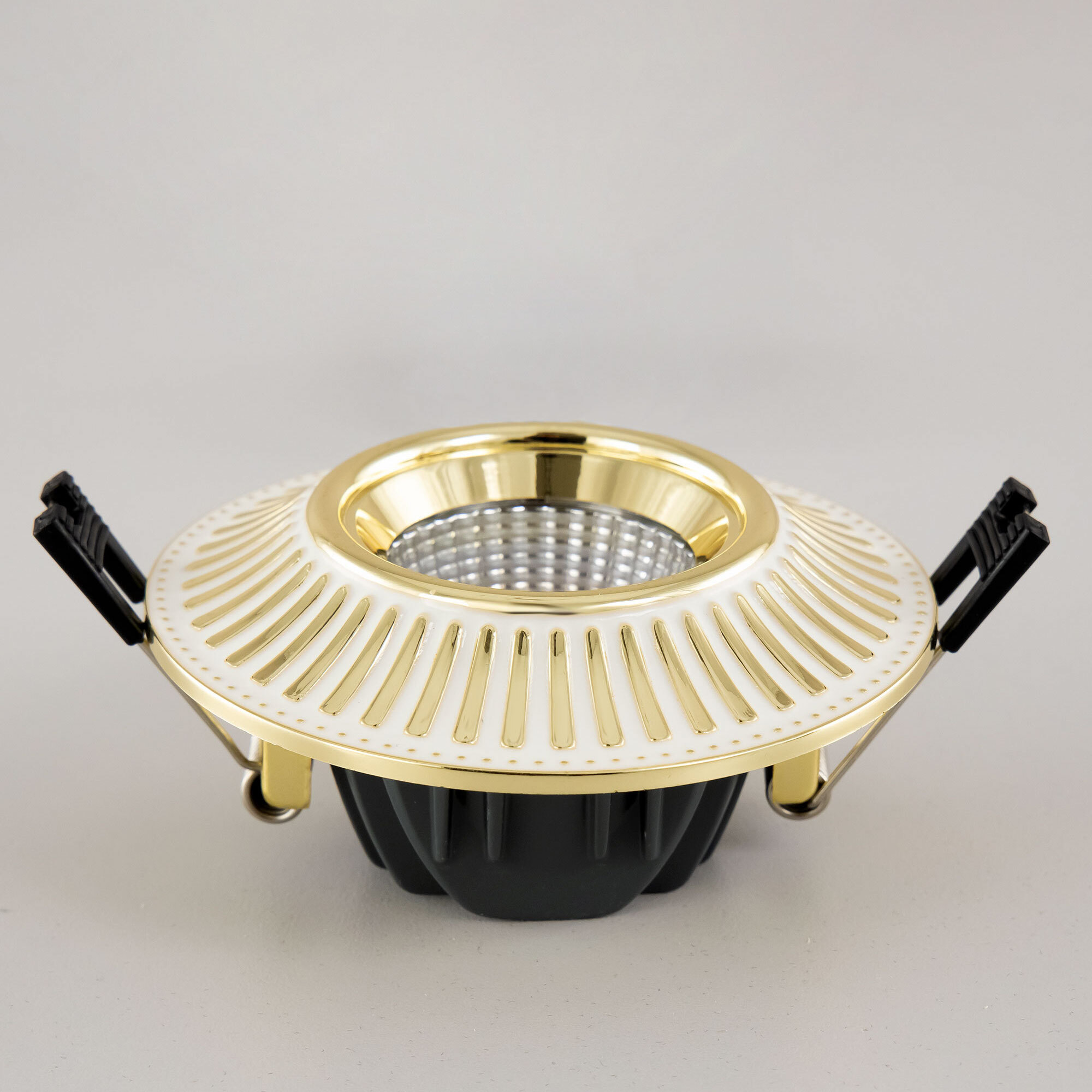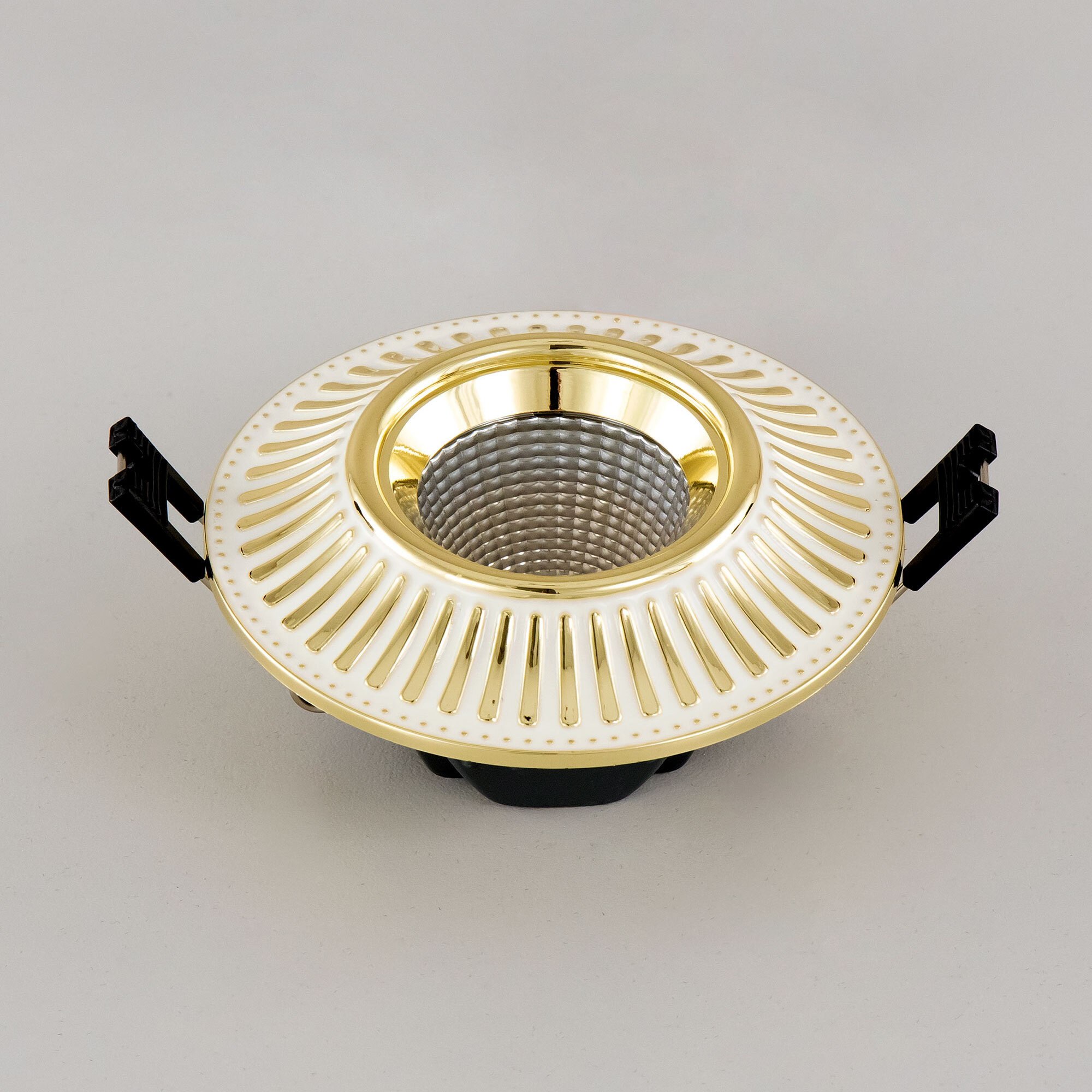 Встраиваемый светодиодный светильник Citilux Дзета CLD042NW2 в классическом стиле. Корпус из прочного полимера, круглой формы, цвет белый с золотистым рисунком. Изделие оснащено ярким светодиодом с мощным радиатором охлаждения. Мощность 7Вт, цветовая температура 3500К – нейтральный свет. Встроенный ступенчатый диммер 100-40-15% управляется обычным настенным выключателем. Свет безопасный для глаз, без мерцаний и пульсаций во всех режимах работы. Модель подходит для всех типов навесных и натяжных потолков.Citilux CLD042 DZETA: Вдохновение в каждом луче.