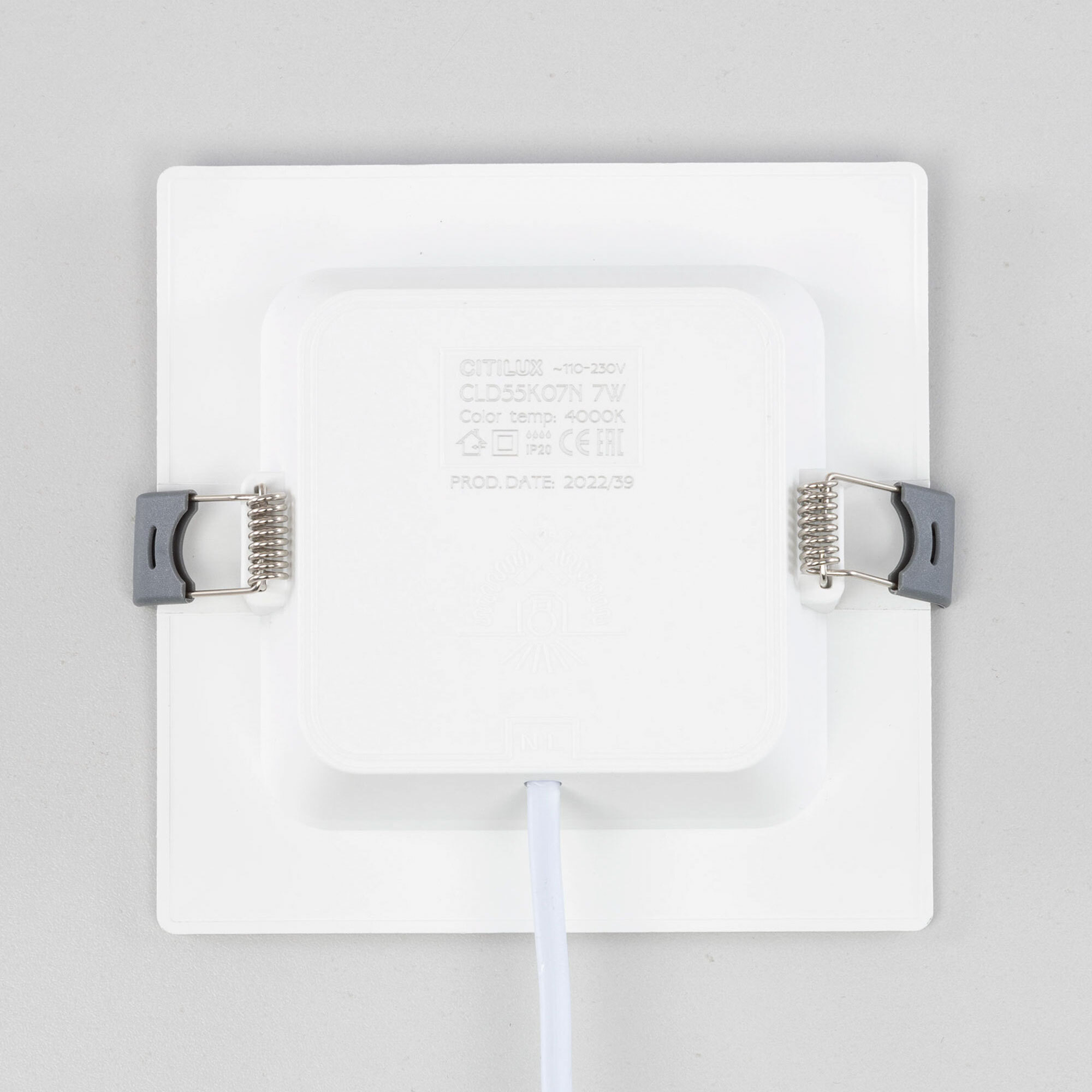 Встраиваемый светодиодный светильник Citilux Галс CLD55K07N в современном стиле минимализм. Корпус квадратной формы из прочного полимера, рассеиватель из оптического полимера, цвет белый матовый. Изделие оснащено яркими светодиодами, мощность 7Вт, цветовая температура 4000К – нейтральный белый свет, без мерцания и пульсаций, безопасный для глаз. Citilux Галс CLD55K07N прекрасный вариант для основного и дополнительного освещения жилых, технических и общественных пространств. Подходит для всех типов навесных потолков. Размер 12х12см, осветит до 2м².Citilux CLD55 GALS: Вдохновение в каждом луче.