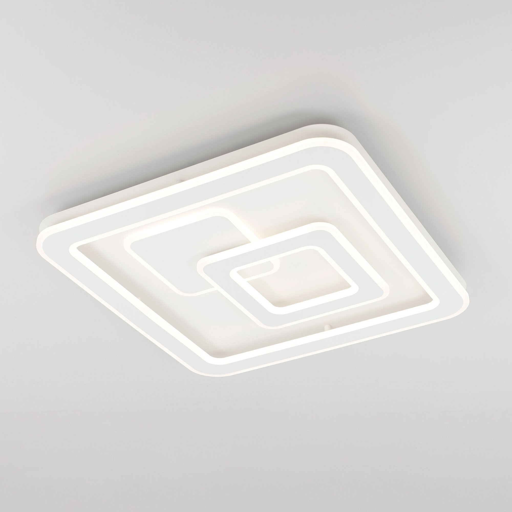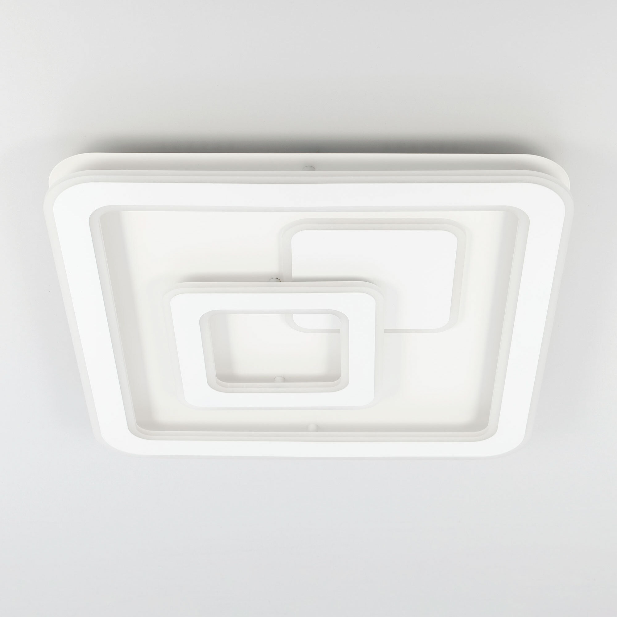 Люстра светодиодная Citilux Квест CL739B150E с RGB подсветкой и пультом дистанционного управления. Основание белого цвета, три светодиодных модуля плафона, формирующих внешний вид люстры, имеют квадратную форму. Корпус плафонов металлический, рассеиватель из оптического полимера. Изделием можно управлять с помощью радиопульта дистанционного управления и настенным выключателем.