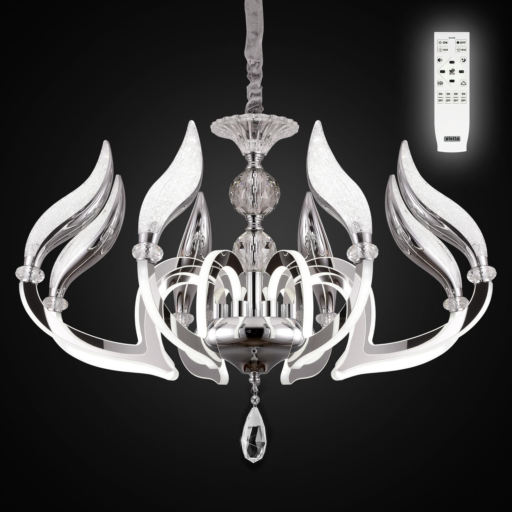 Восьмирожковая LED люстра Eletto Diva EL339P08 безусловно станет ярким источник света и неотъемлемой центральной частью модного интерьера современной гостиной, спальни, кухни и кабинета как с высокими, так и стандартными потолками.