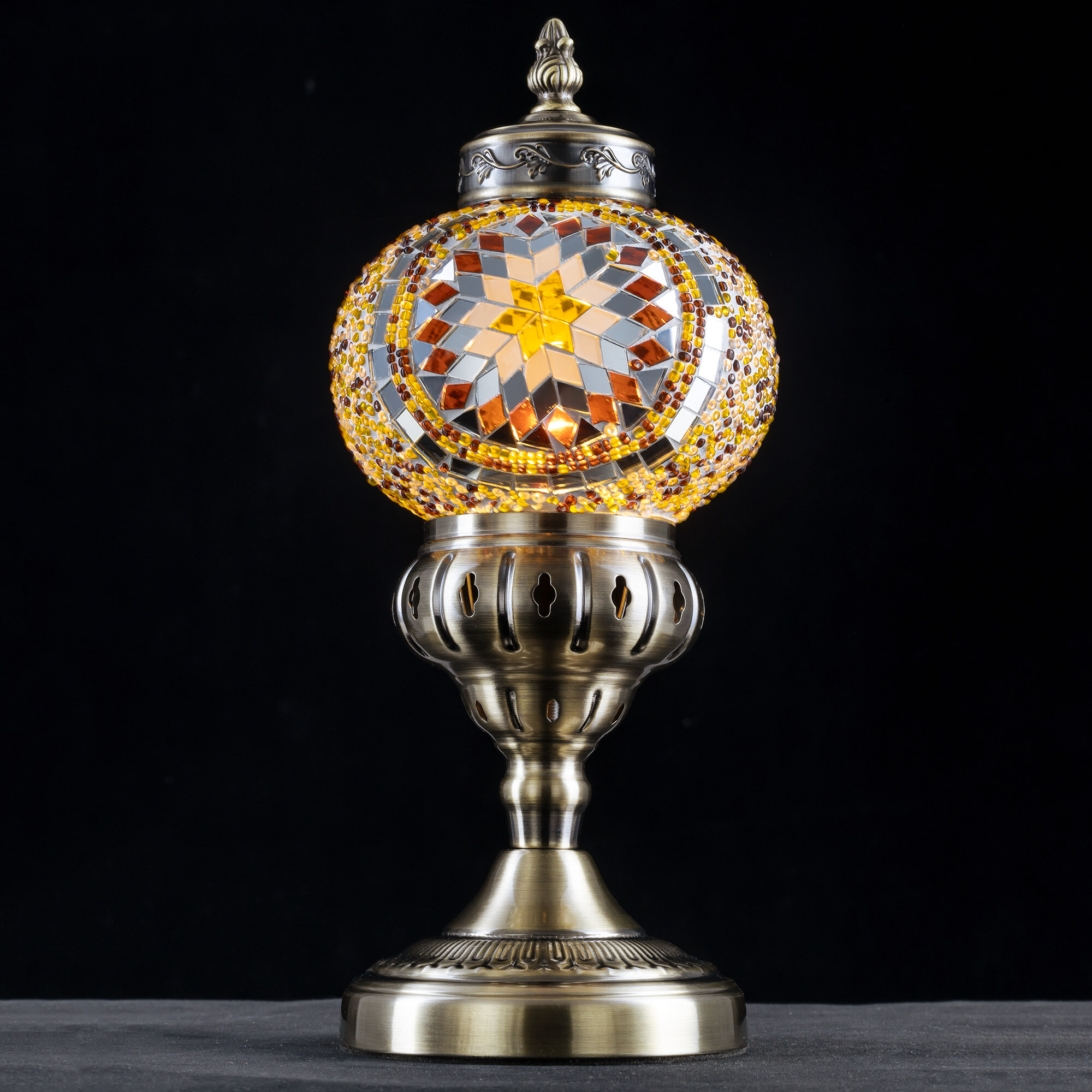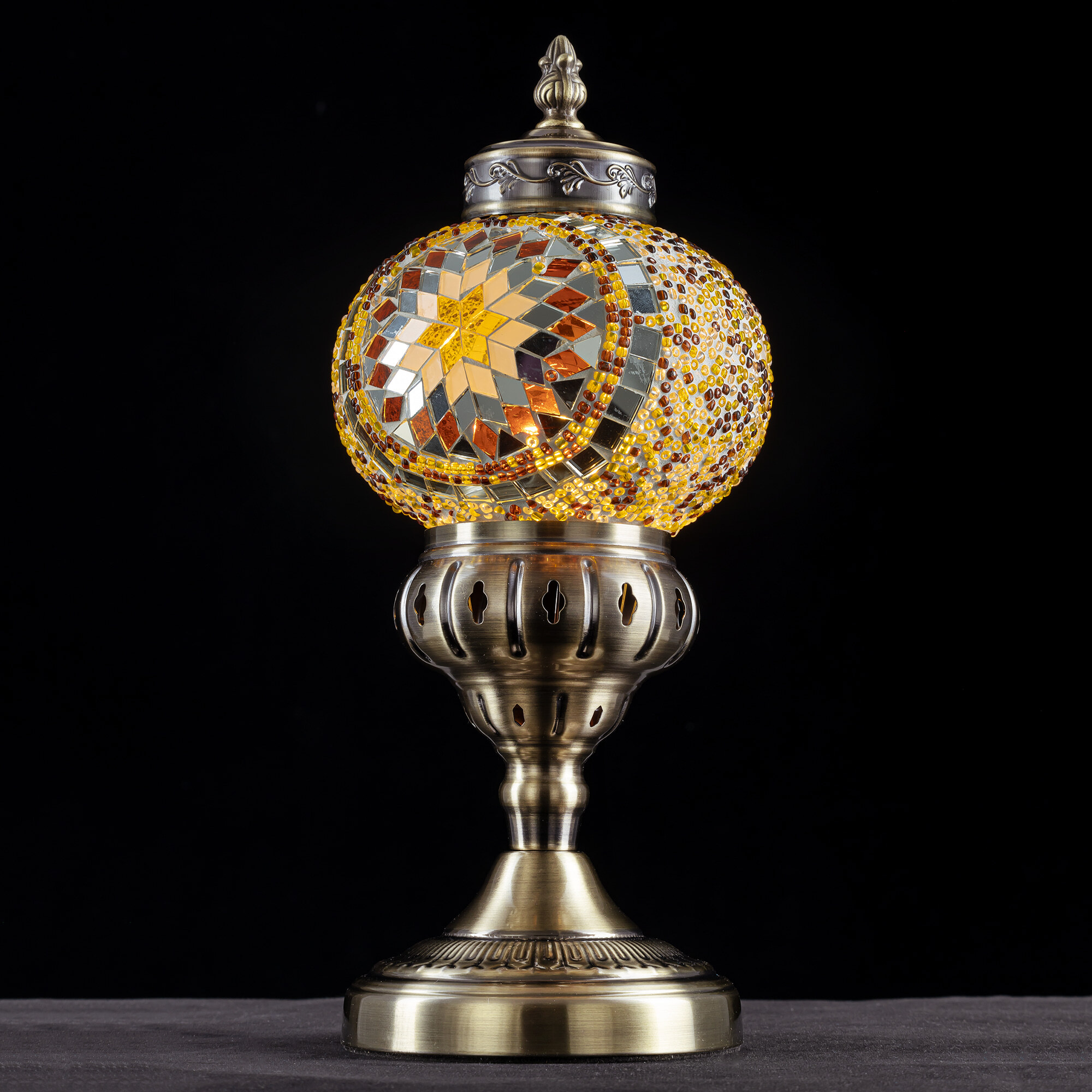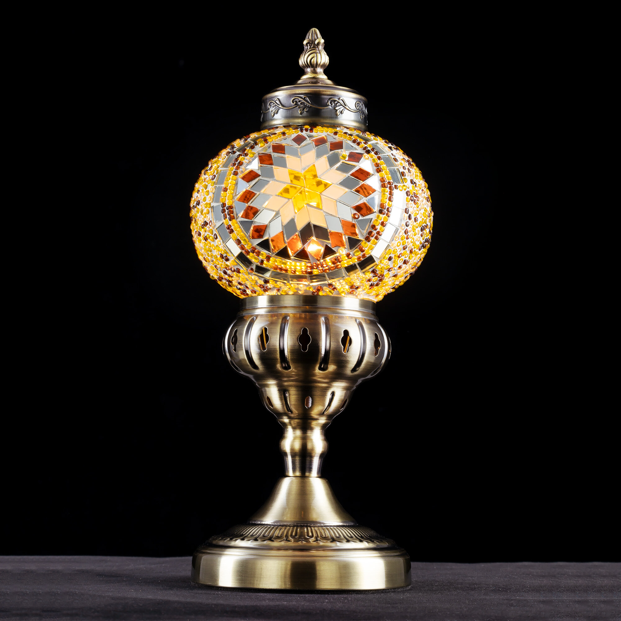 Погрузитесь в атмосферу таинственного Востока с настольным светильником Citilux Каир CL419815! Металлический корпус цвета благородной бронзы украшен изысканной чеканкой, а плафон в форме шара, декорированный стеклянной мозаикой с янтарными оттенками, создаёт мягкое, тёплое свечение, наполняющее пространство уютом и гармонией.