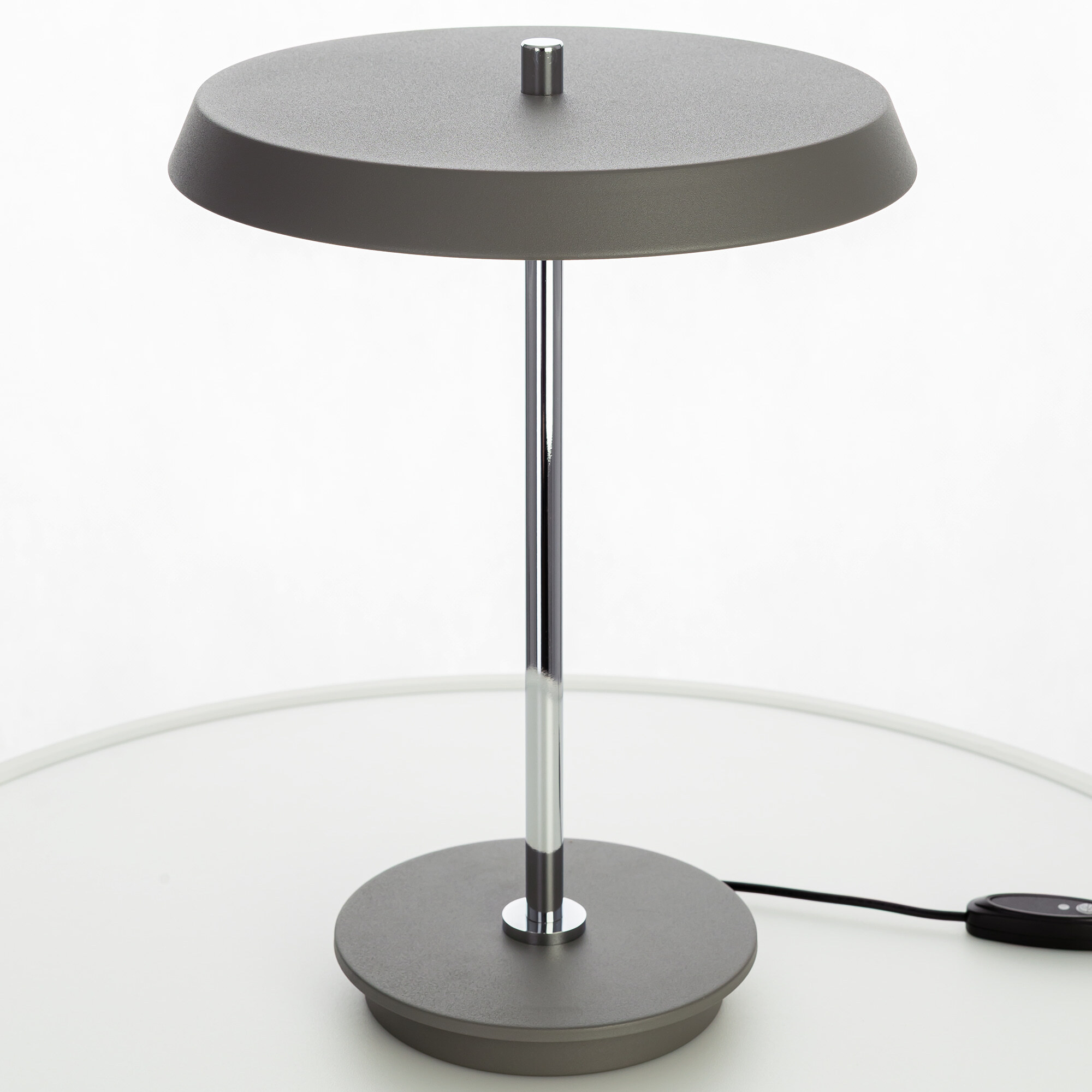 Светодиодная настольная лампа Citilux LINA CL812012 выполнена в современном стиле. Светильник серего цвета с изящной хромированной стойкой. Металлическое снование обеспечивает устойчивость изделия. Плафон - плоский светодиодный модуль, круглой формы с оригинальным усечённым торцом.