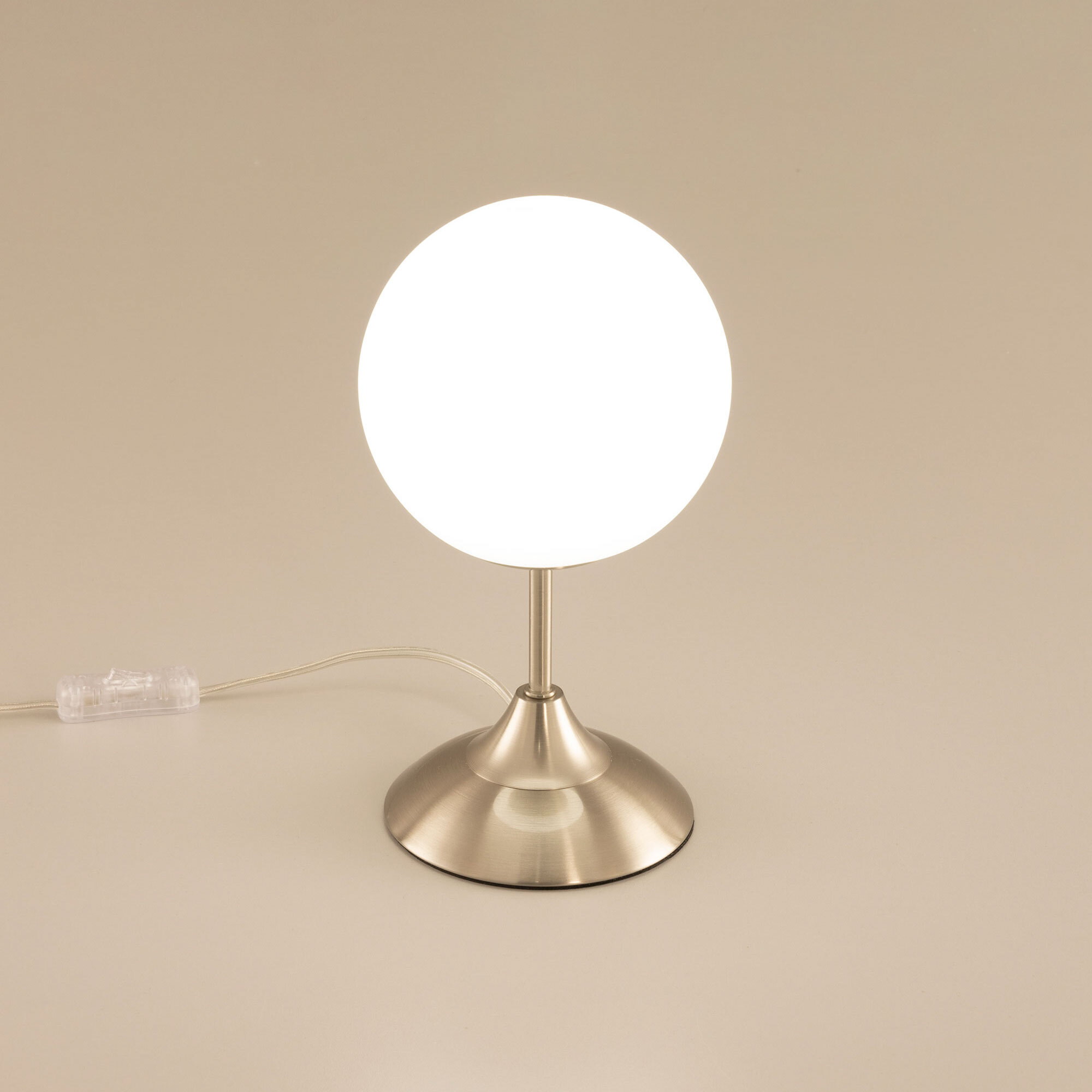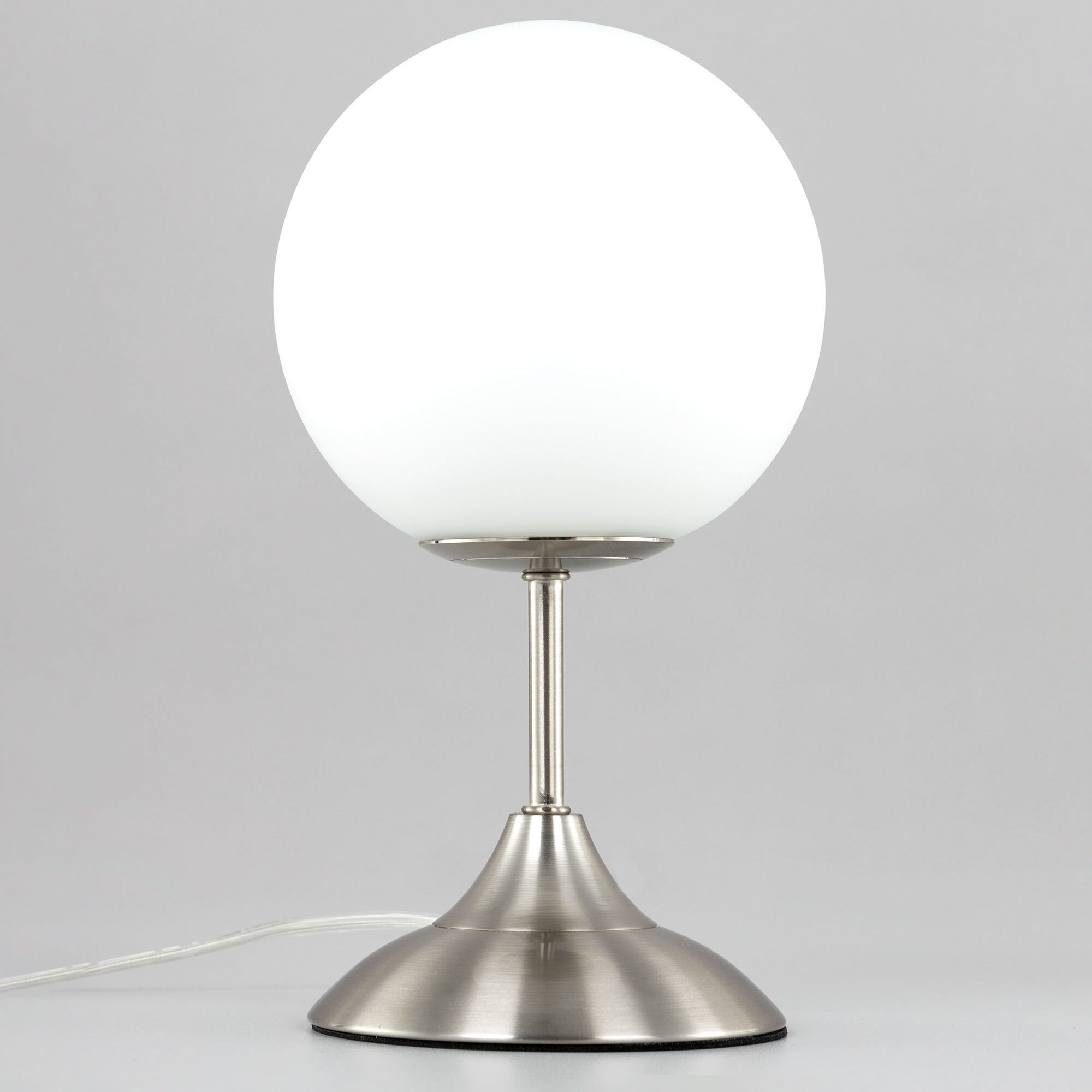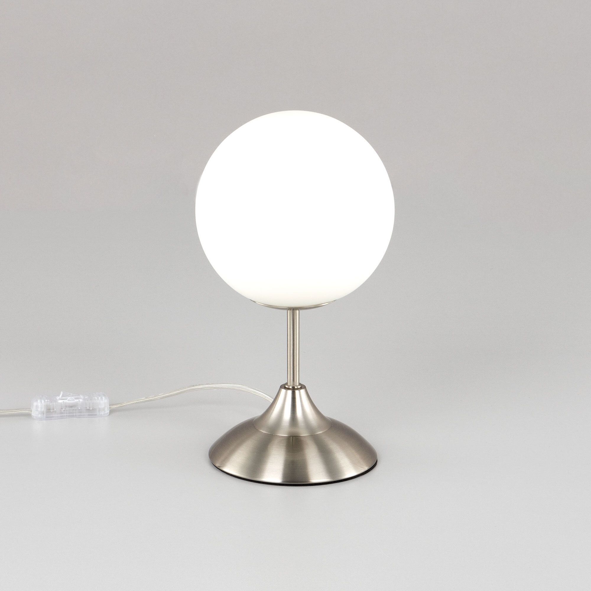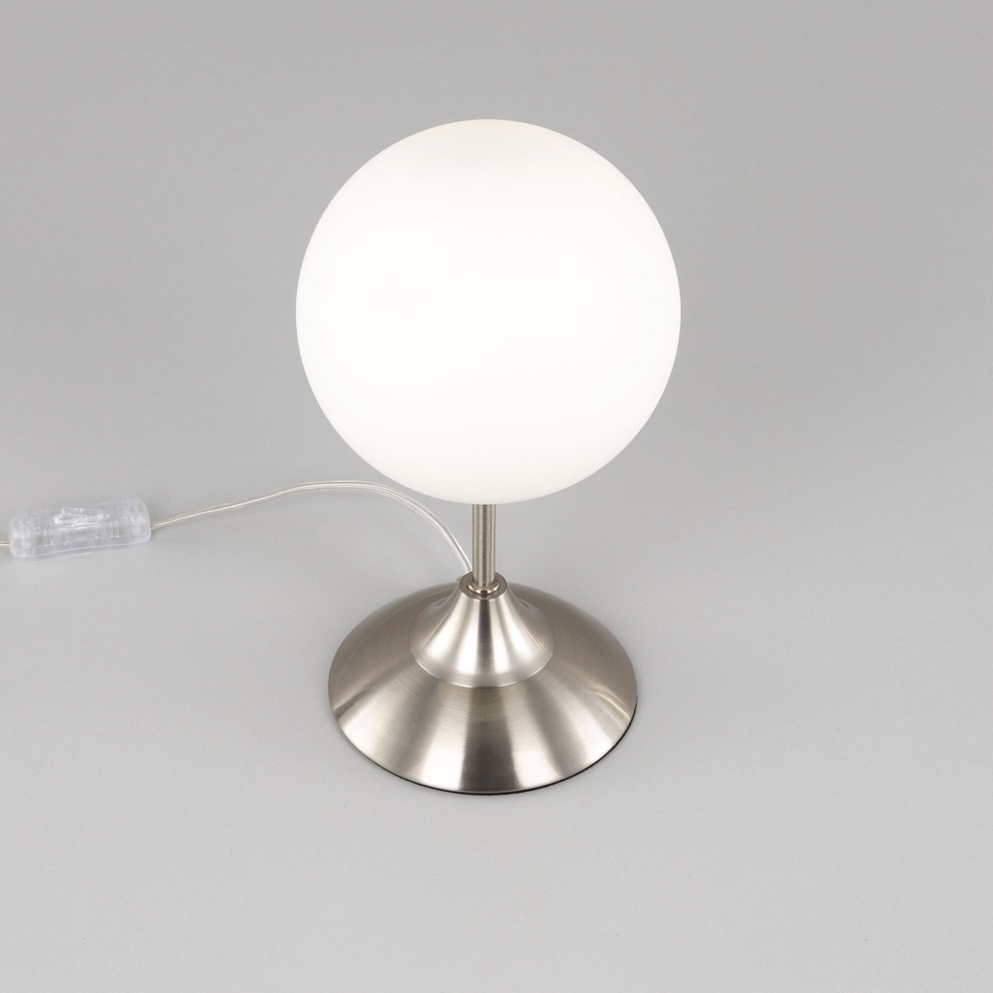 Настольная лампа CL102814 выполнена в современном стиле. Корпус металлический, цвет матовый хром. Плафон в форме шара, изготовлен из матового стекла. В изделии используется 1 лампа с цоколем Е14, форма колбы «свеча», максимальная мощность для ламп накаливания 40 Вт (в комплект не входит, приобретается отдельно). Светодиодные лампы можно устанавливать более яркие. Высота настольного светильника 28см, диаметр 15см. Сетевой провод прозрачный, длиной 1,7 метра. Выключатель расположен на проводе, на расстоянии 20 см от основания.Citilux CL102 TOMMY: Вдохновение в каждом луче.