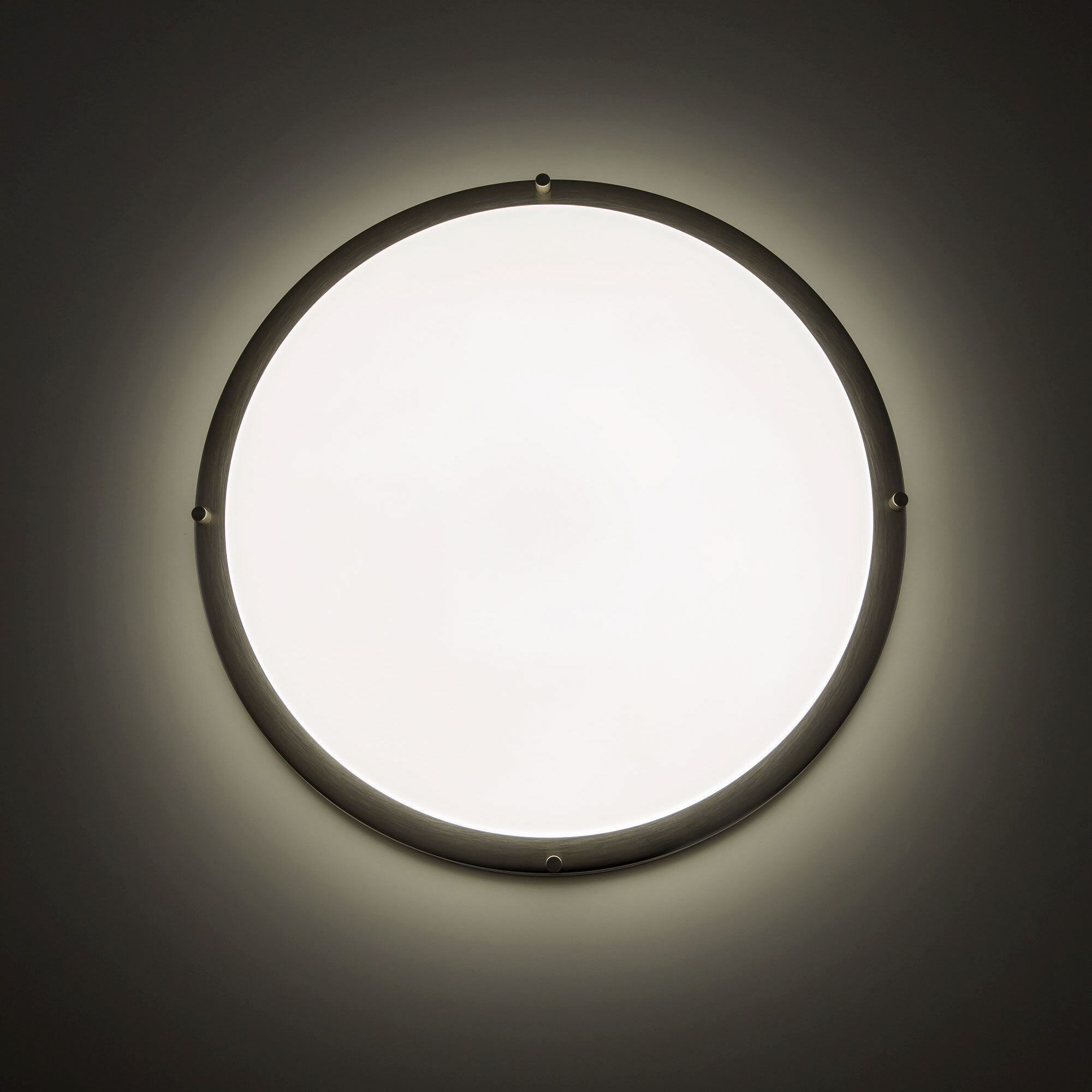 Светодиодная люстра Citilux Бостон CL709501N выполнена в современном стиле. Основание металлическое, круглой формы с декоративным внешним кольцом, цвет матовый хром. Плафон белый матовый из оптического полимера, прекрасно рассеивает яркий свет. Такие плоские светильники ещё называют светильник – таблетка. Изделие оснащено встроенным трехступенчатым диммером 100-40-15%, управляется обычным настенным выключателем. Диаметр 45,5см, высота 7,5см. Мощность 50Вт, цветовая температура 4000К – нейтральный белый свет, класс защиты IP44. Освети около 11м². Свет без мерцаний и пульсаций, что благотворно отразится на здоровье глаз. Данный настенно – потолочный светильник крепится к поверхности через основание. Крепёж в комплекте. Подходит для всех типов потолков, в том числе натяжных.Citilux CL709 BOSTON: Вдохновение в каждом луче.