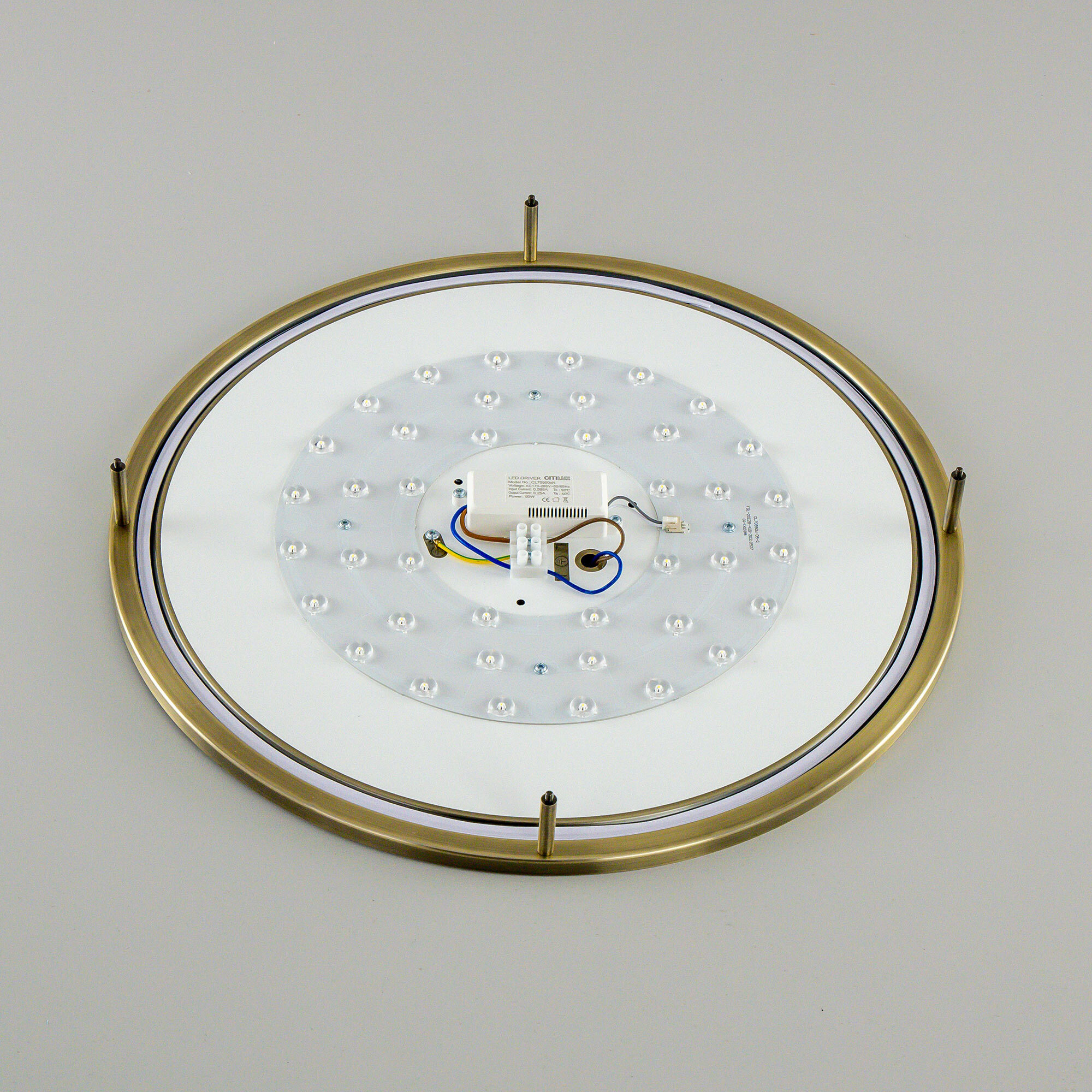Светодиодная люстра Citilux Бостон CL709503N выполнена в современном стиле. Основание металлическое, круглой формы с декоративным внешним кольцом, цвет бронза. Плафон белый матовый из оптического полимера, прекрасно рассеивает яркий свет. Такие плоские светильники ещё называют светильник – таблетка. Изделие оснащено встроенным трехступенчатым диммером 100-40-15%, управляется обычным настенным выключателем. Диаметр 45,5см, высота 7,5см. Мощность 50Вт, цветовая температура 4000К – нейтральный белый свет, класс защиты IP44. Осветит около 11м². Свет без мерцаний и пульсаций, что благотворно отразится на здоровье глаз. Данный настенно – потолочный светильник крепится к поверхности через основание. Крепёж в комплекте. Подходит для всех типов потолков, в том числе натяжных.Citilux CL709 BOSTON: Вдохновение в каждом луче.