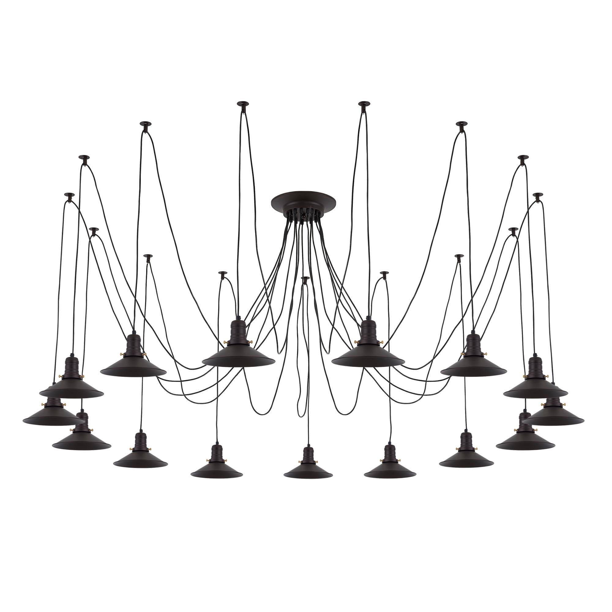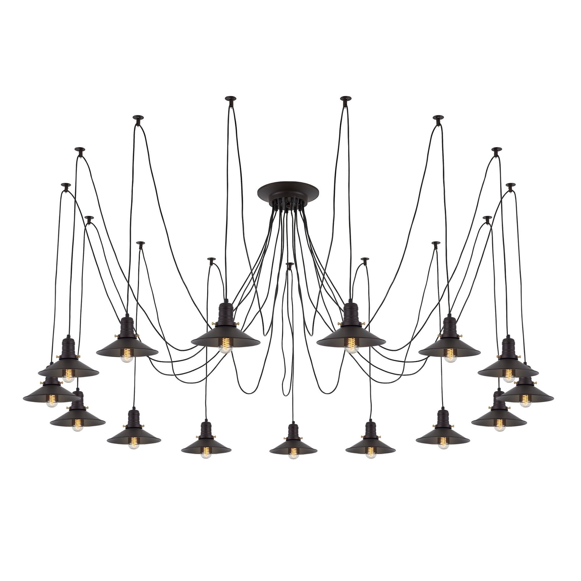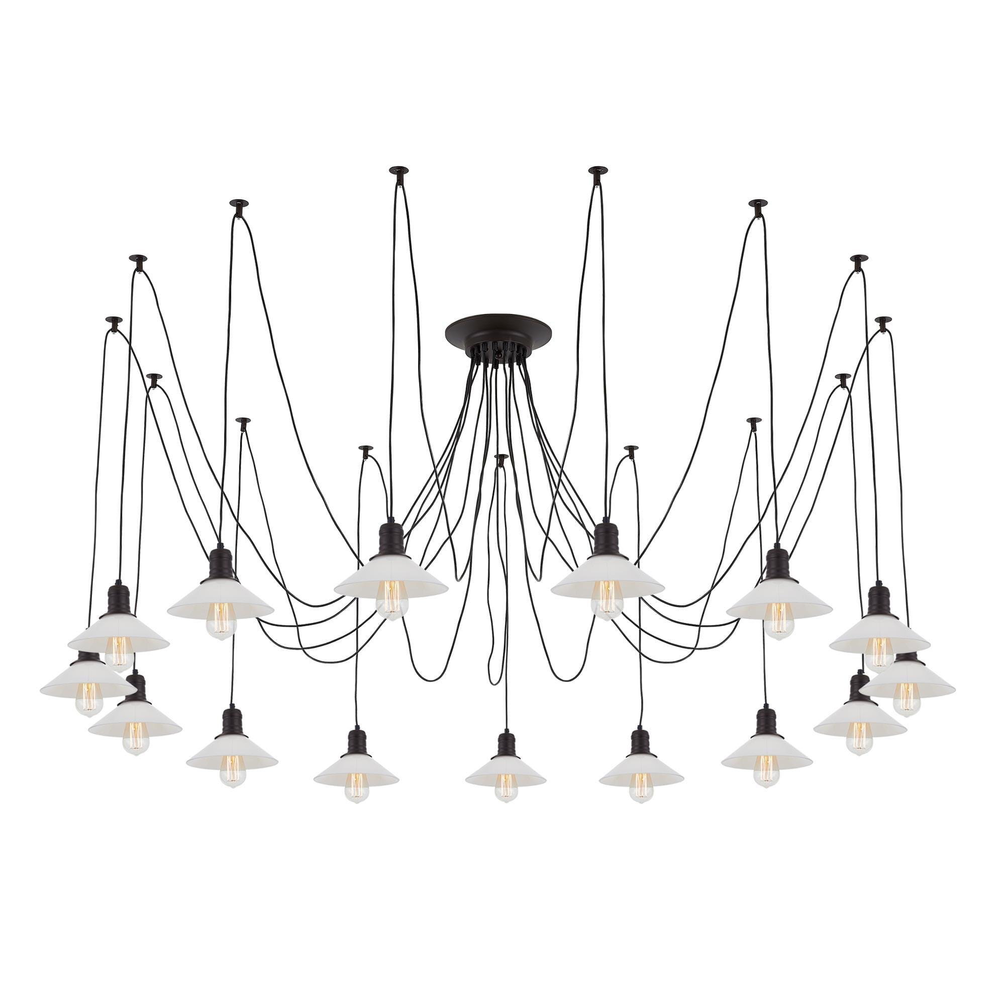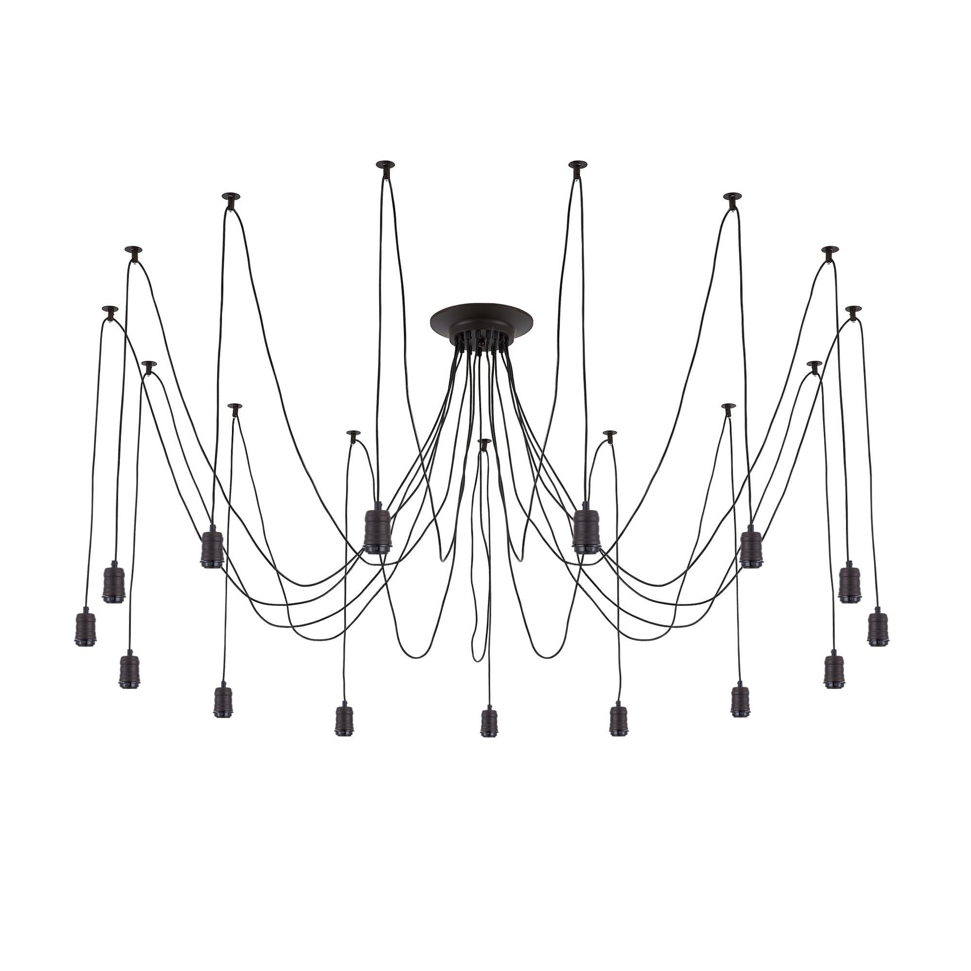 В изделии 15 ламп с цоколем Е27 максимальной мощностью для ламп накаливания 75Вт (в комплект не входят, приобретаются отдельно). Длинные провода (по 2,5м), в сочетании с дополнительным индивидуальным крепежом к потолку, позволяют при установке придать светильнику свою уникальную форму и легко адаптировать модель для высоких, стандартных и низких потолков. Тип крепления – планка.