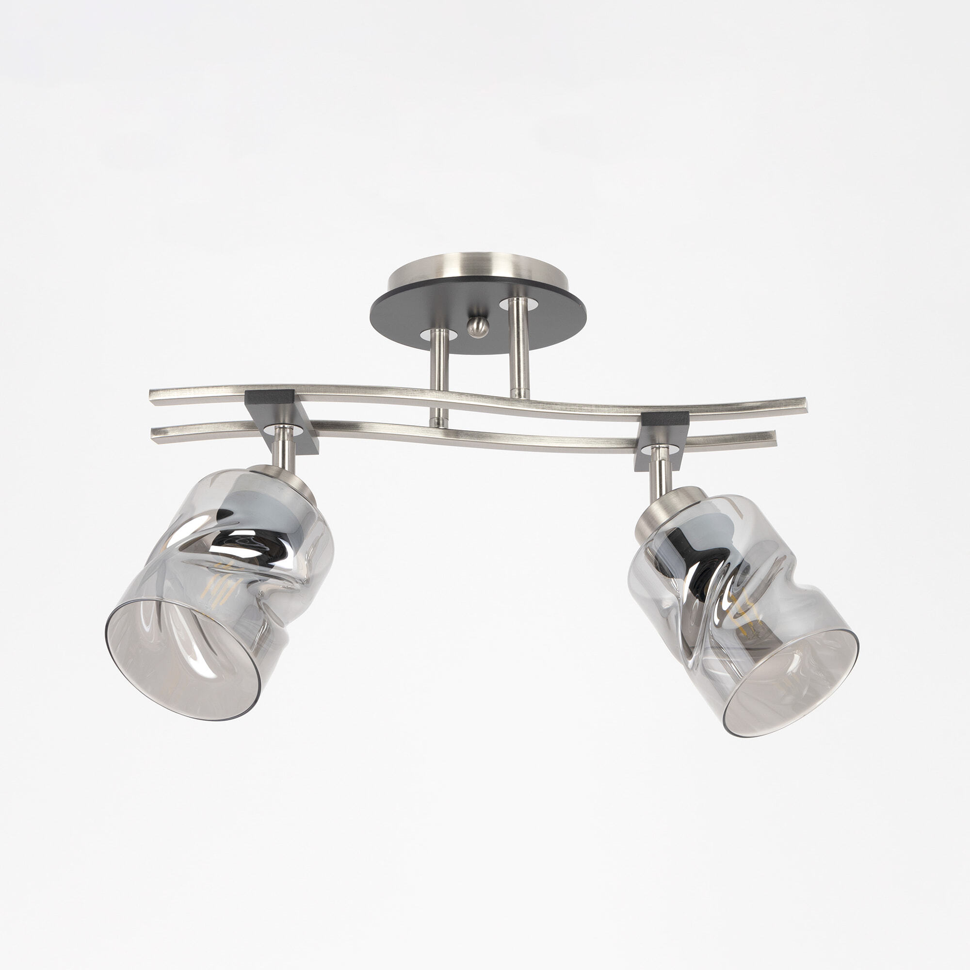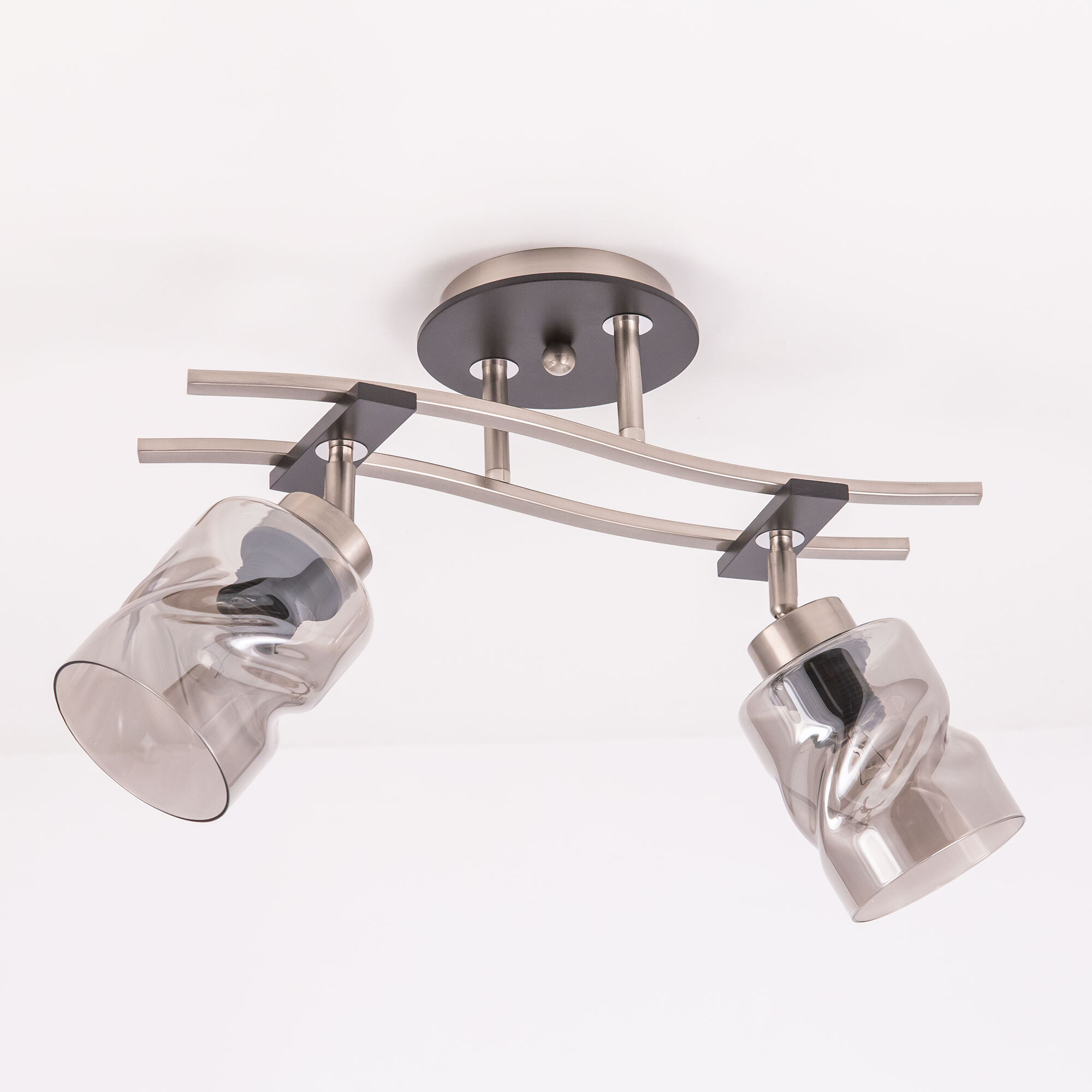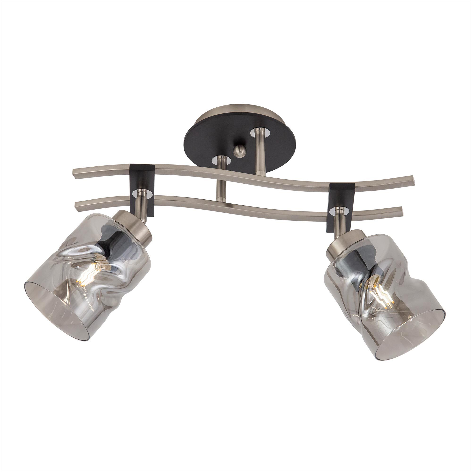 В изделии 2 лампы с цоколем Е27 максимальной мощностью для ламп накаливания 75Вт (лампы в комплект не входят). Модель подходит для всех типов потолков, в том числе натяжных, тип крепления – планка. Длина модели 44см, высота 30см, осветит до 9м².