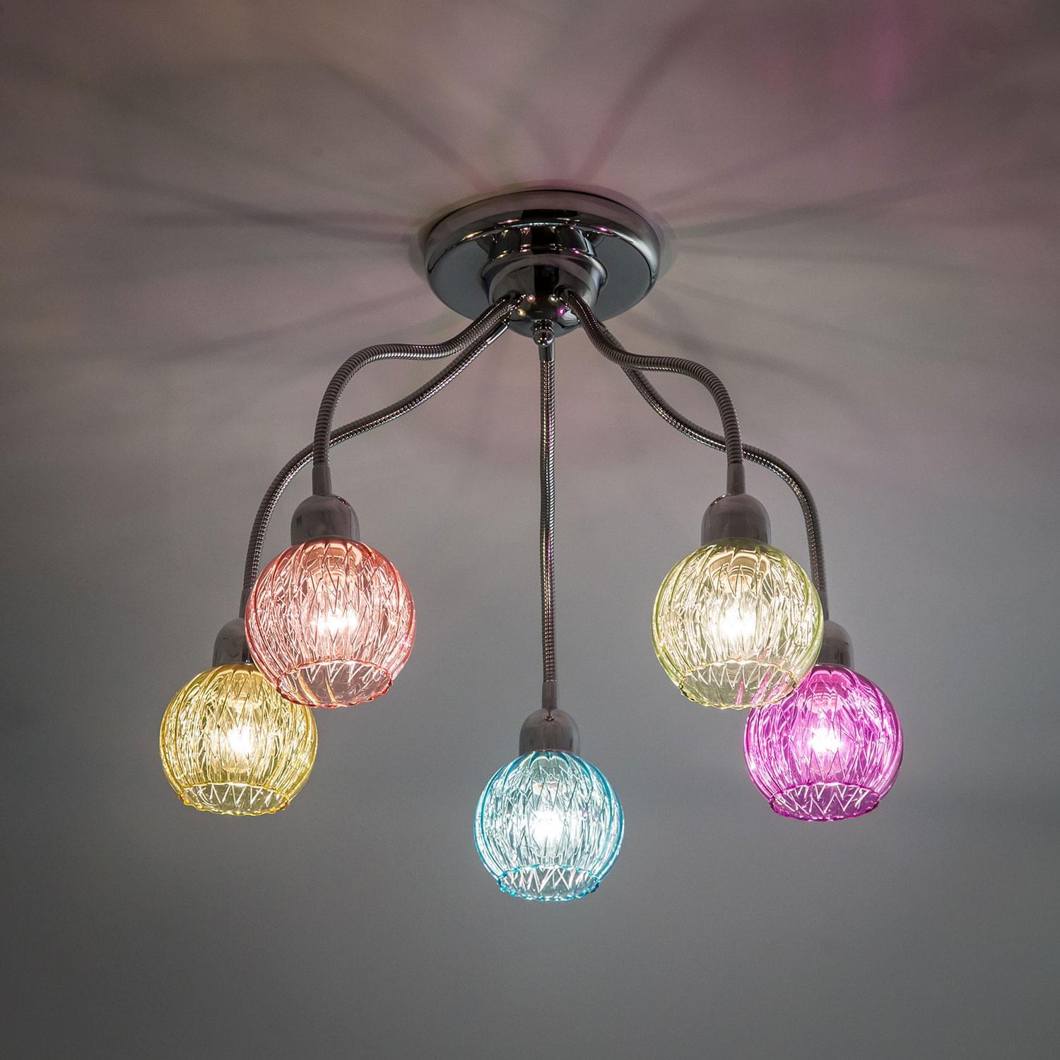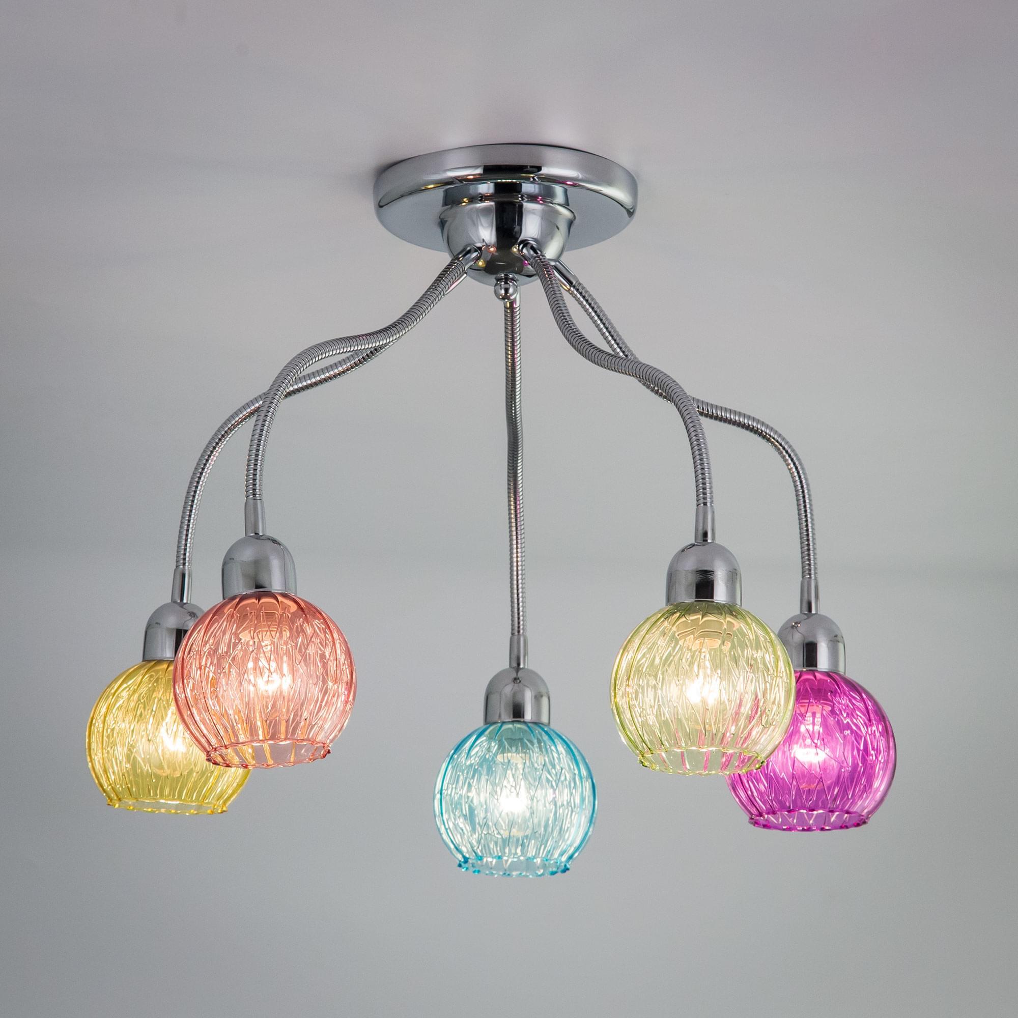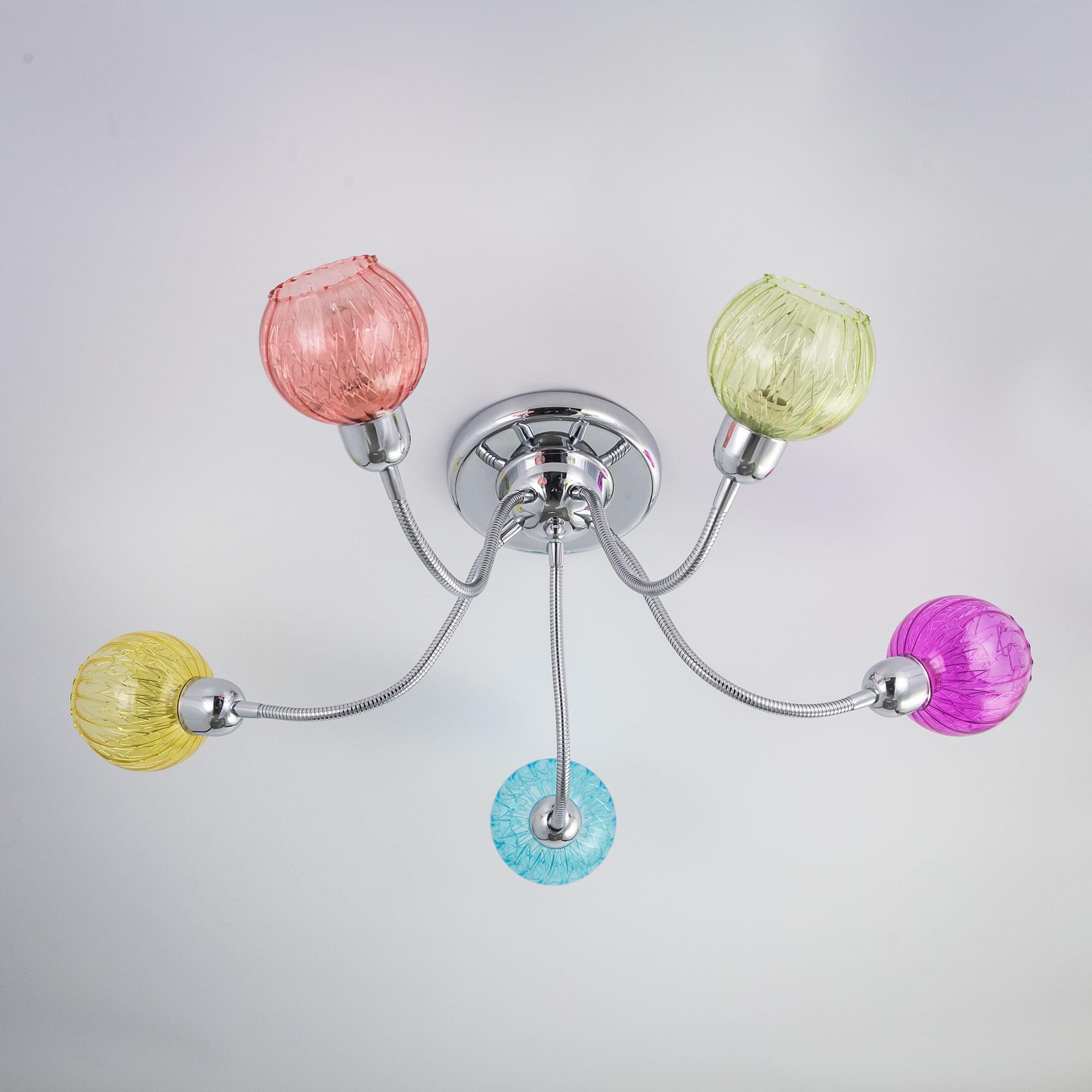 Светильник с головками на гибких элементах, длина гибкого элемента 32см, размер головки 13см, цветное стекло с внутренним алюминиевым декором
