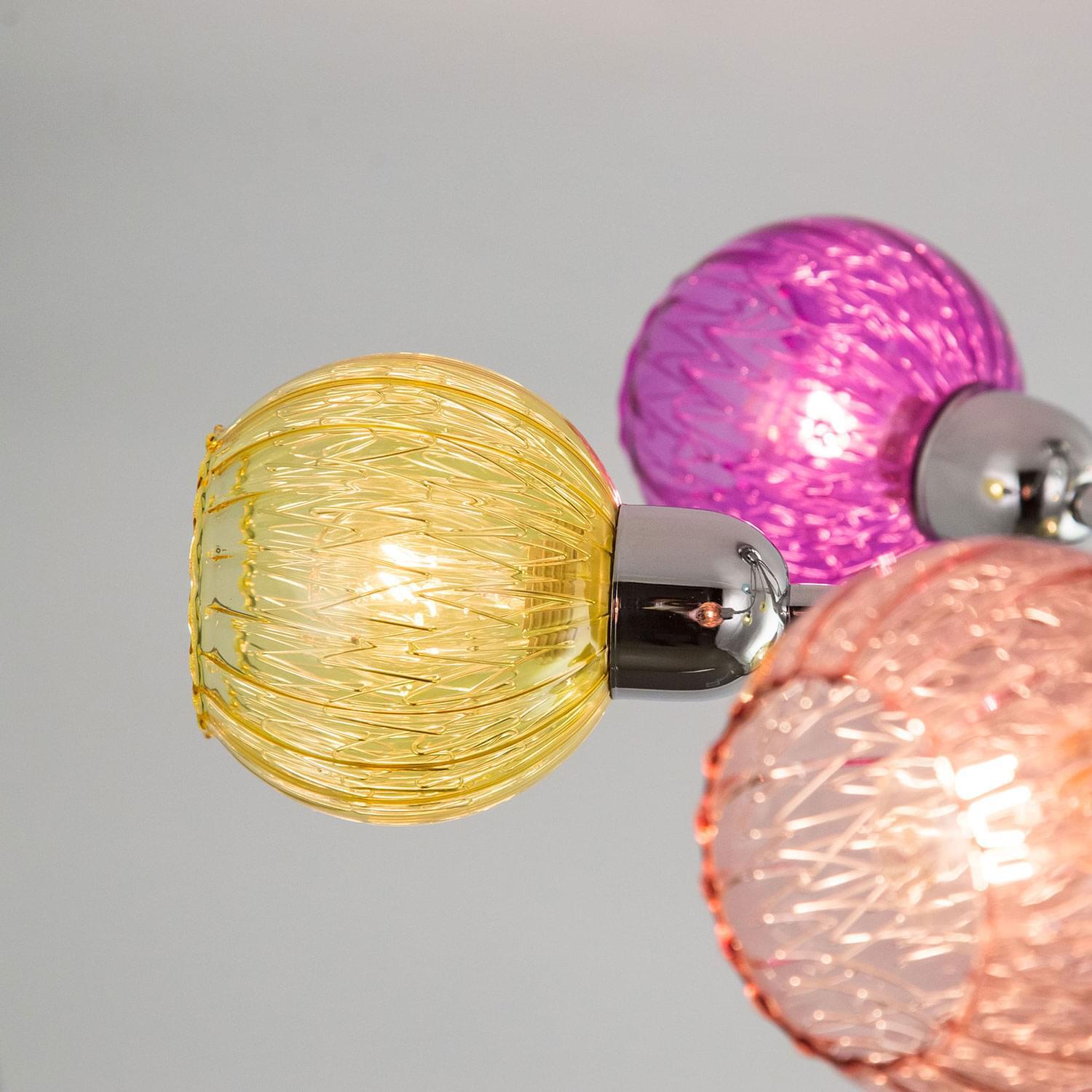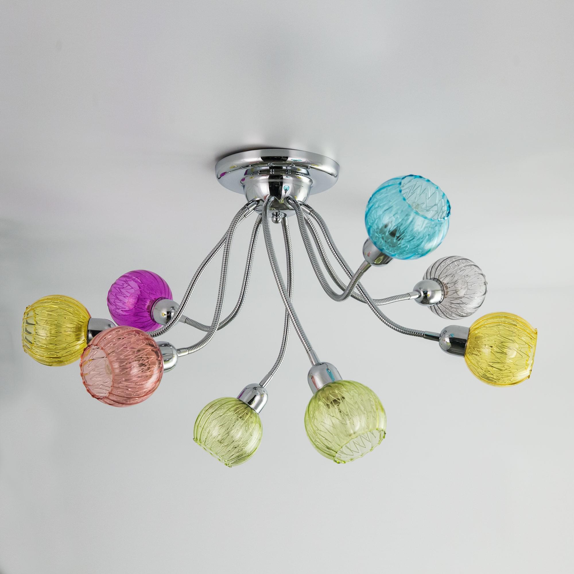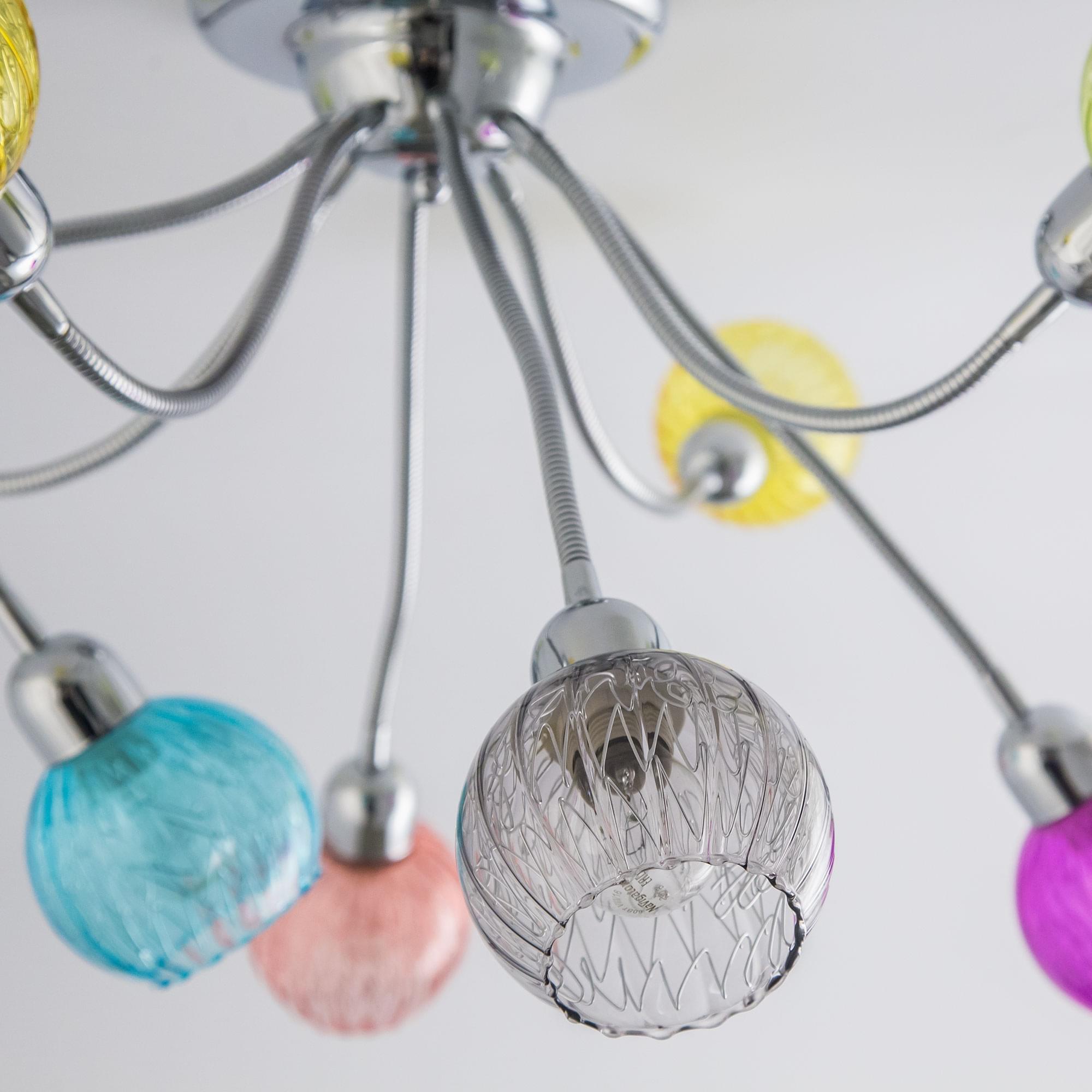 Светильник с головками на гибких элементах, длина гибкого элемента 32см, размер головки 13см, цветное стекло с внутренним алюминиевым декором
