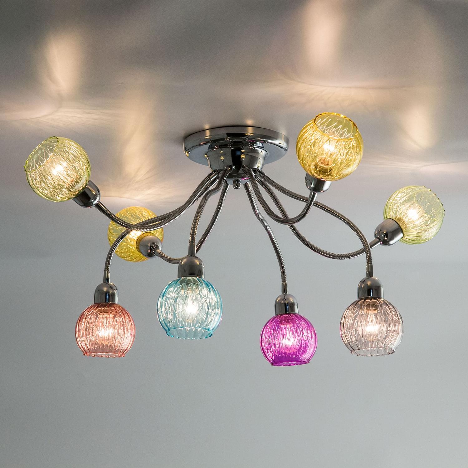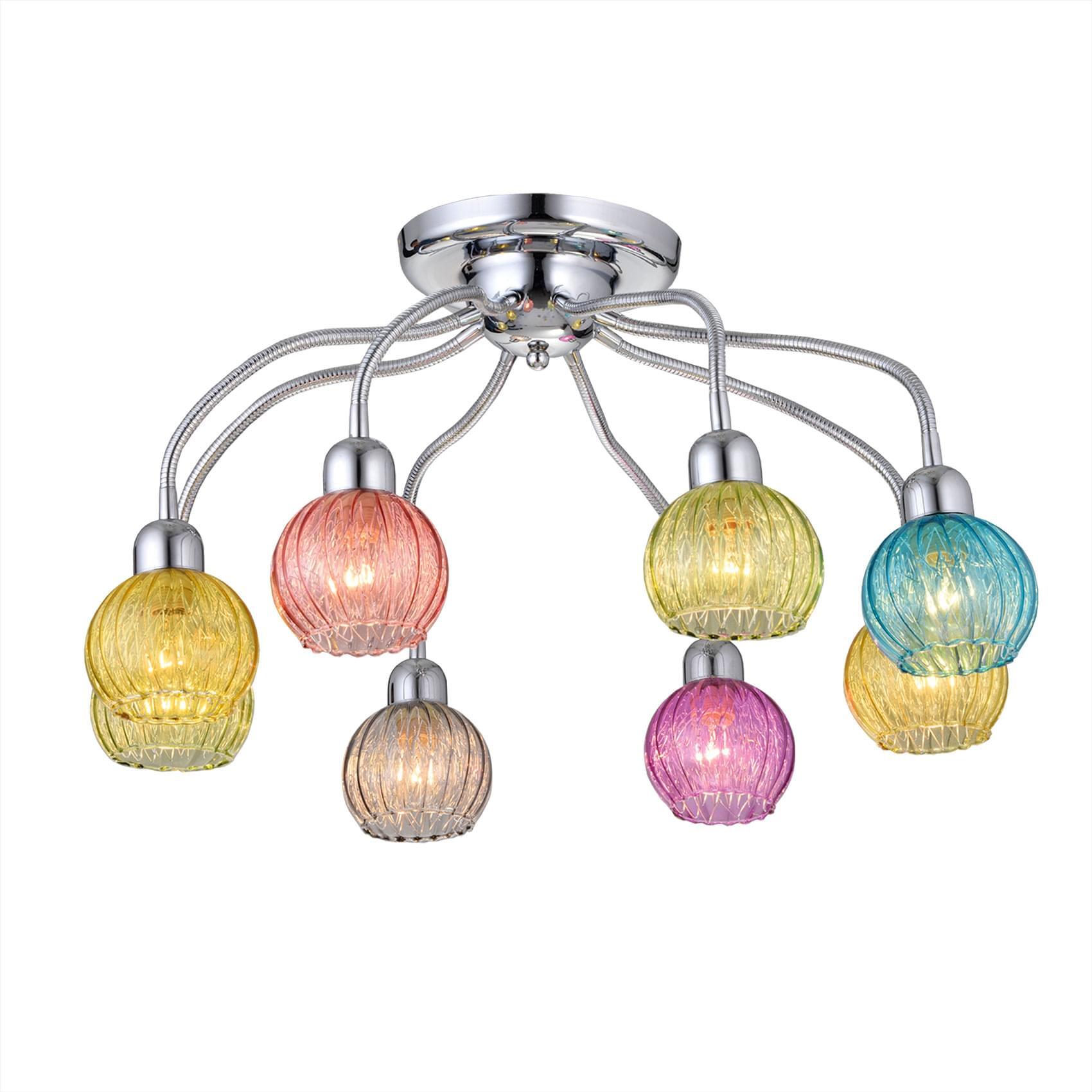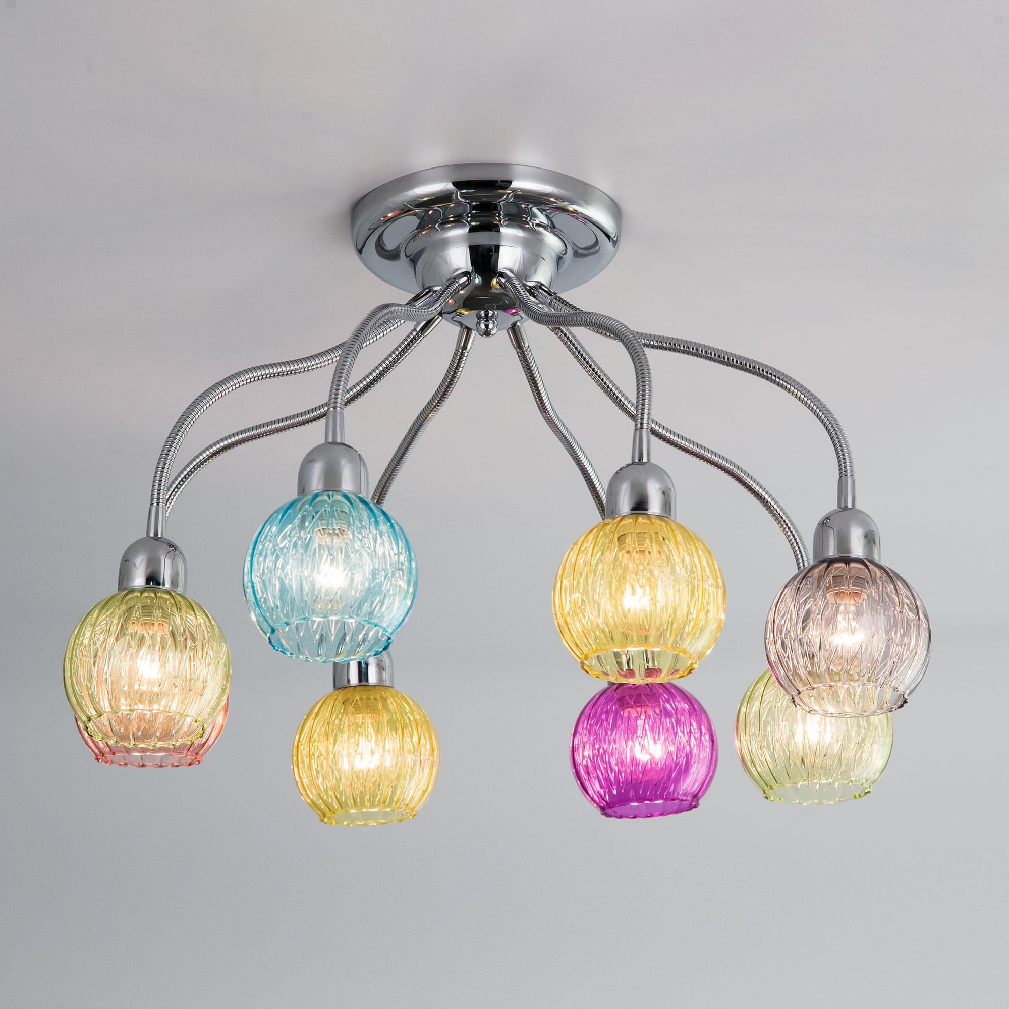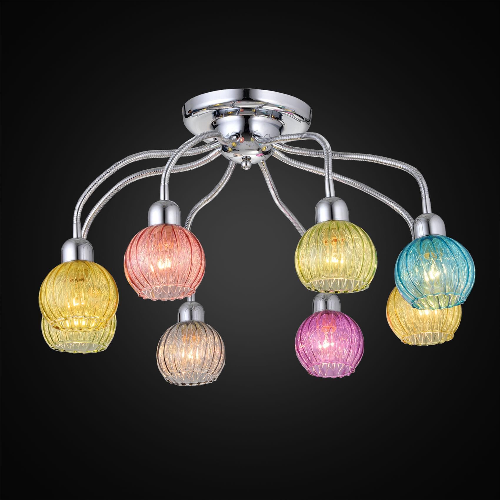 Светильник с головками на гибких элементах, длина гибкого элемента 32см, размер головки 13см, цветное стекло с внутренним алюминиевым декором