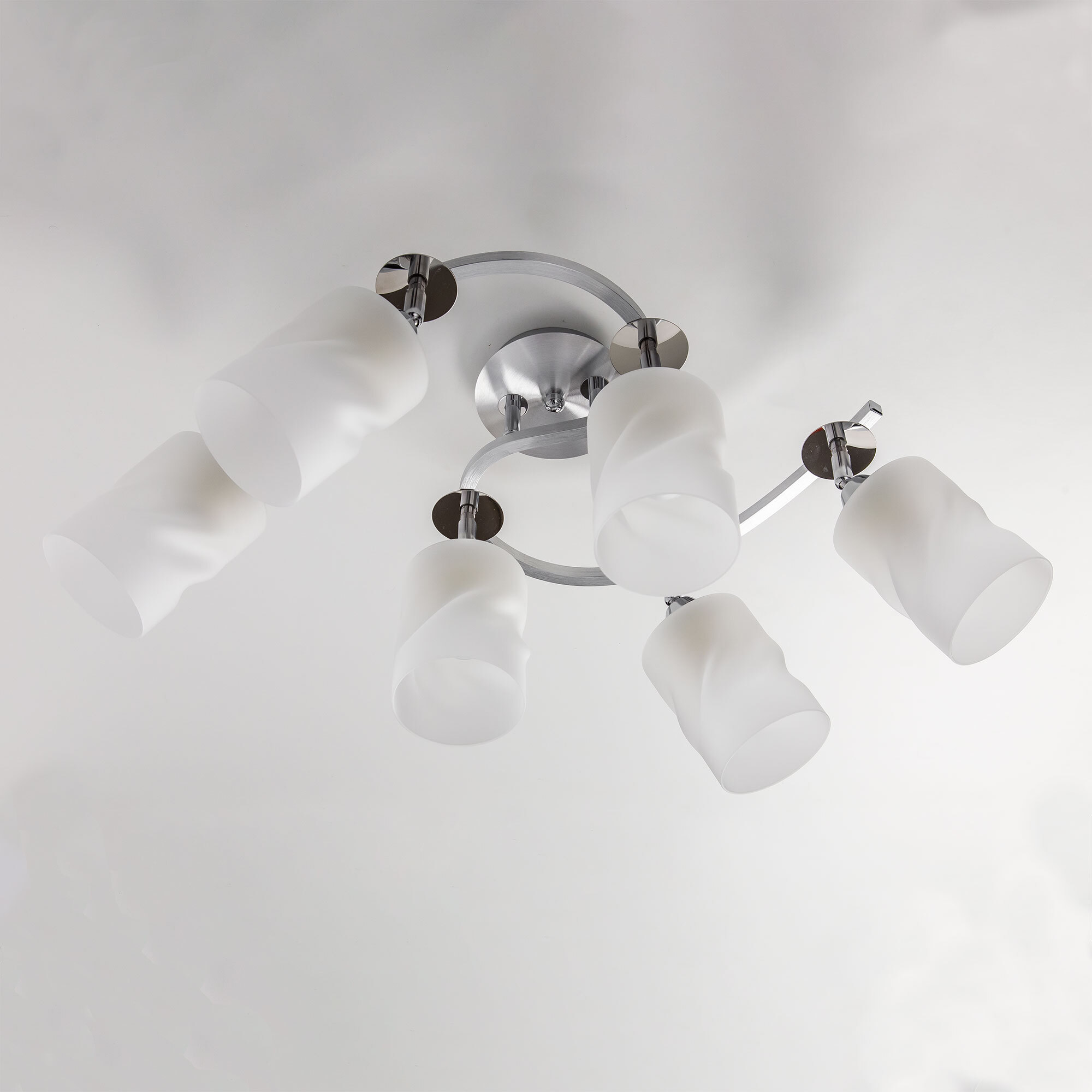 Потолочная шестирожковая люстра Сиерра CL119260 изогнутой формы. Корпус светильника с круглым основанием металлический, цвет алюминий с декоративными элементами цвета хром. Плафоны стеклянные белые матовые цилиндрической формы. Конструкция светильника позволяет поворачивать плафоны в разные стороны, направлять их вниз или в бок. Люстра подойдет для всех типов потолков, в том числе натяжных. Тип крепления – планка. В модели используются 6 ламп с цоколем Е27 и максимальной мощностью для ламп накаливания 75Вт. Светильник рассчитан на работу как с одноклавишным, так и с двухклавишным выключателями. Площадь освещения около 19 кв. метров. Люстра отлично подходит для освещения пространств, оформленных в современном стиле.Citilux CL119 SIERRA: Вдохновение в каждом луче.