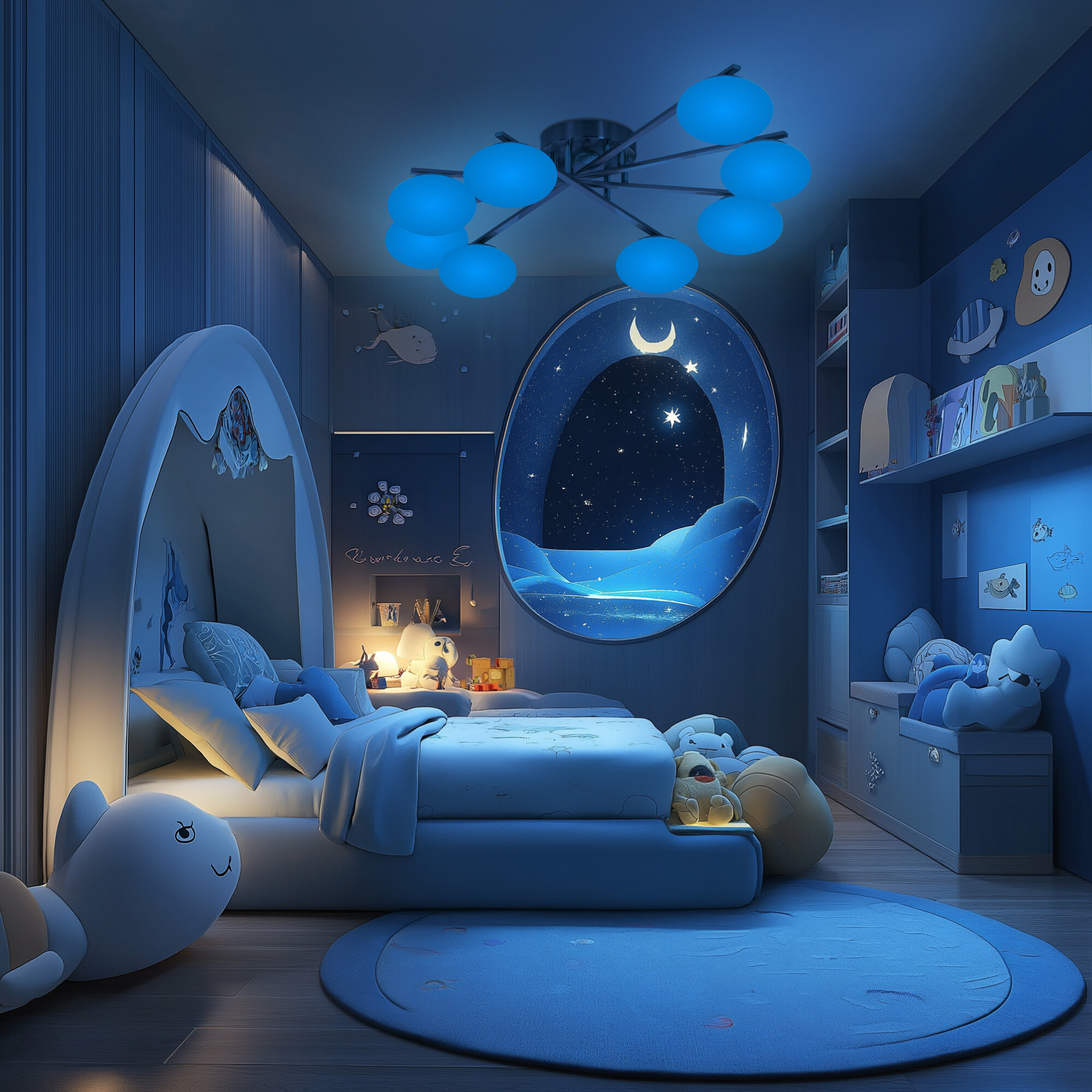 Люстрой можно управлять: через приложение на смартфоне по Wi-Fi при наличии интернета, с помощью голосовых помощников Алисы, Маруси и Салют, а также пульта дистанционного управления и настенного выключателя. Лёгкая настройка сценариев и расписания обеспечивает удобство использования.