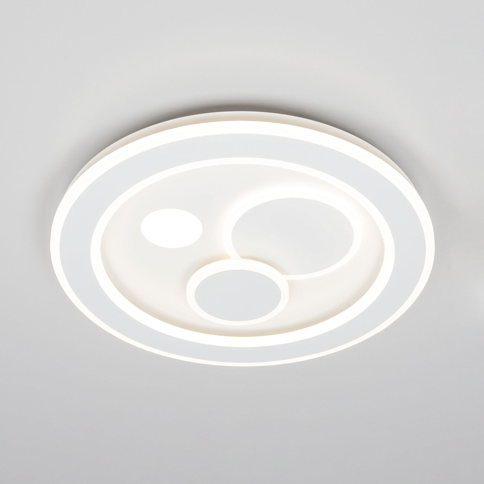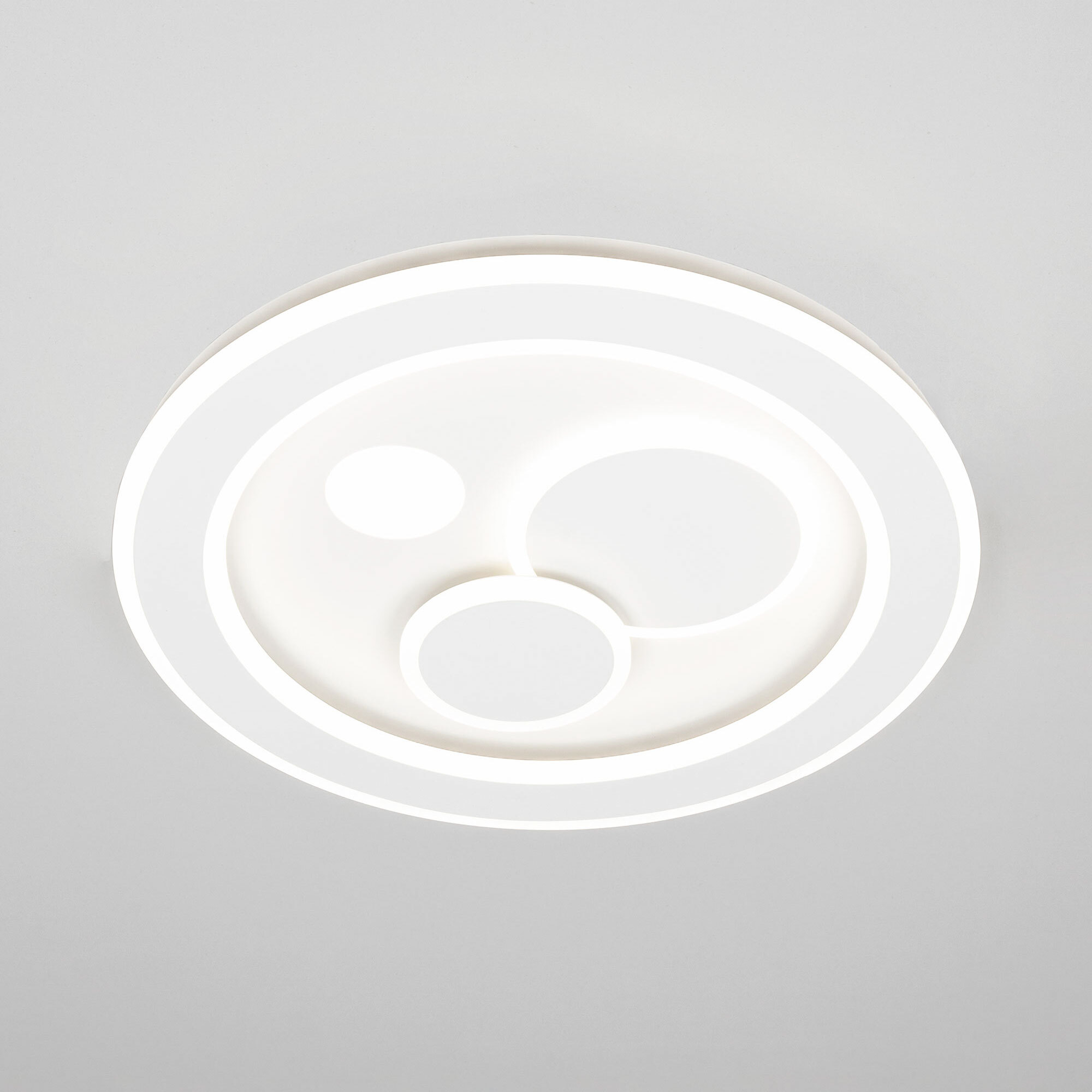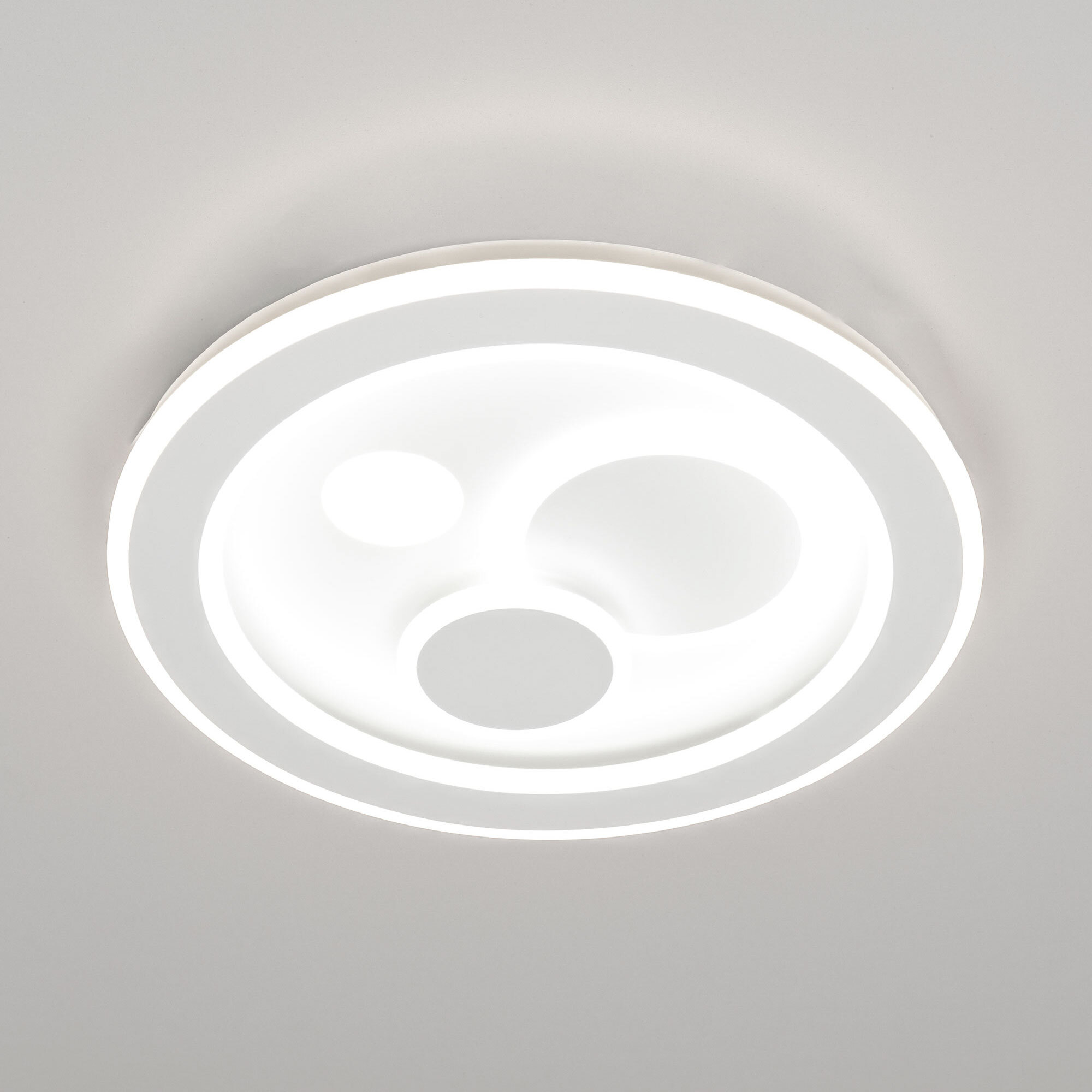 Светодиодная потолочная люстра Citilux Квест CL739170 с пультом дистанционного управления. Металлическое основание и четыре светодиодных модуля плафона, формирующих внешний вид люстры, имеют круглую форму. Корпус плафонов металлический, рассеиватель из оптического полимера. Люстрой можно управлять с помощью пульта дистанционного управления и настенным выключателем. Изделие оснащено яркими светодиодами, с возможностью плавной регулировки яркости от 10% до 100%. Цветовая температура регулируется в диапазоне от 3000К до 5500К, позволяя настроить любые оттенки теплого, нейтрального или холодного света, без мерцания и пульсаций. Есть настраиваемые режимы памяти и таймер выключения. Модель подходит для всех типов потолков, в том числе натяжных, тип крепления – планка. Пульт ДУ в комплекте, тип батареек ААА (батарейками не комплектуется). Люстра плоская – высота всего 6,5см, диаметр 47см, мощность 80Вт, световой поток 7200Лм.Citilux CL739 QUEST: Вдохновение в каждом луче.