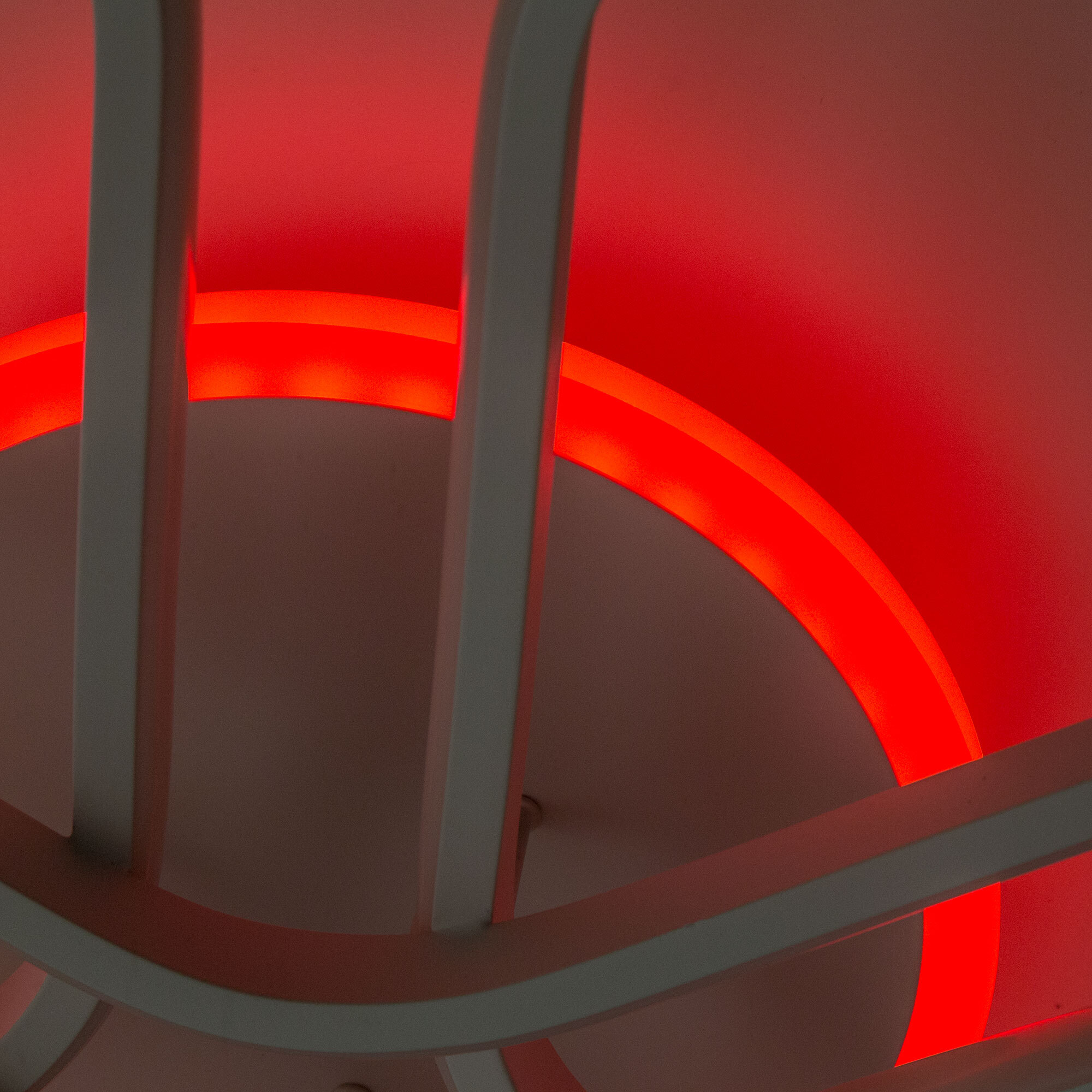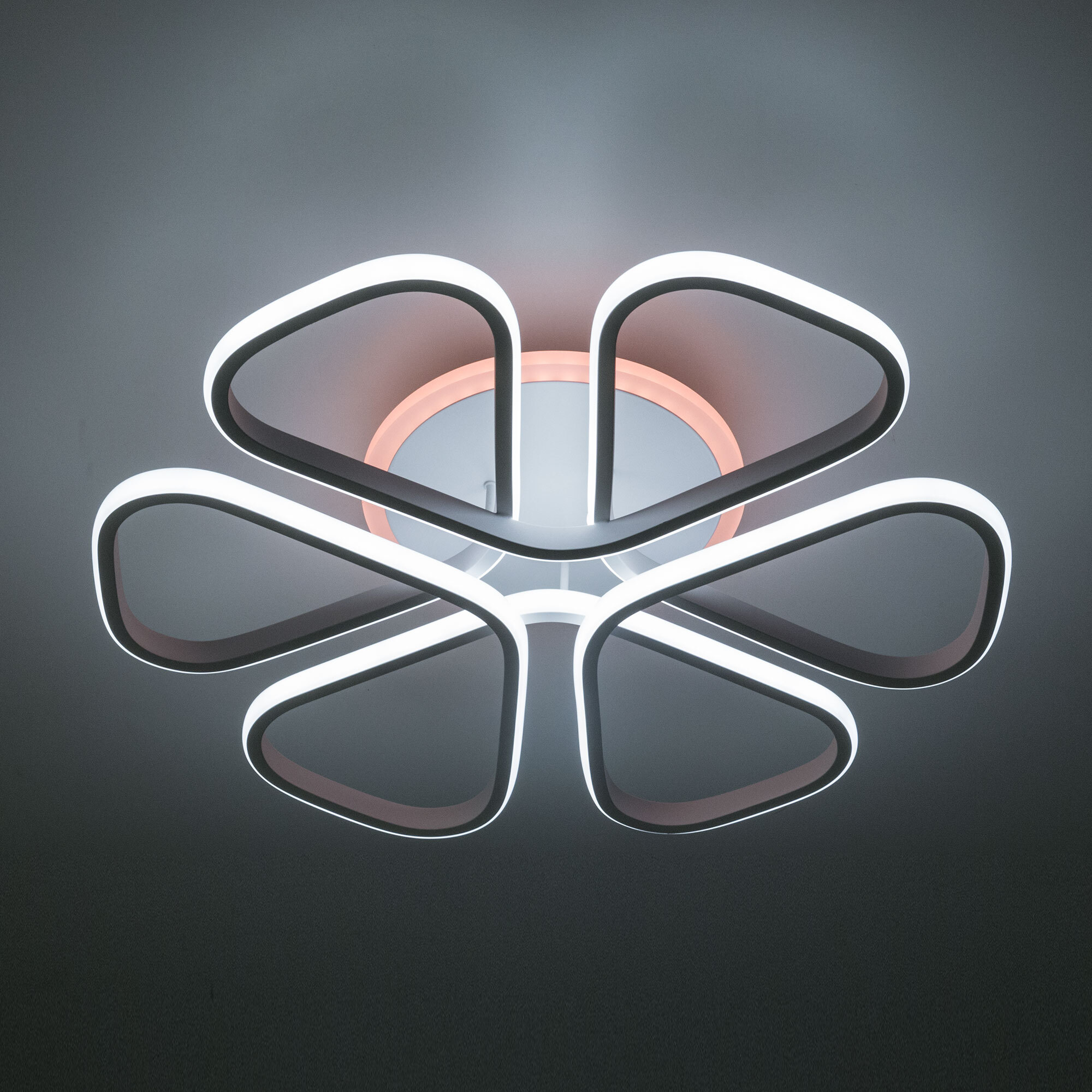 Модель оснащена мощными светодиодами, с возможностью плавной регулировки яркости от 10 до 100%. Цветовая температура регулируется в диапазоне от 3000К до 5500К, позволяя настроить любые оттенки теплого, нейтрального или холодного света. В основании светильника установлена независимая цветная подсветка RGB. Мощность люстры 90Вт, 6300Лм, площадь освещения при стандартной высоте потолков около 23 кв. метра. Пульт ДУ в комплекте, тип батареек ААА (батарейками не комплектуется).