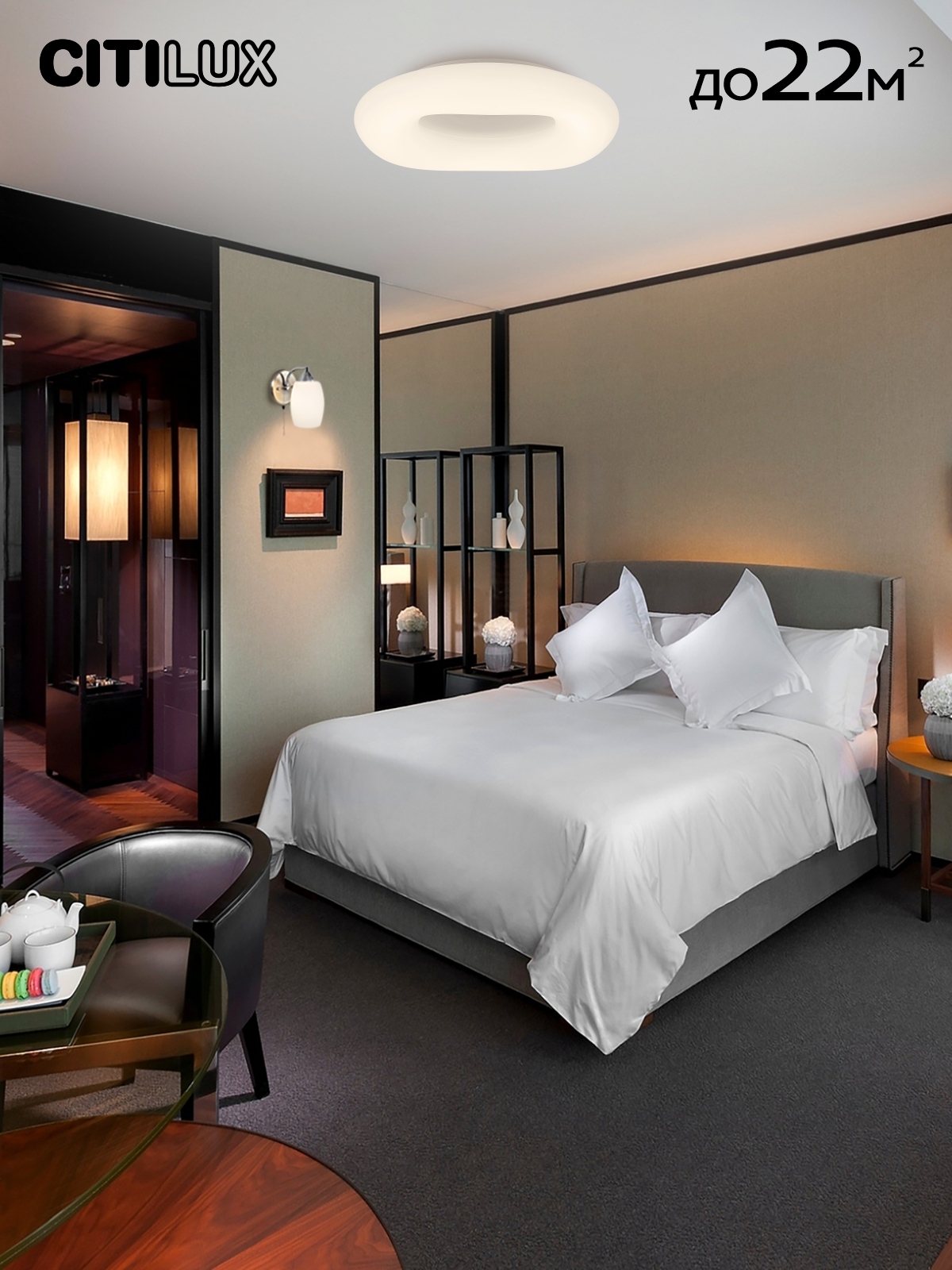 Мощность светильника 85Вт, что равно 850Вт ламп накаливания. Свет без мерцаний и пульсаций с высоким качеством цветопередачи (CRI > 85). Диапазон регулировок цветовой температуры от 3000К до 5500К, с возможностью настроить любые оттенки теплого, нейтрального и холодного света. Площадь освещения около 22 кв. метров. Пульт ДУ в комплекте, тип батареек ААА (батарейками не комплектуется).
