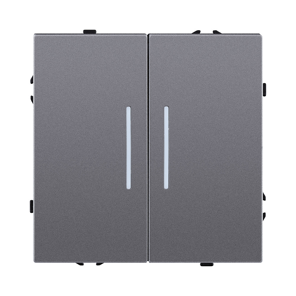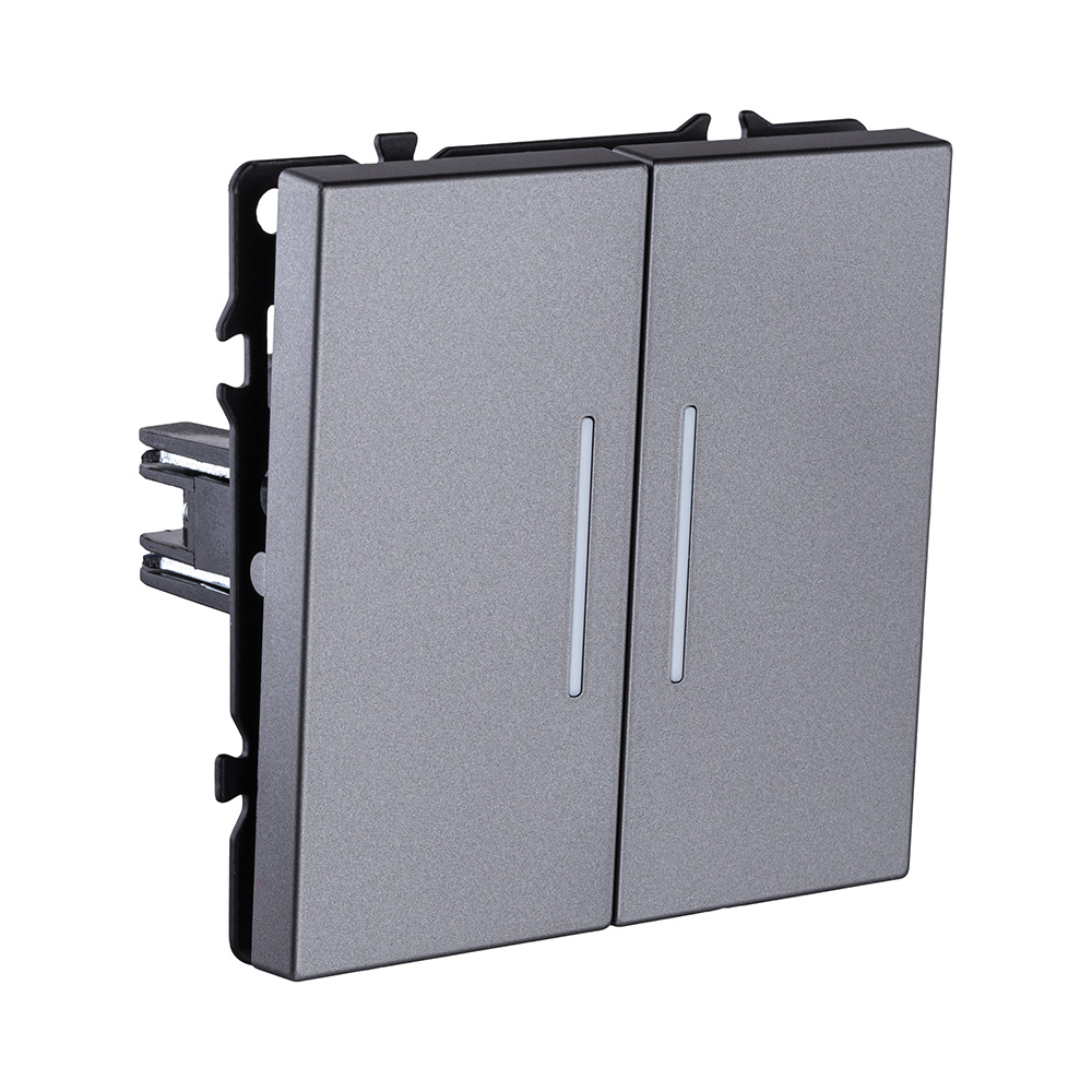Выключатель 2-клавишный проходной 10А/250В с LED подсветкой, серый Kollinger Eclipse EC-011GY
