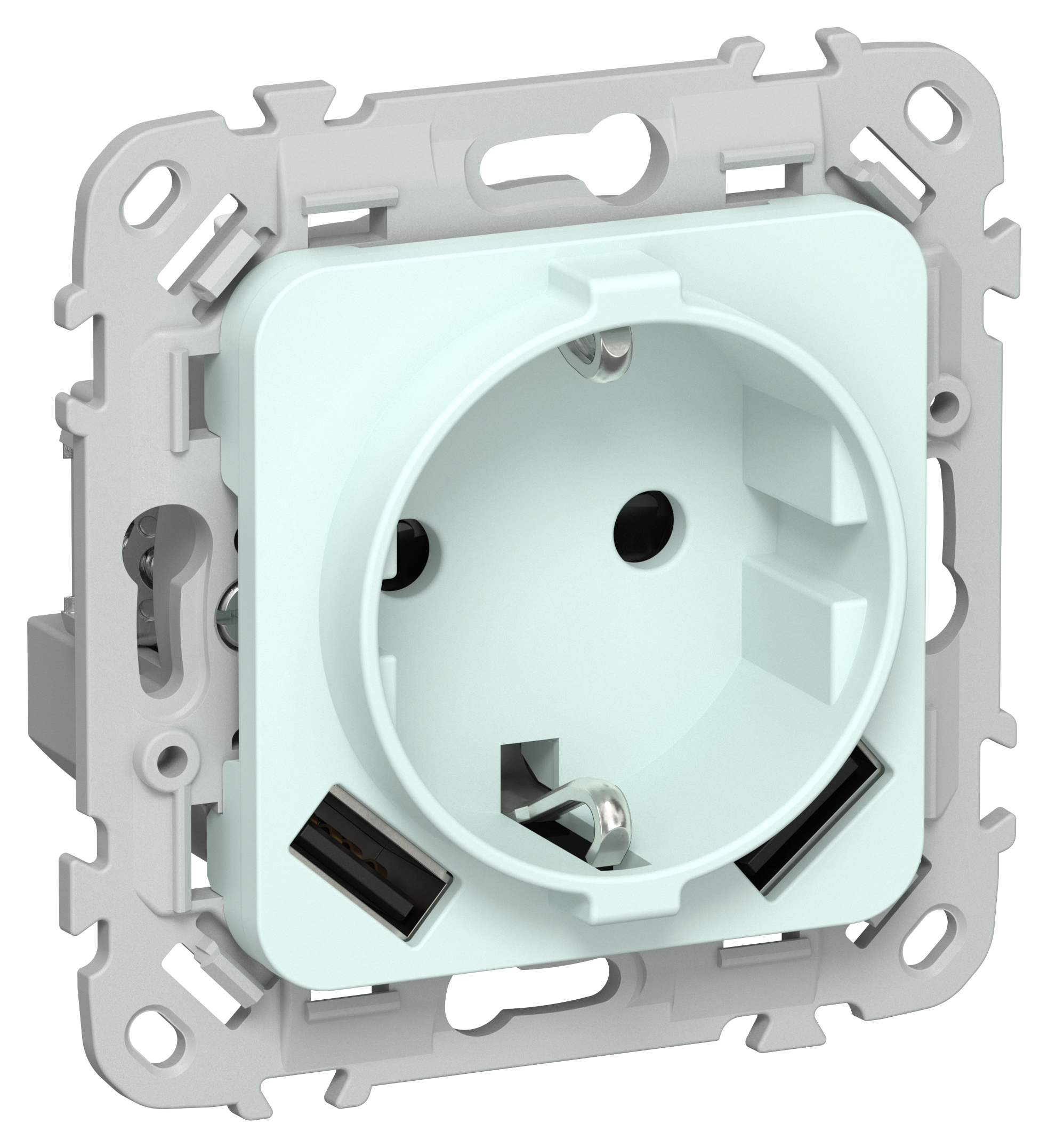 FLITE Розетка 1-местная с заземлением с защитными шторками 16А с USB A+A 3,1А безвинтовое крепление РСЮша11-1-ФлХЛ холодный лед IEK
