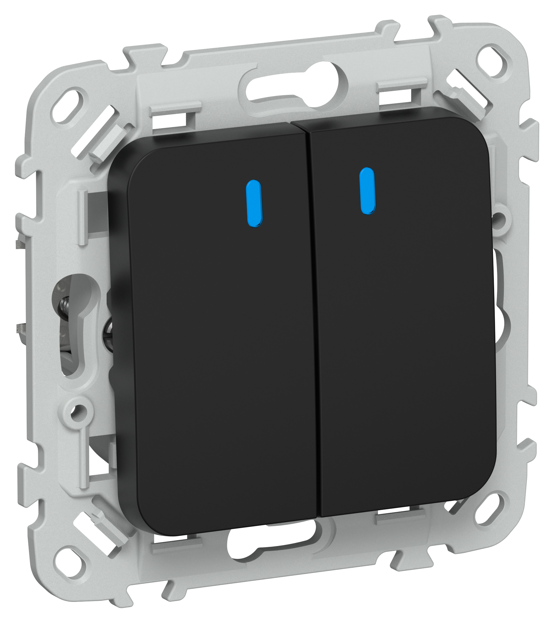 FLITE Выключатель 2-клавишный проходной с индикацией 10А ВС62-1-1-ФлЧ черный IEK