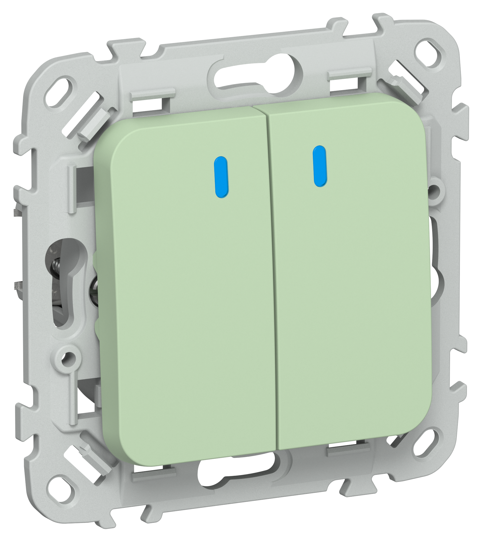 FLITE Выключатель 2-клавишный проходной с индикацией 10А ВС62-1-1-ФлФ фисташковый IEK