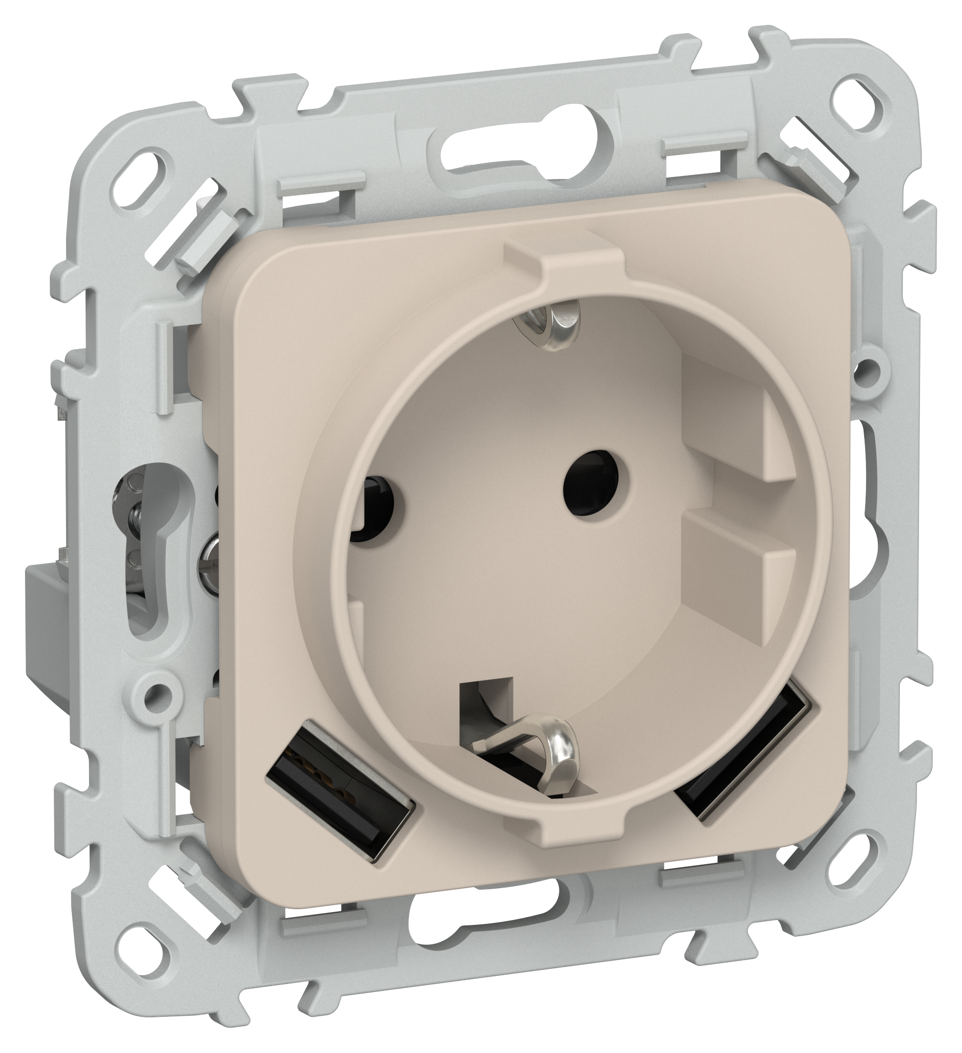 FLITE Розетка 1-местная с заземлением с защитными шторками 16А с USB A+A 3,1А безвинтовое крепление РСЮша11-1-ФлЛ льняной IEK