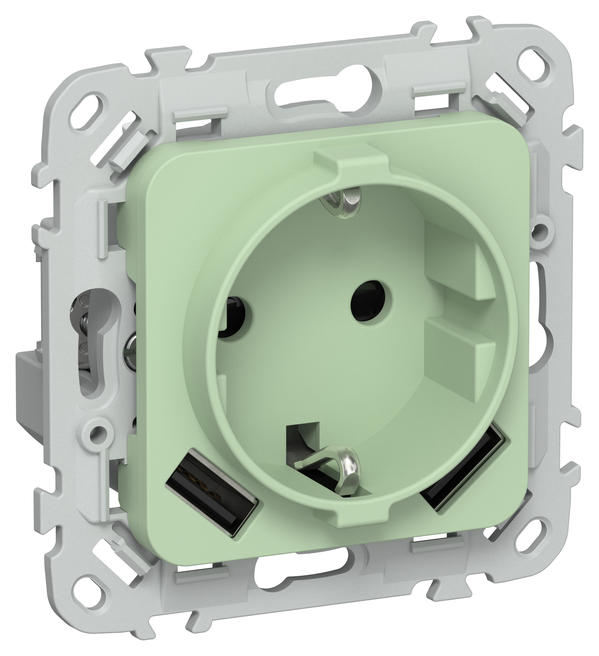 FLITE Розетка 1-местная с заземлением с защитными шторками 16А с USB A+A 3,1А РСЮша11-0-ФлФ фисташковый IEK