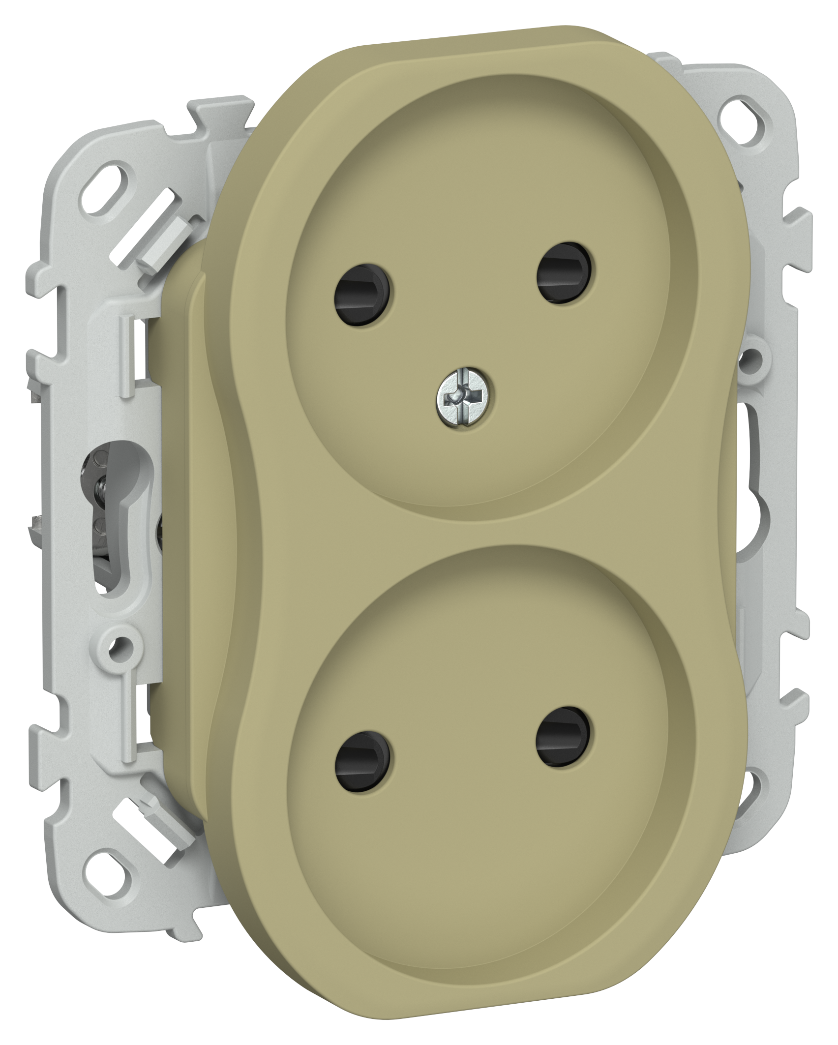 FLITE Розетка 2-местная без заземления с защитными шторками безвинтовое крепление 10А РСш02-1-ФлО оливковый IEK