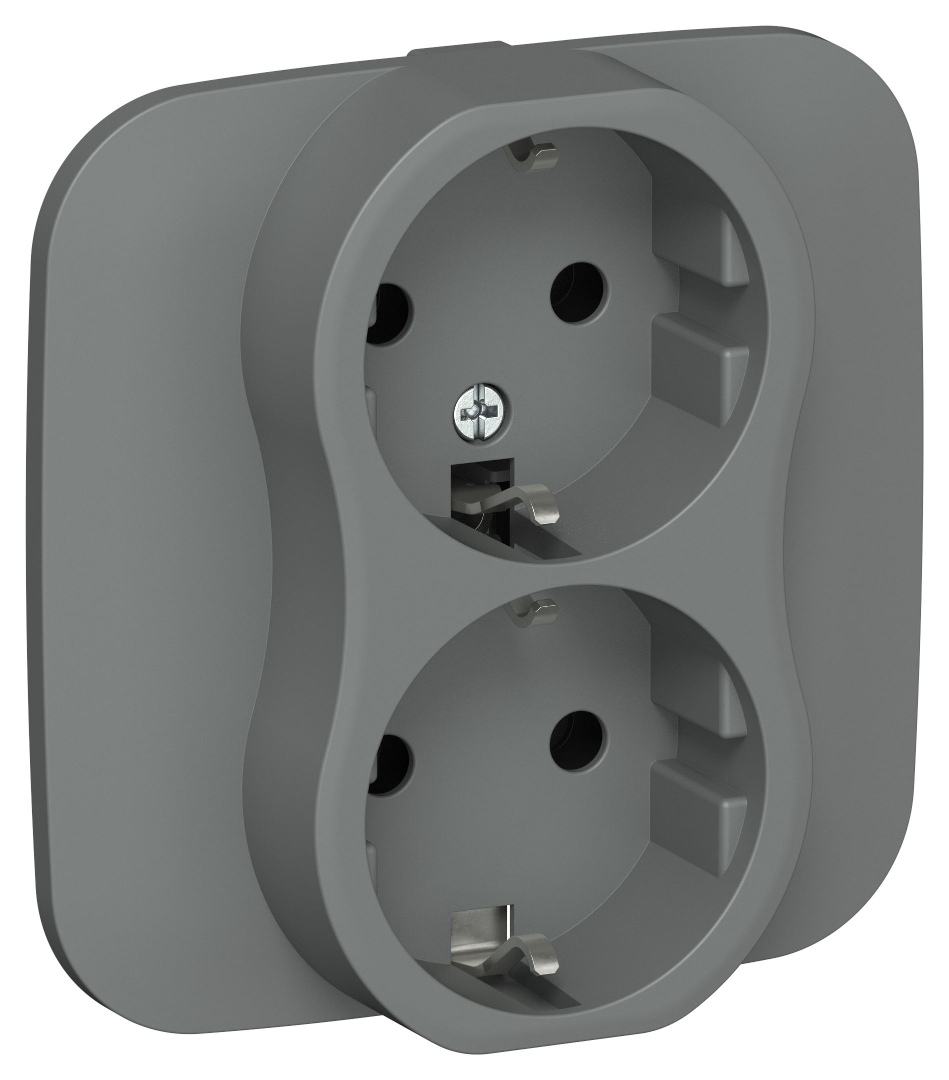 FLITE Розетка 2-местная с заземлением без защитных шторок 16А РС12-0-А-ФлМА мокрый асфальт IEK