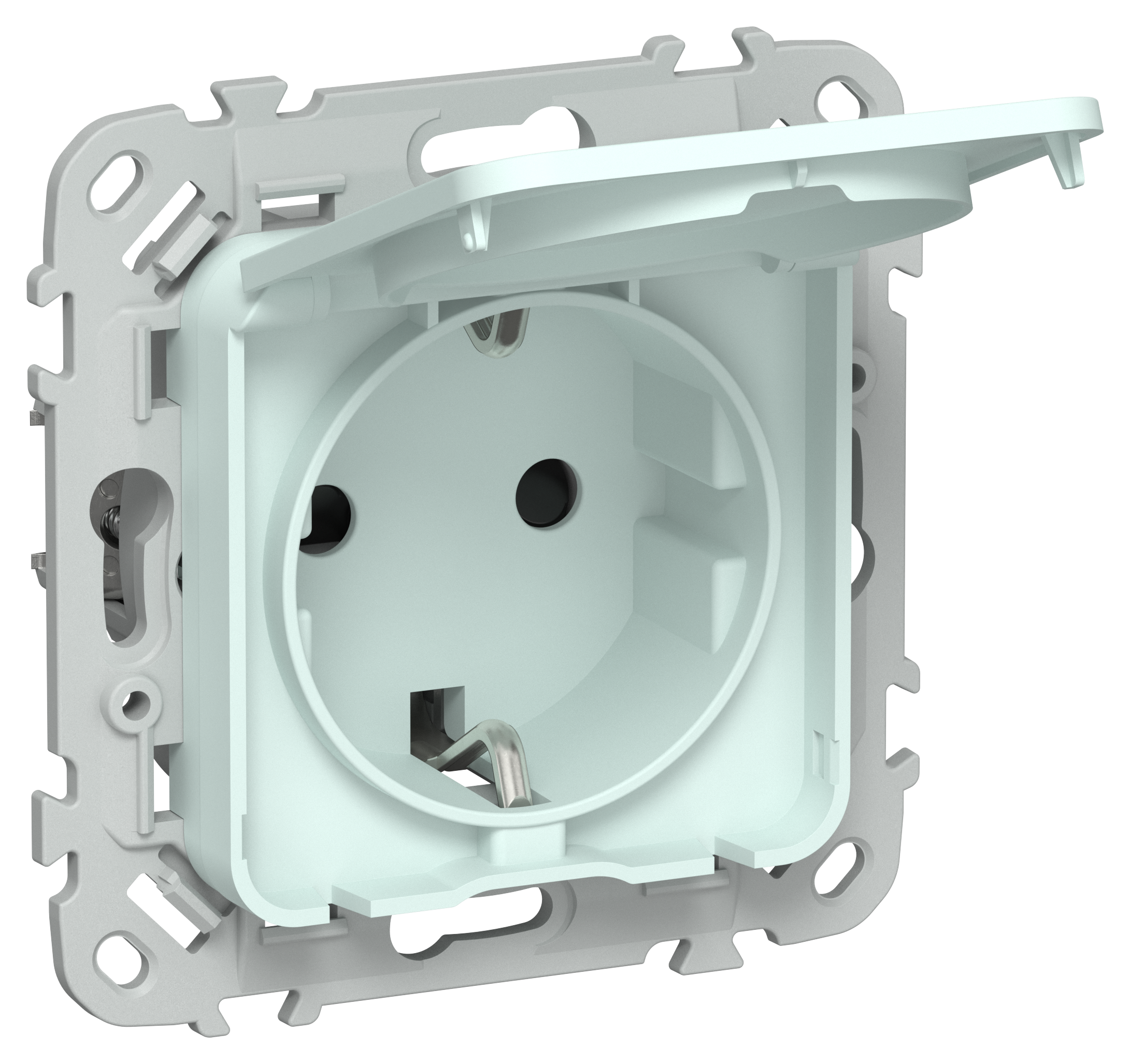 FLITE Розетка с заземлением с защитными шторками и крышкой 16А IP44 РСшкр11-0-44-ФлХЛ холодный лед IEK