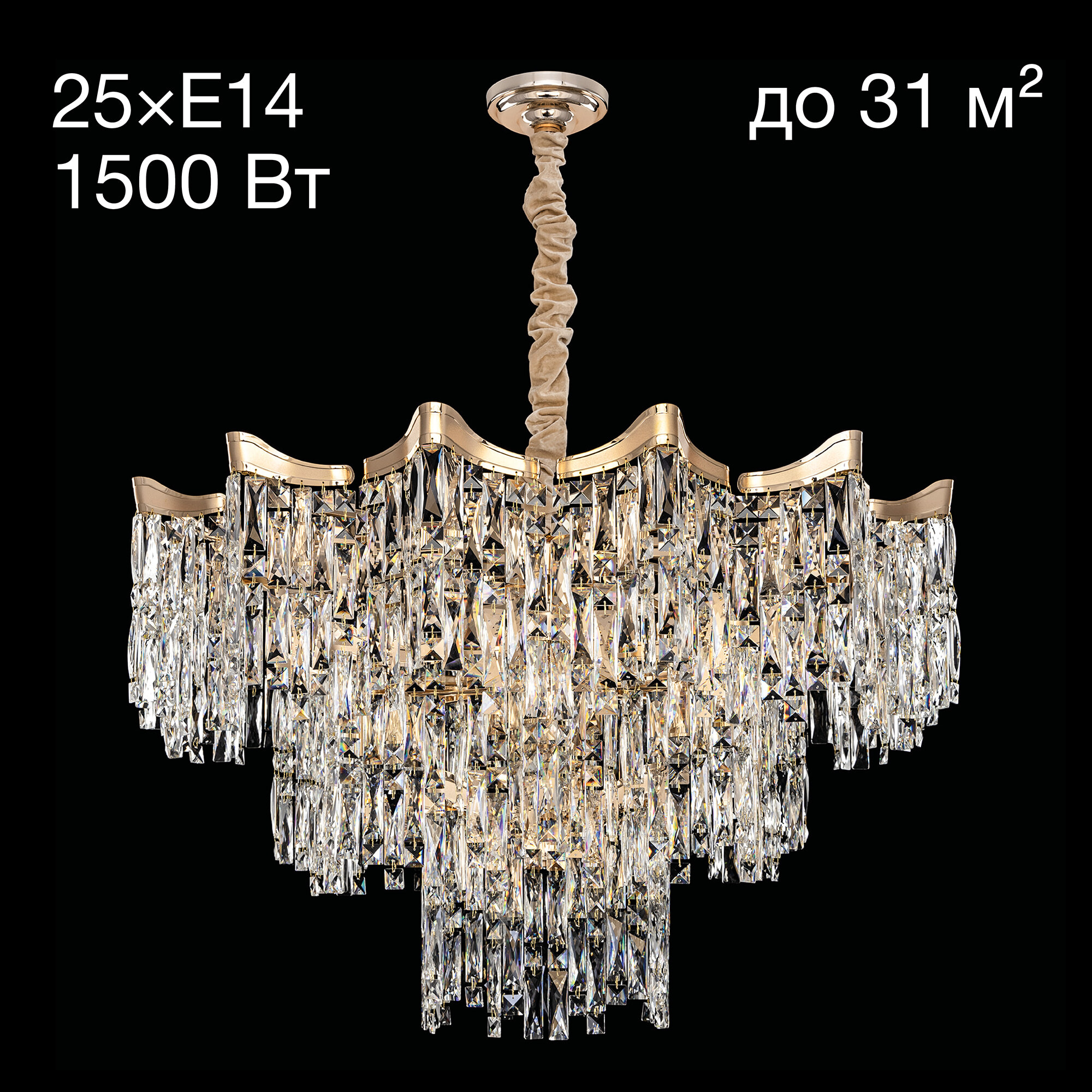 Хрустальная люстра Citilux Моника CL308292 восхищает своей красотой. Шикарные подвески изготовлены из кристально прозрачного хрусталя с модной огранкой. Корпус металлический, благородного золотого цвета. В изделии используется 25 ламп с цоколем Е14 максимальной мощностью для ламп накаливания 60Вт (в комплект не входит, приобретается отдельно). Диаметр светильника 99см, высота регулируется от 70см до 1,66м. Подходит для всех типов потолков, в том числе натяжных, тип крепления – планка. Великолепная хрустальная люстра Citilux Моника CL308292 потрясающе выглядит в классических и современных интерьерах, и бесспорно станет украшением гостиной, столовой, зала или кабинета.Citilux CL308 MONIKA: Вдохновение в каждом луче.