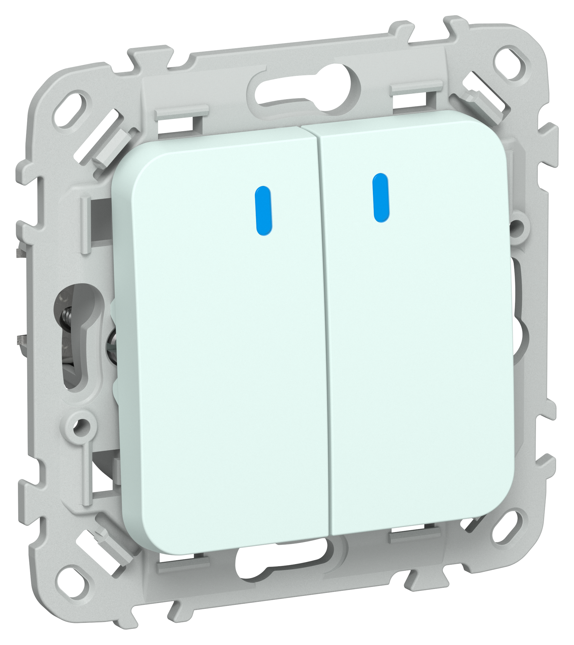 FLITE Выключатель 2-клавишный проходной с индикацией 10А ВС62-1-1-ФлХЛ холодный лед IEK