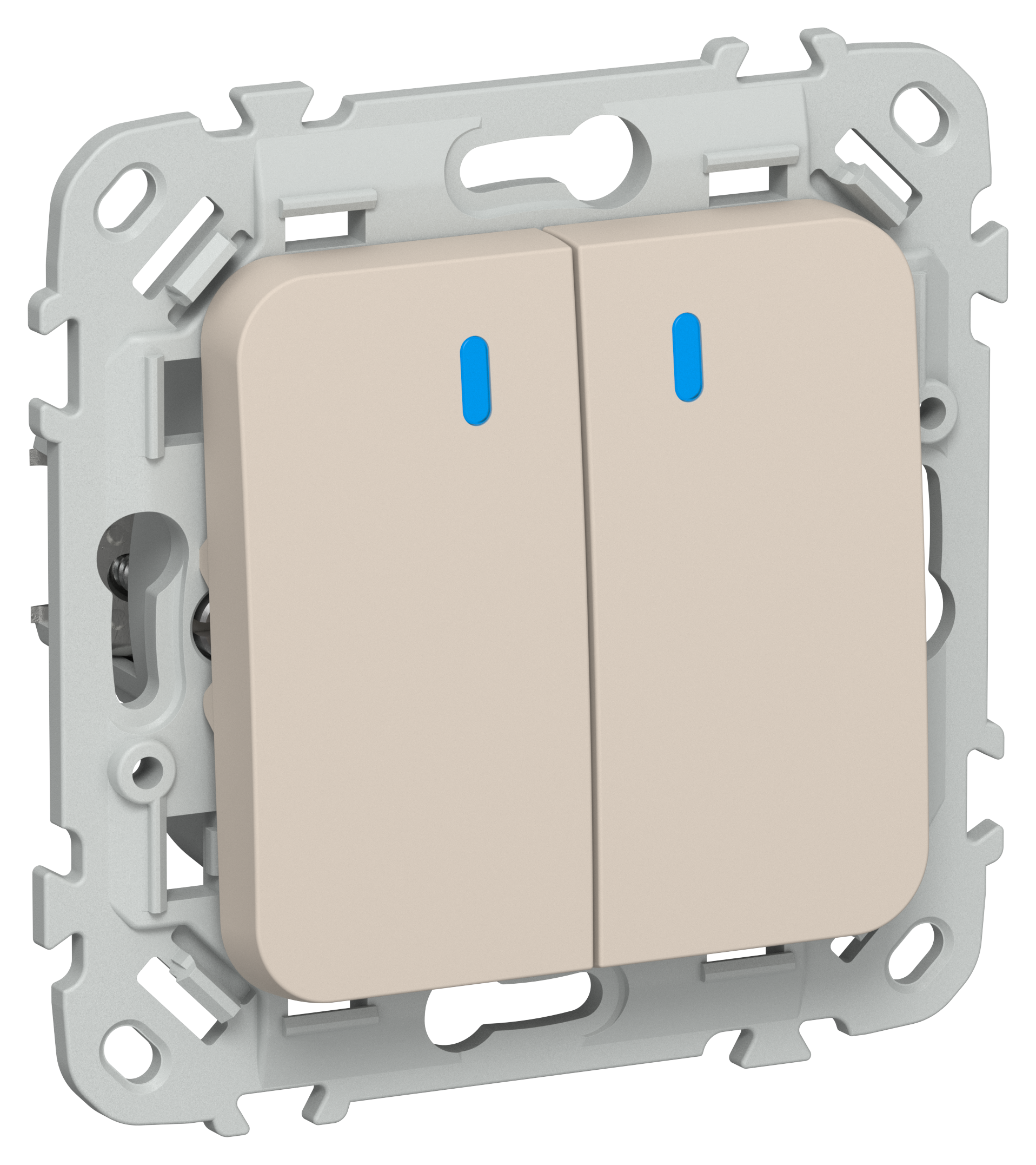 FLITE Выключатель 2-клавишный проходной с индикацией 10А ВС62-1-1-ФлЛ льняной IEK