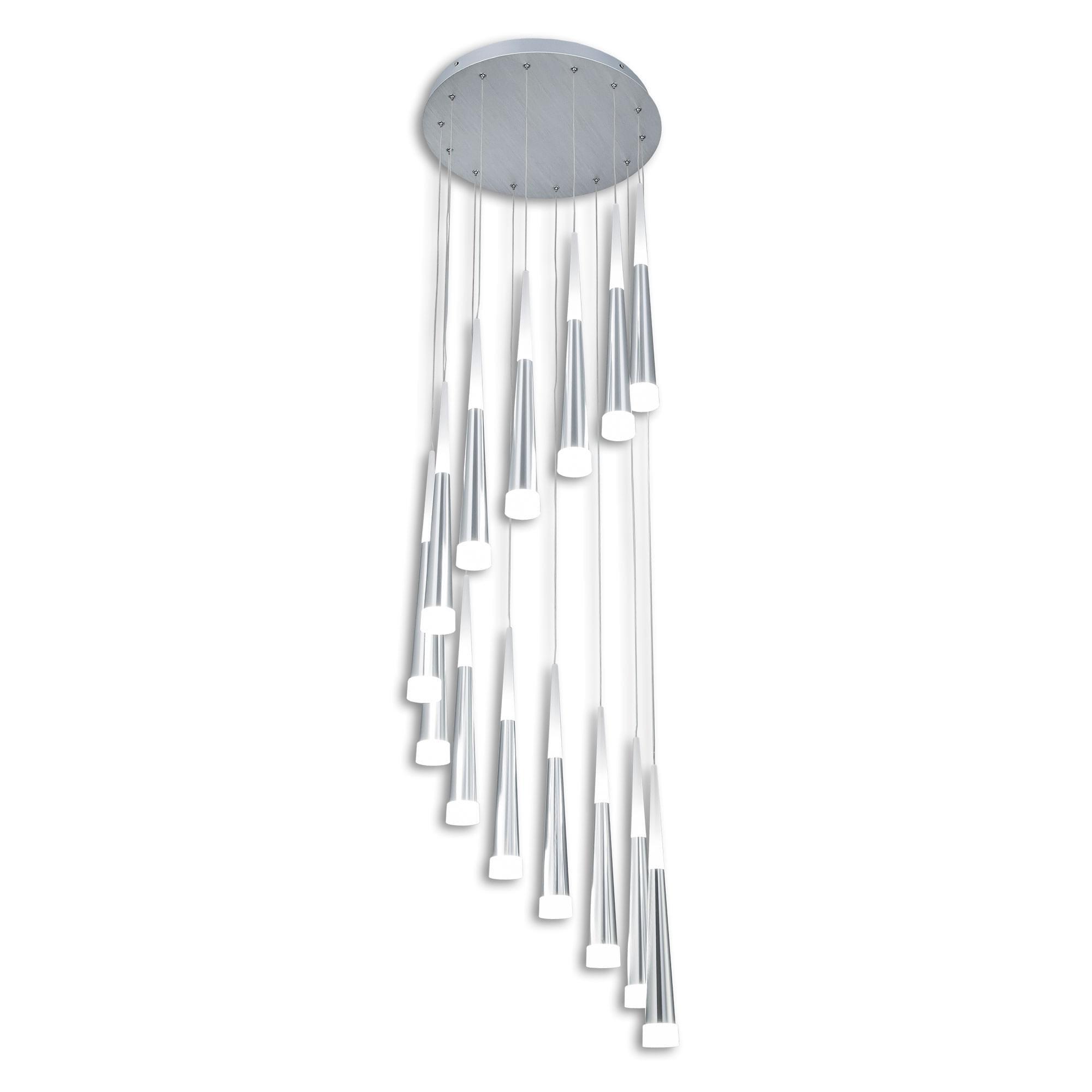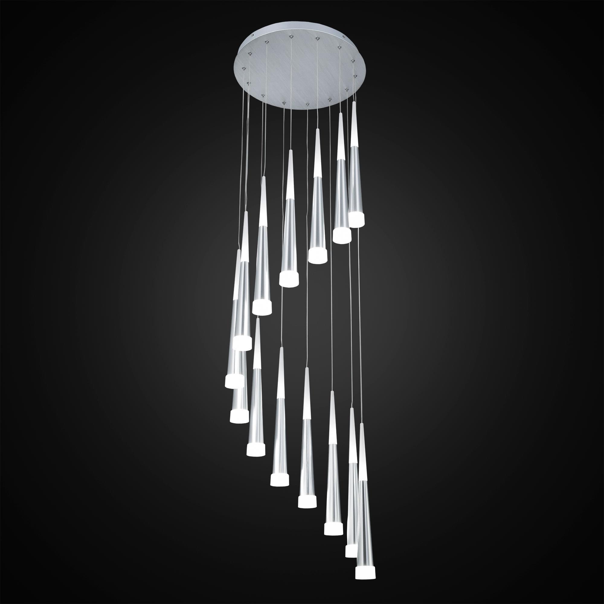 Шикарная подвесная светодиодная слюстра CL227140 с 14-ю конусными плафонами цвета хром из коллекции «Вегас» общей мощностью в 98 Вт. Все подвесы новой коллекции «Вегас» излучают оптимальный для человеческих глаз, мягкий тёплый (3000К) свет, и разработаны в нескольких вариантах размера, от аккуратных одинарных до огромных и шикарных шеснадцатирожковых. Мощность каждого рожка в диодном эквиваленте 7 Вт, что соответствует приблизительно шестидесяти ваттной лампе накаливания. Данная модель люстры, с 14-ю плафонами, способна осветить помещение площадью от 21 до 34 квадратных метров! Внутри плафона подвеса стоят современные светодиоды, которые дают яркий и в тоже время рассеянный свет. Высота каждого элемента подвеса независимо регулируется, позволяя придавать светильнику индивидуальный дизайн. Для вашего удобства при выборе мы создали коллекцию в 4-х цветах, которые сейчас особенно в тренде у дизайнеров интерьера, это – строгий чёрный, мягкий кофейный, элегантный алюминий и волнующий тёплый шампань. Серия «Вегас» отлично подходит для роскошных интерьеров с высокими потолками или для лестничных пролетов, ее подвесами можно украсить: кухню, прихожую, коридор, кабинет офиса, а также интерьеры кафе и ресторанов соответствующей стилистики.