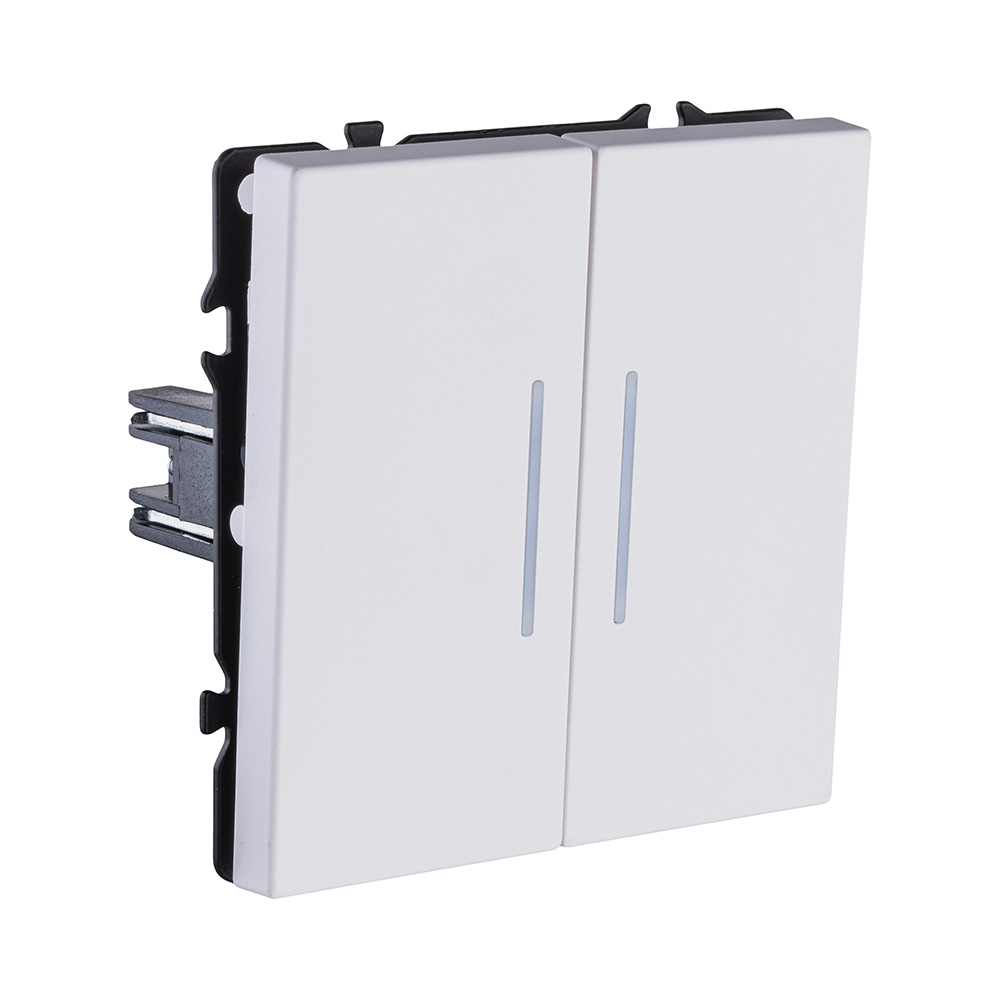 Выключатель 2-клавишный 10А/250В с LED подсветкой, белый глянцевый Kollinger Eclipse EC-010WG