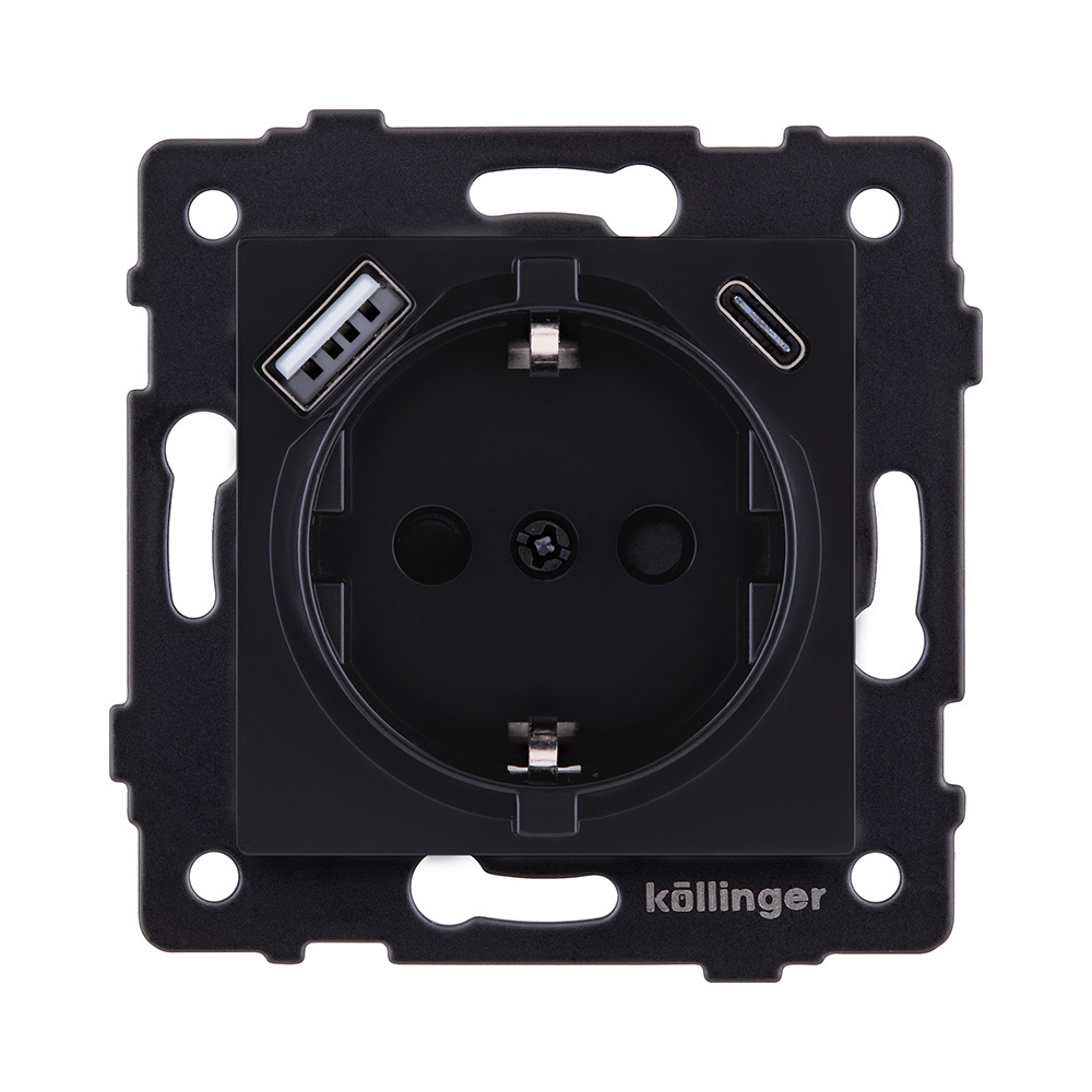 Розетка штепсельная SCHUKO 16A/250 В с USB A+C 20W, черный матовый Kollinger REA-004BM для Aspekt, Eleganz, Reflex