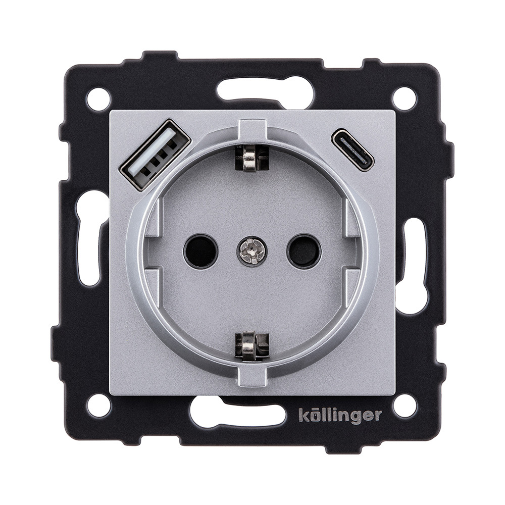 Розетка штепсельная SCHUKO 16A/250 В с USB A+C 20W, серый Kollinger REA-004GY для Aspekt, Eleganz, Reflex