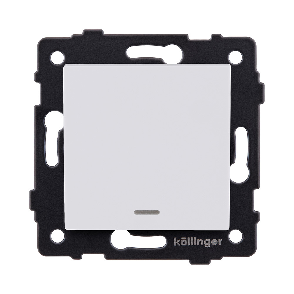 Выключатель 1-клавишный перекрестный 10А/250В с LED подсветкой, белый матовый Kollinger REA-S-015WM для Aspekt, Eleganz, Reflex
