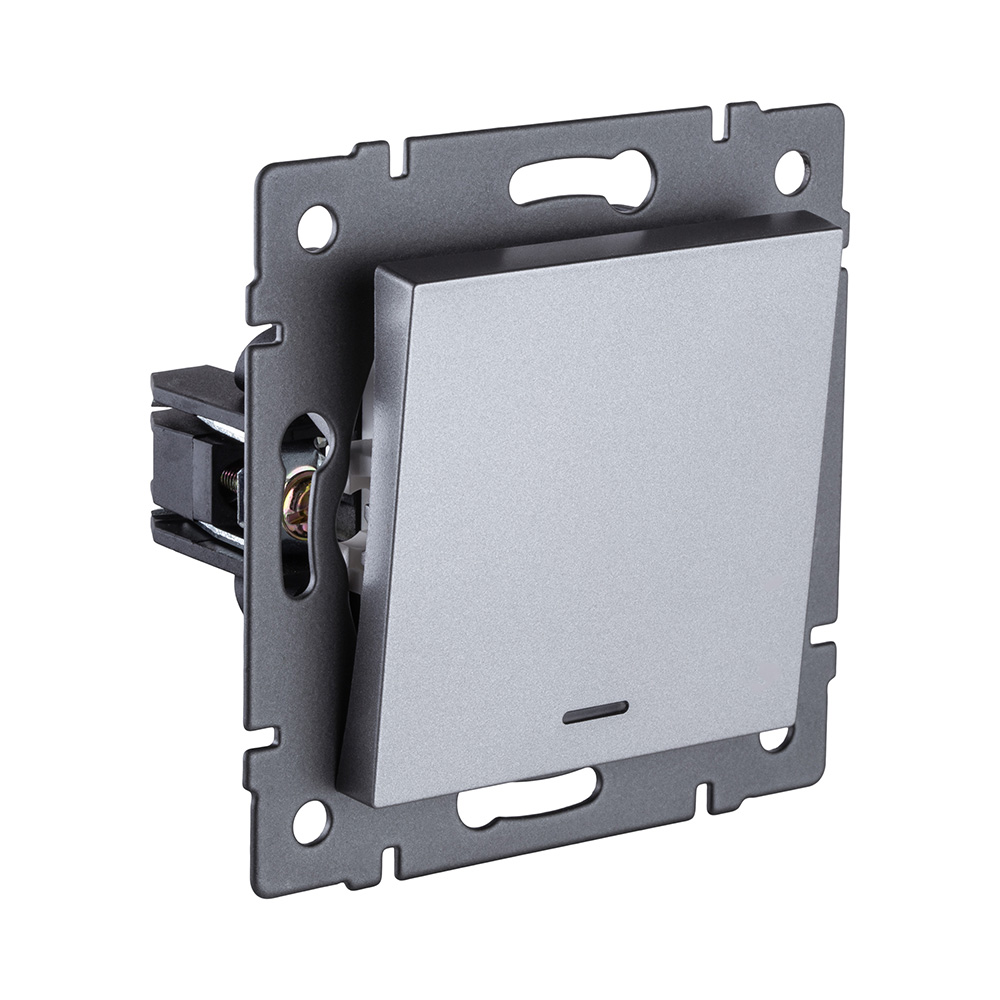 Выключатель 1-клавишный проходной 10А/250В с LED подсветкой, серый Kollinger REA-S-004GY для Aspekt, Eleganz, Reflex