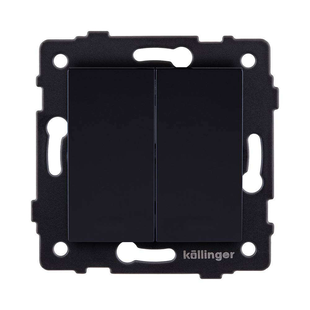 Выключатель 2-клавишный проходной 10А/250В, черный Kollinger REA-S-009BK для Aspekt, Eleganz, Reflex
