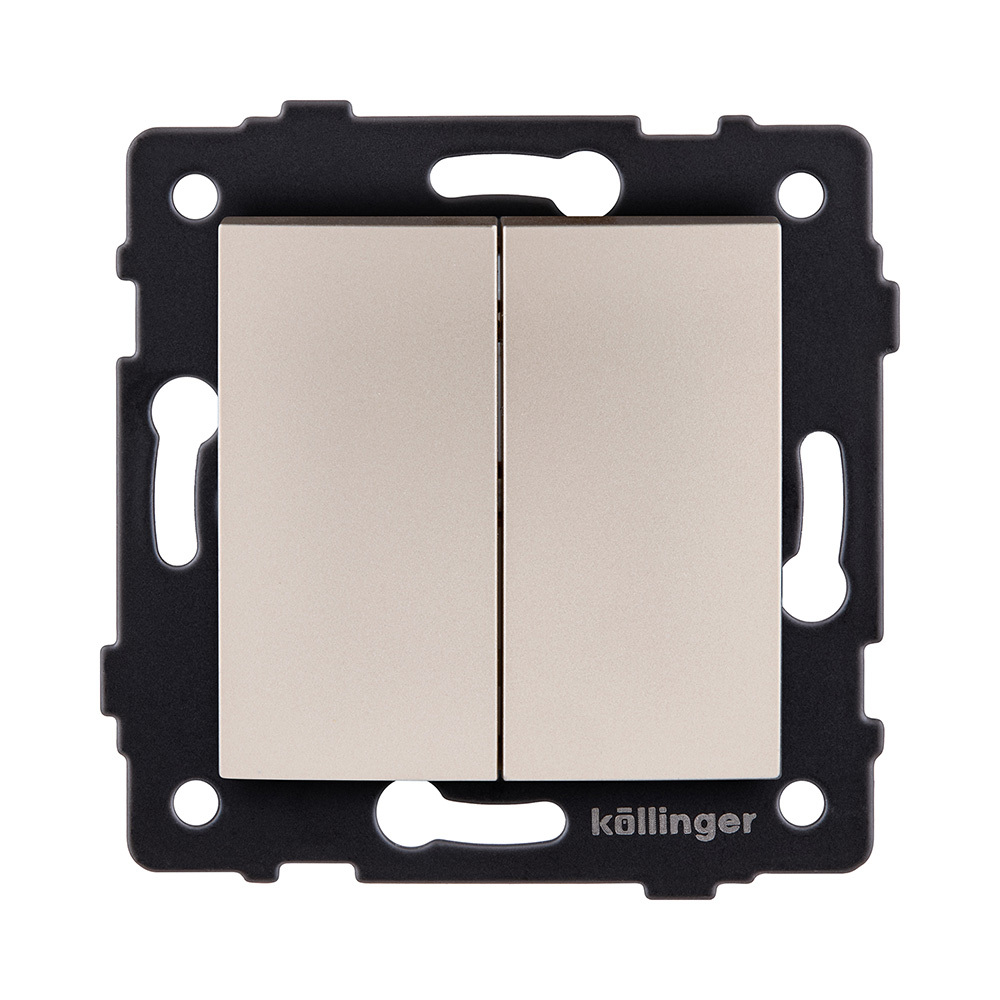 Выключатель 2-клавишный проходной 10А/250В, изогнутый, золотой Kollinger REA-R-009GD для Aspekt, Eleganz, Reflex