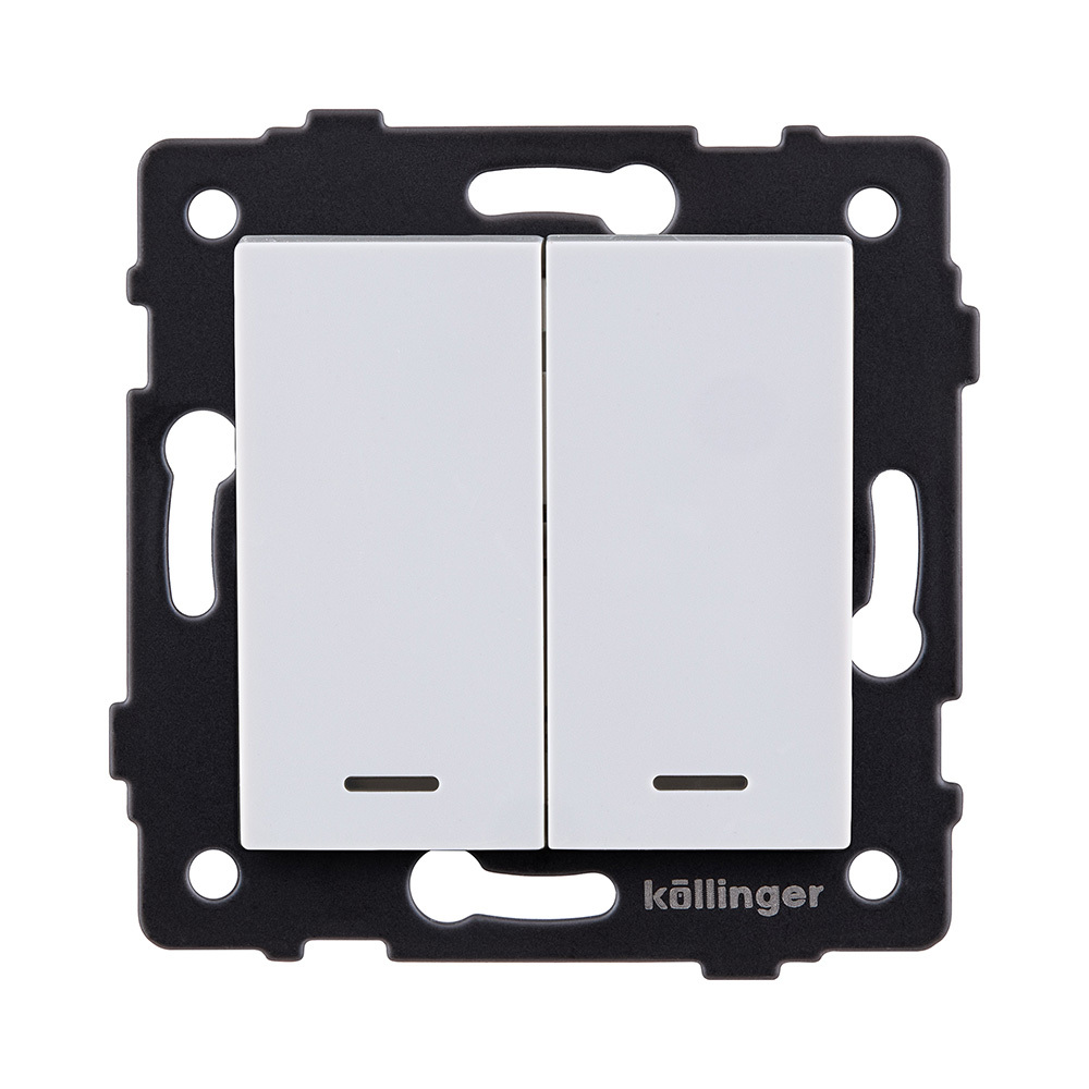 Выключатель 2-клавишный проходной 10А/250В с LED подсветкой, белый Kollinger REA-S-010WH для Aspekt, Eleganz, Reflex