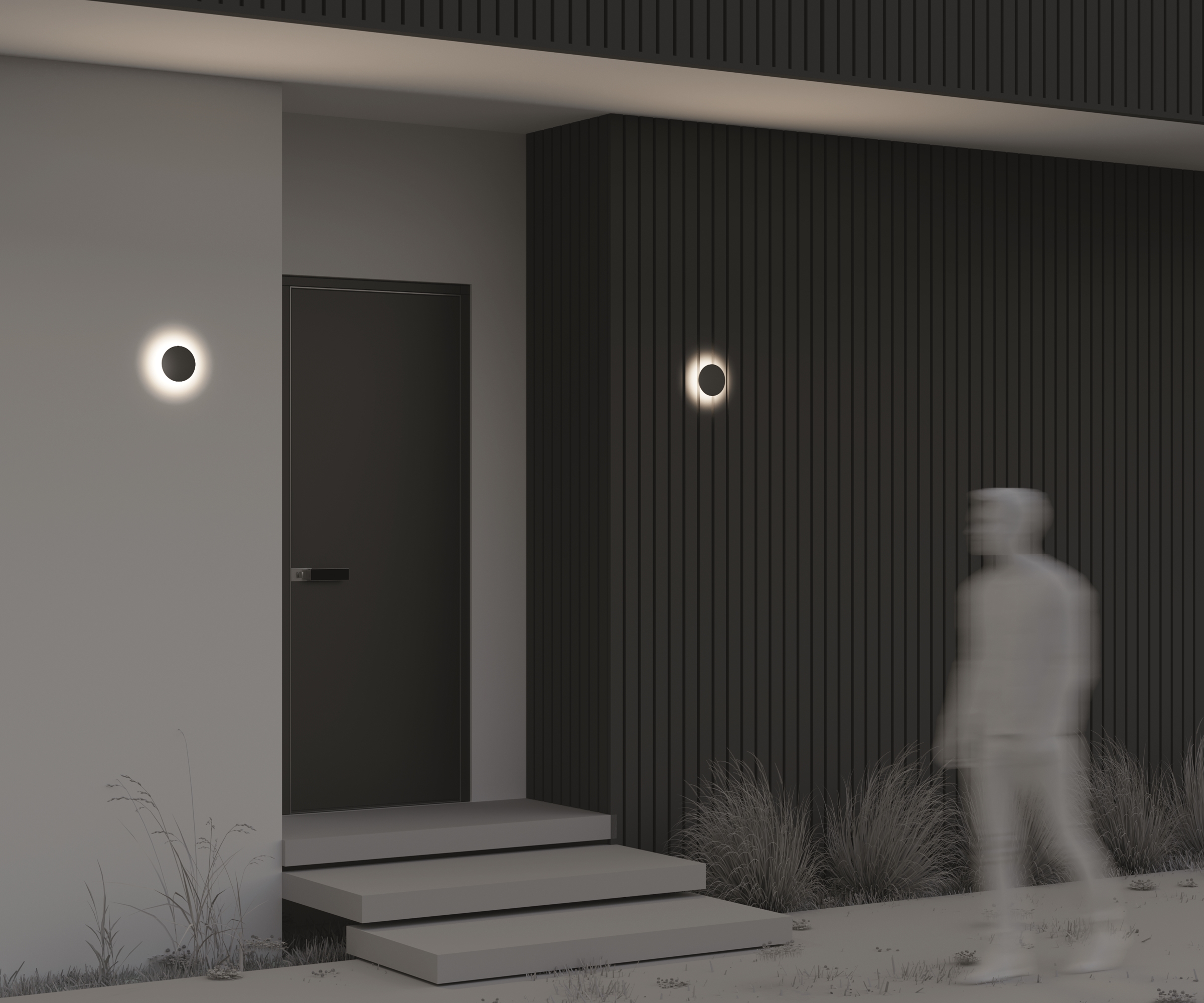 Материал корпуса — металл, цвет — графит. Высокий уровень защиты от пыли и влаги IP 65. Устойчивость к коррозии и перепадам температур. LED-источник света с нейтральной цветовой температурой 3000 К. Серия включает настенные и ландшафтные светильники.