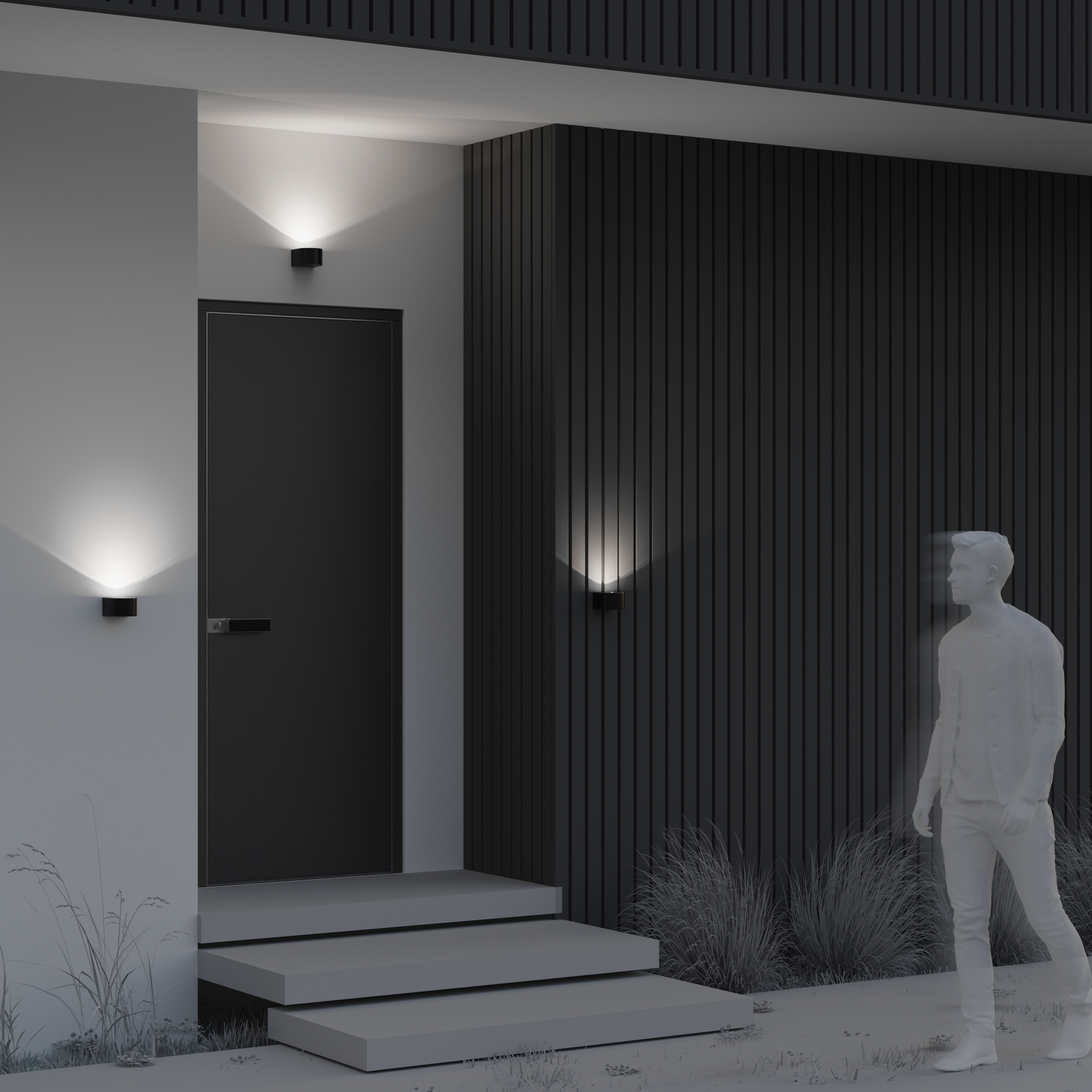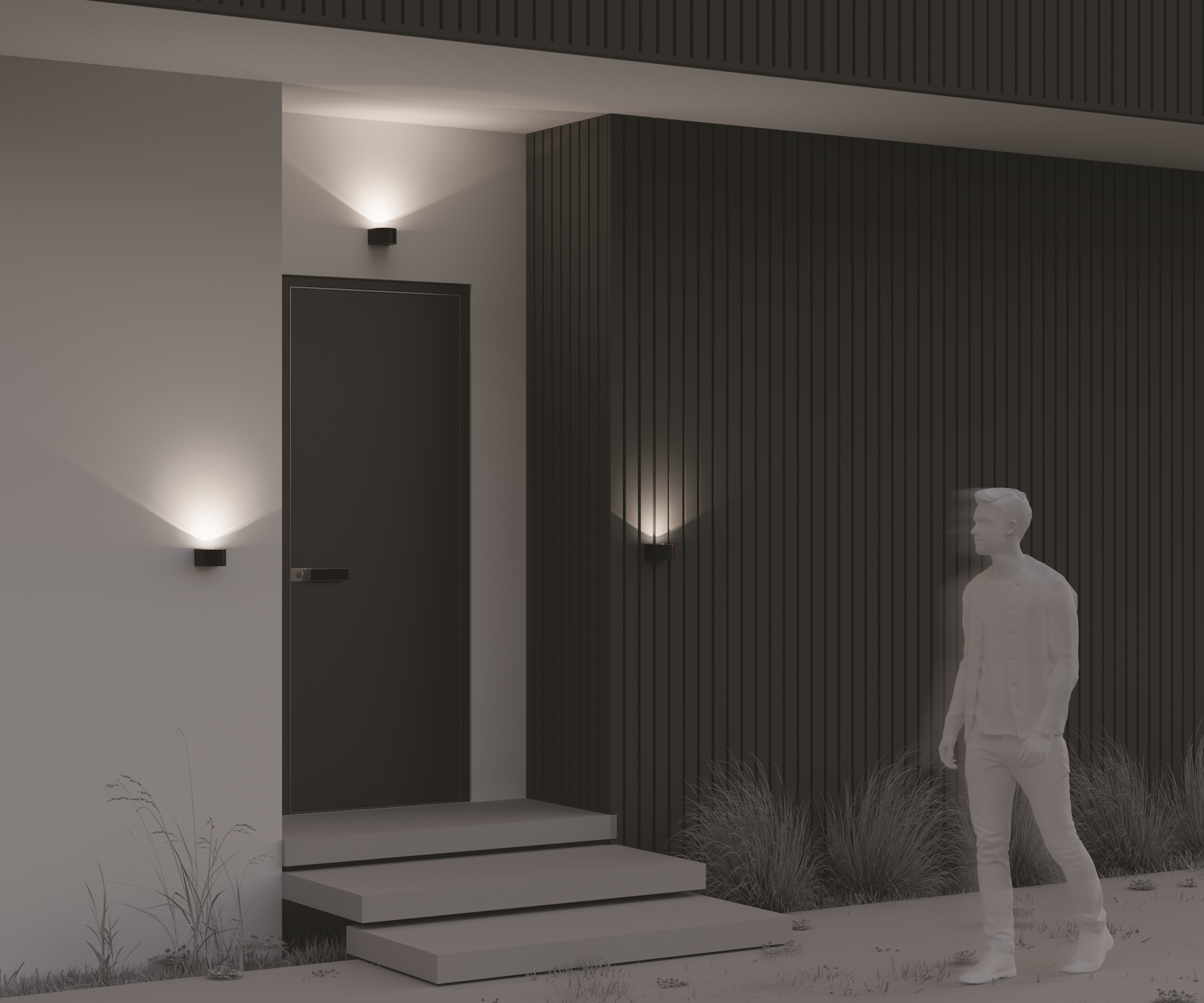 Алюминиевый корпус, цвет - графит. Минималистичный, компактный дизайн. Свечение в одну и в две стороны. LED-источник света. Цветовая температура 3000K. Степень защиты от пыли и влаги IP54.