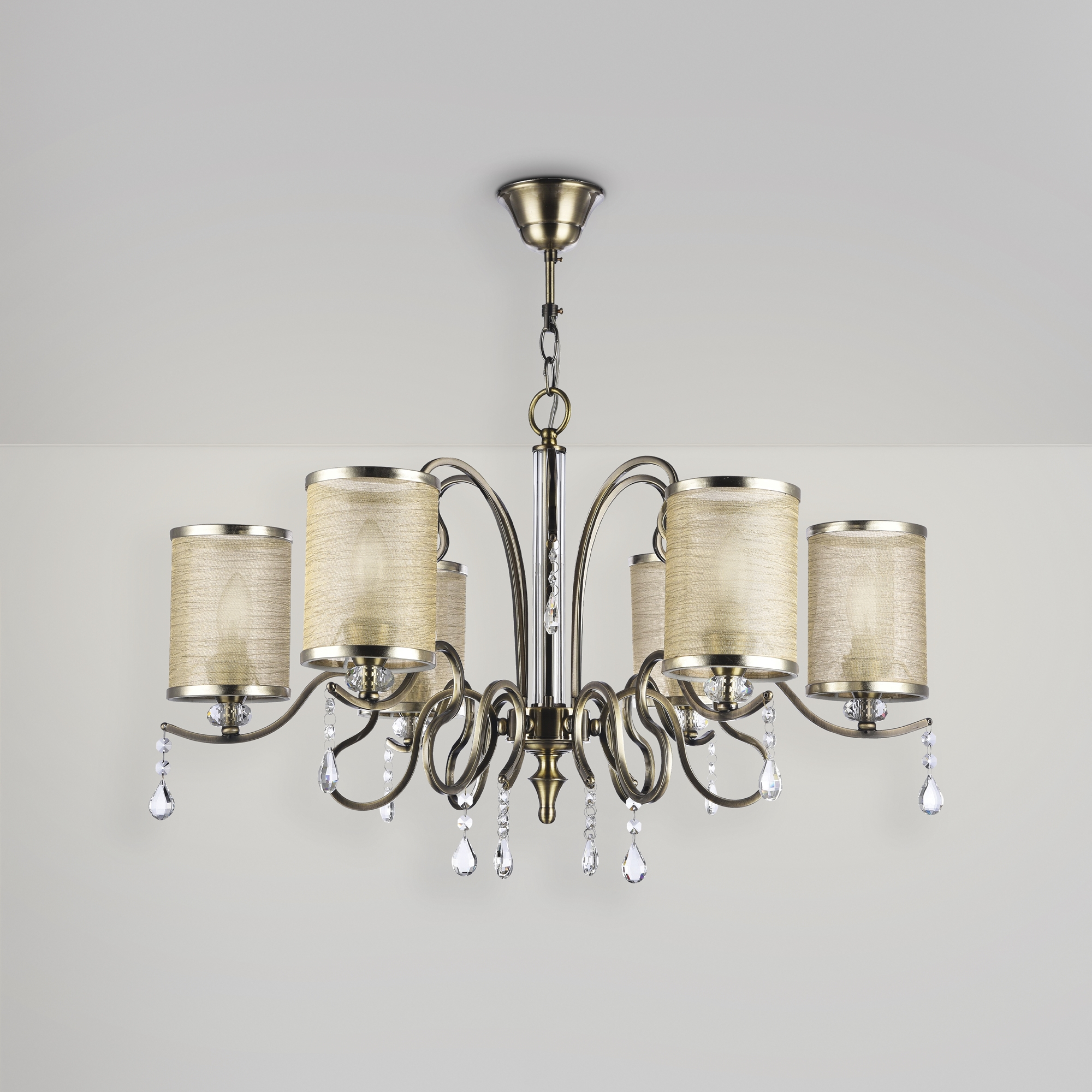 Серия превосходно впишется как в интерьер загородного дома, так и в интерьер квартиры или общественных объектов таких как, например, офис банка. Полупрозрачные абажуры из органзы отлично пропускают и рассеивают свет от ламп. Люстры и бра украшены подвесками.