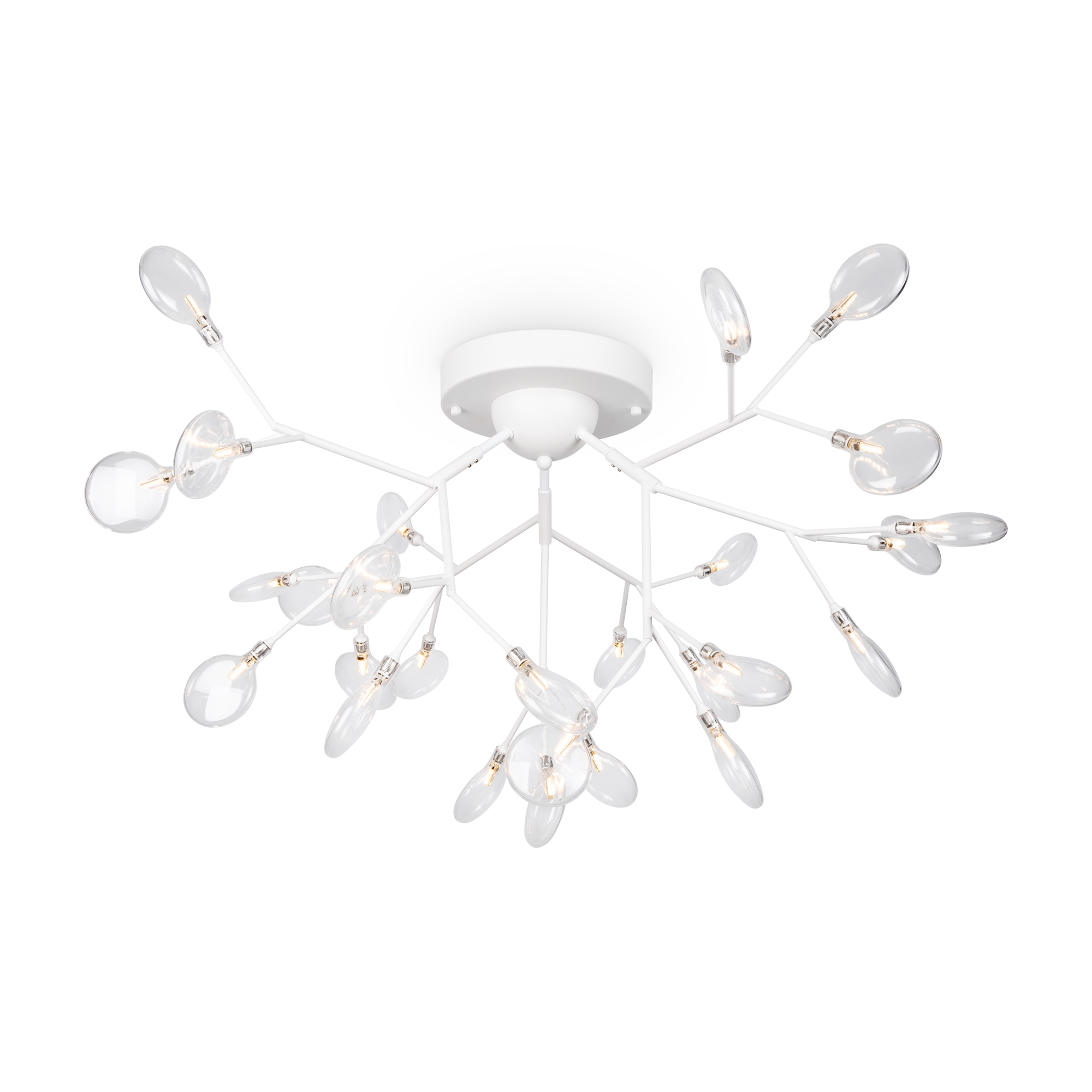 Материал арматуры – металл. Оттенки – черный, белый. Стеклянные плафоны оригинальной формы. Трендовый флористический дизайн. Источник света – лампа G4.